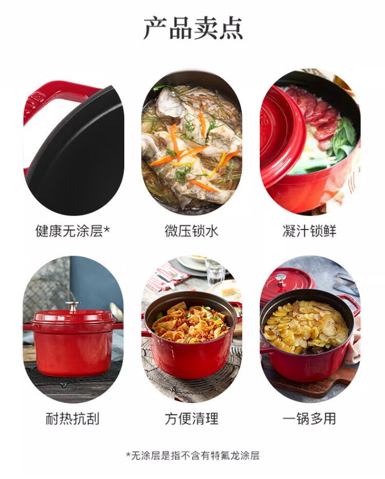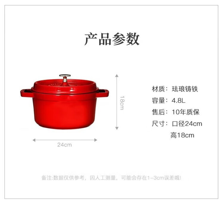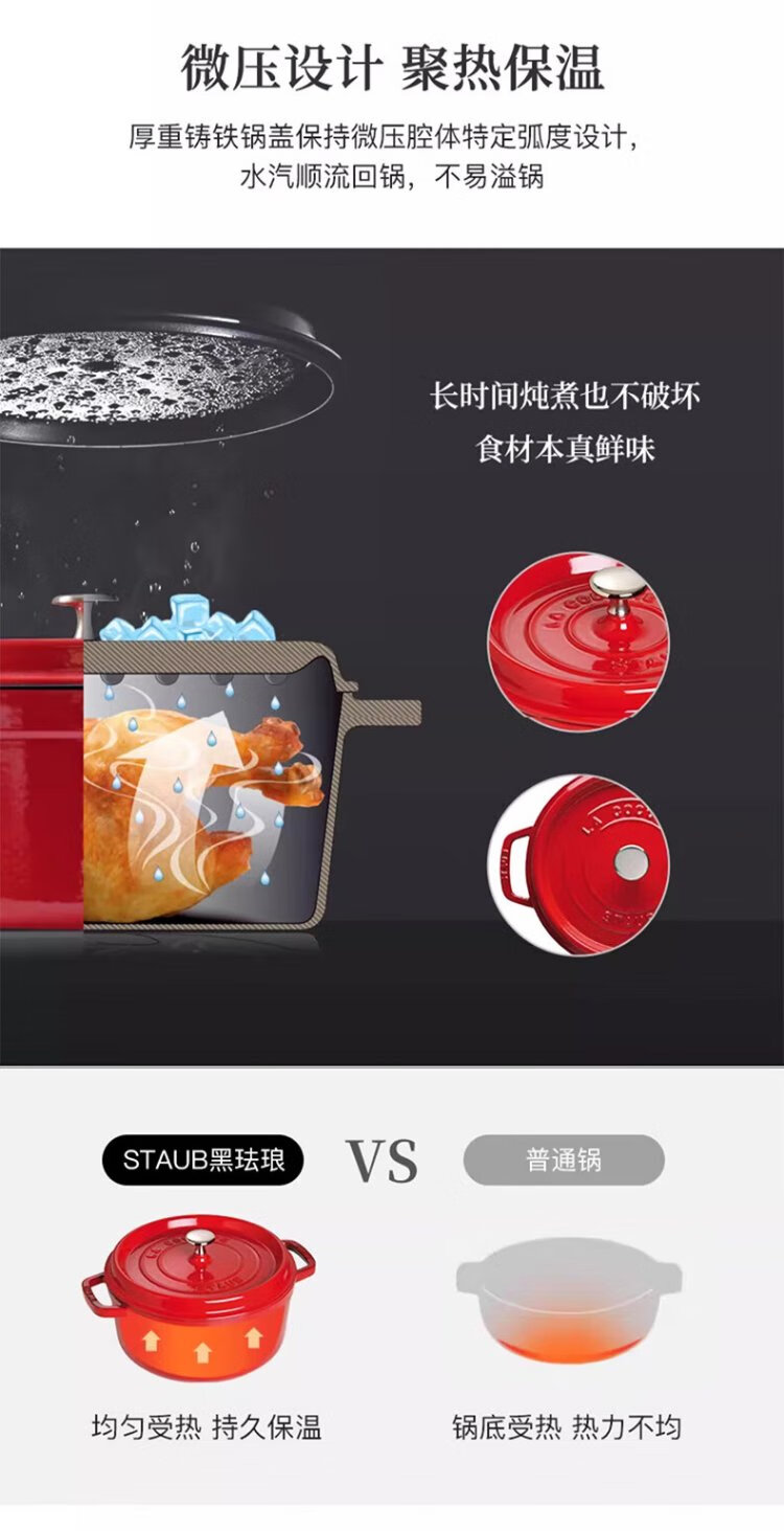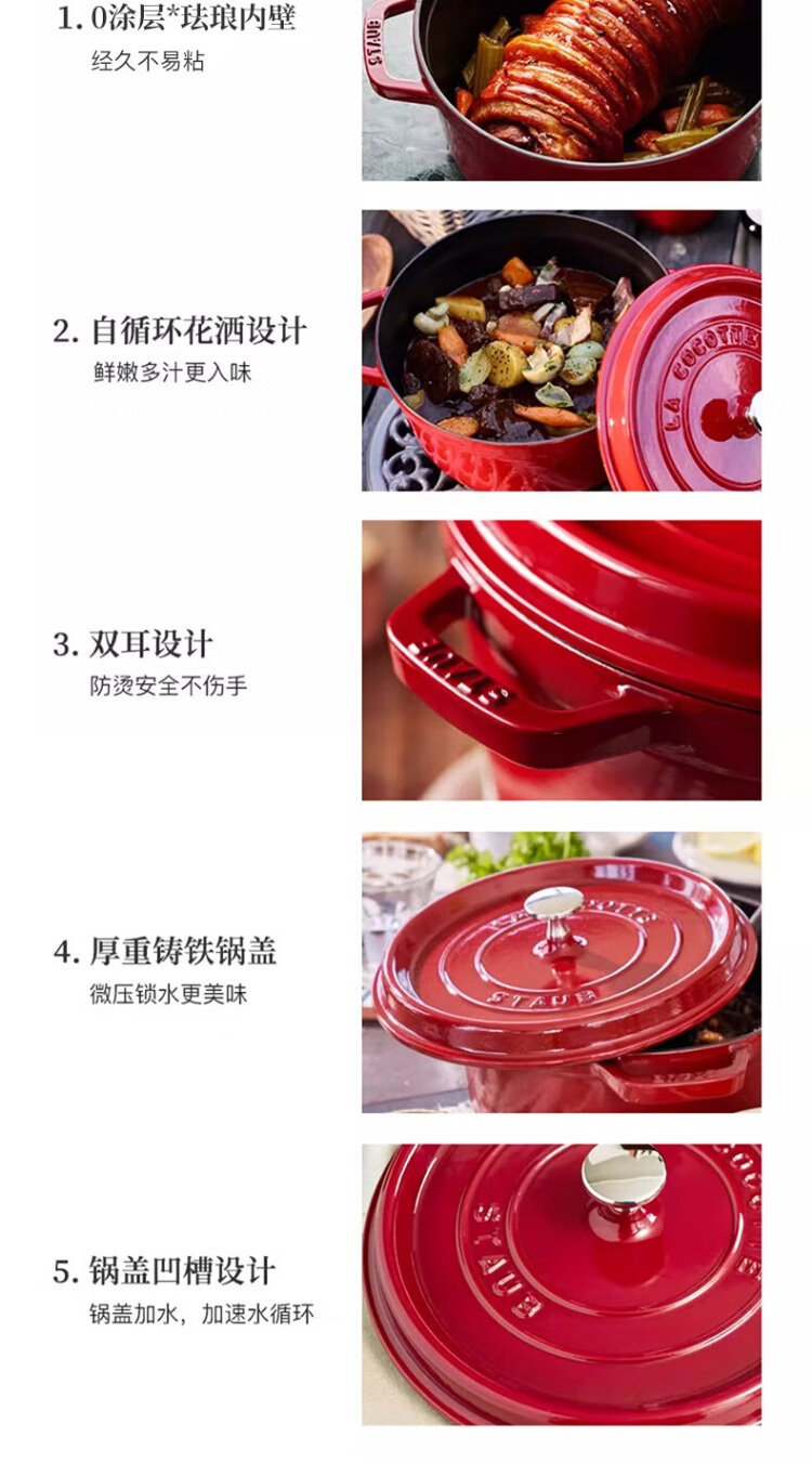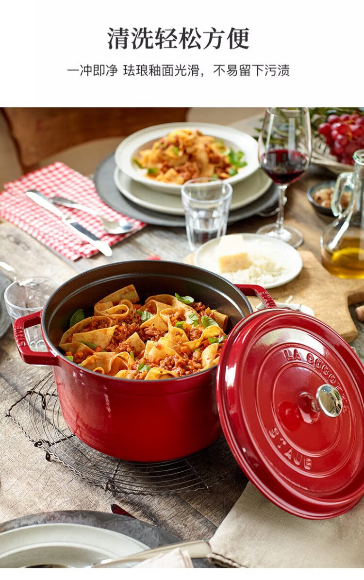 Olla Staub de hierro fundido esmaltado importado francés, olla para sopa de doble oreja, olla para guisado profundo, color rojo cereza, 24cm 40501-485