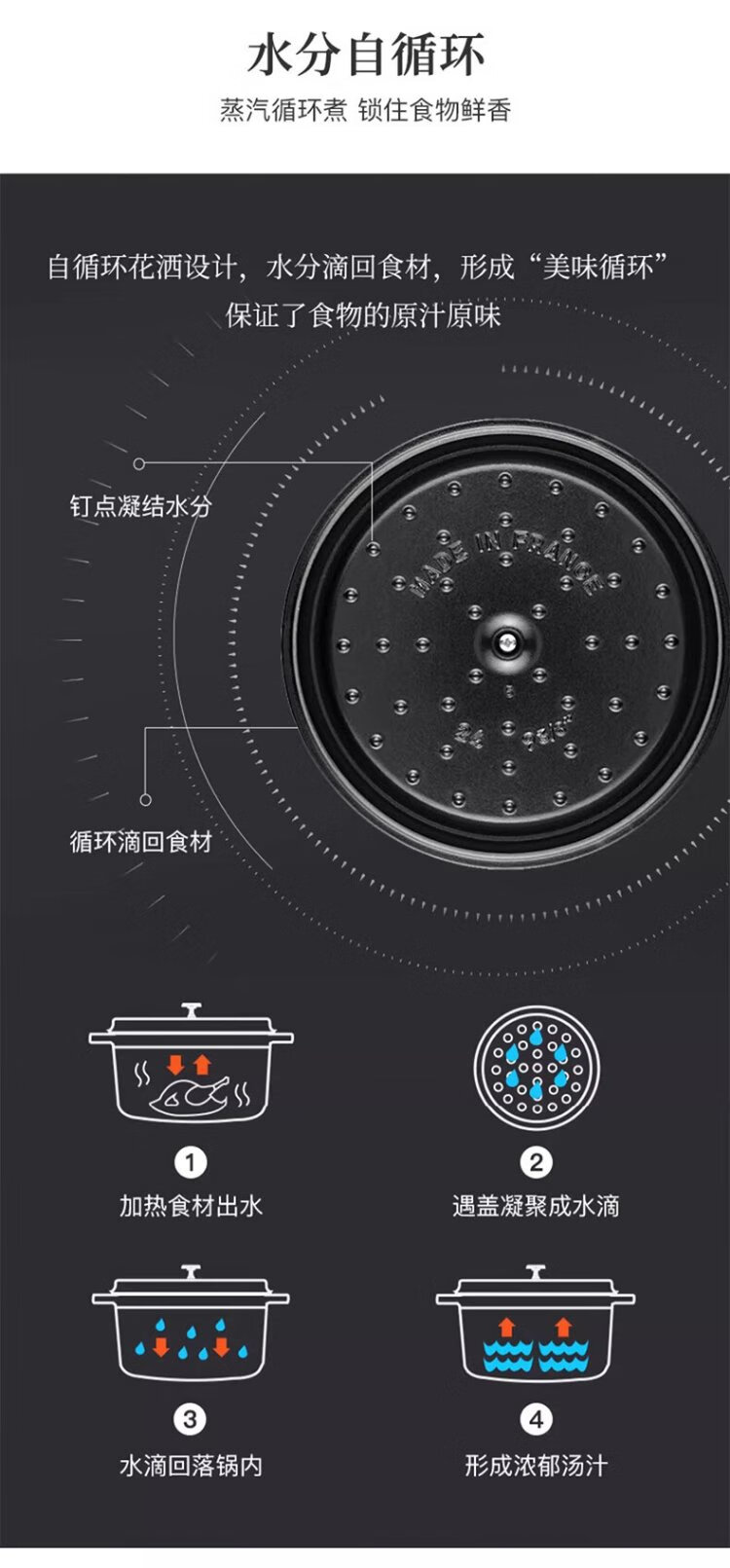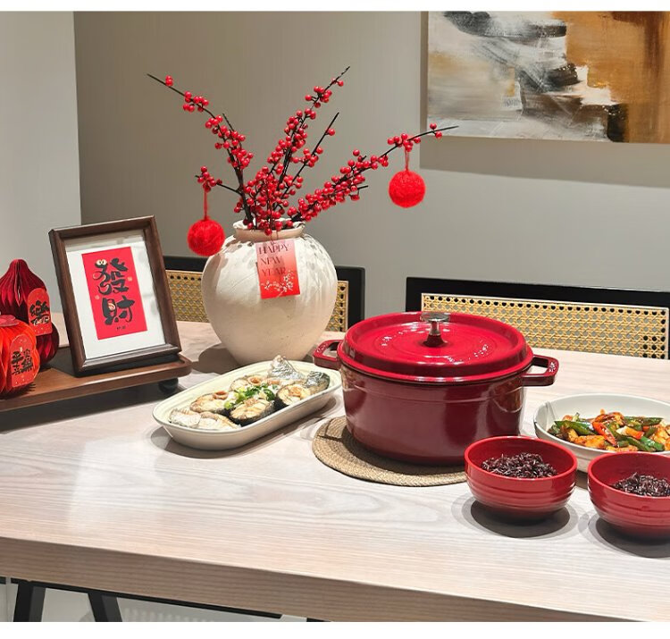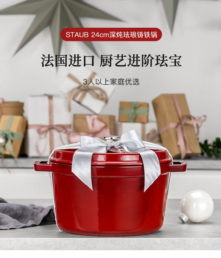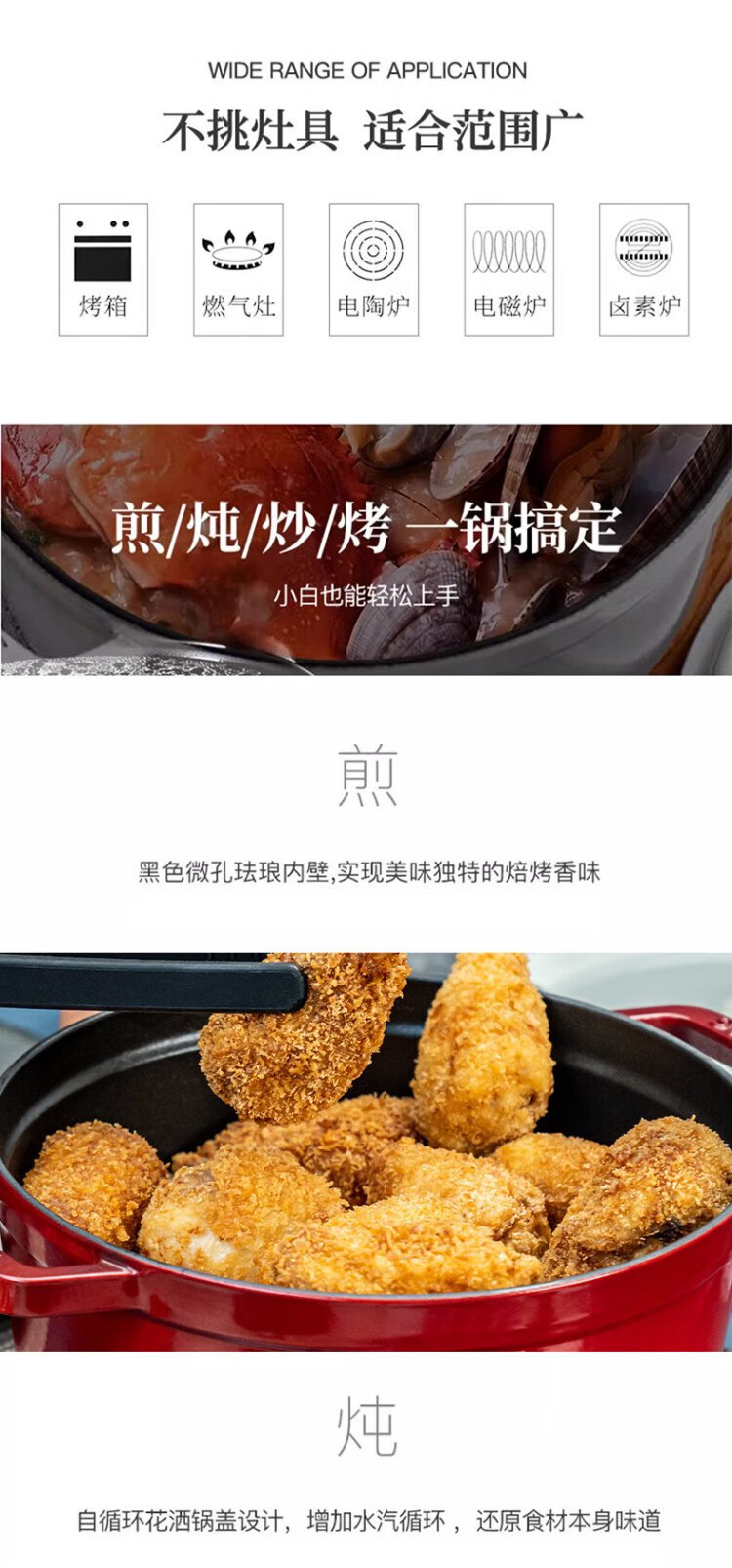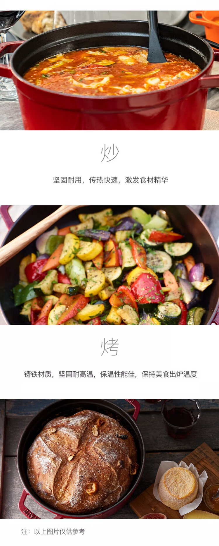 Olla Staub de hierro fundido esmaltado importado francés, olla para sopa de doble oreja, olla para guisado profundo, color rojo cereza, 24cm 40501-485