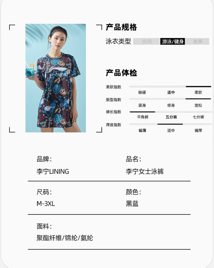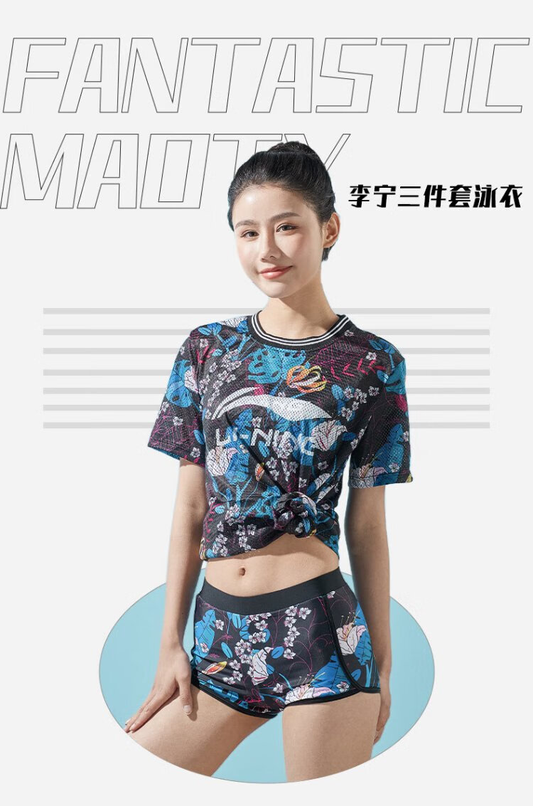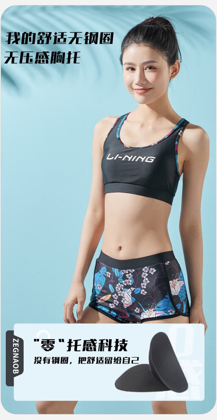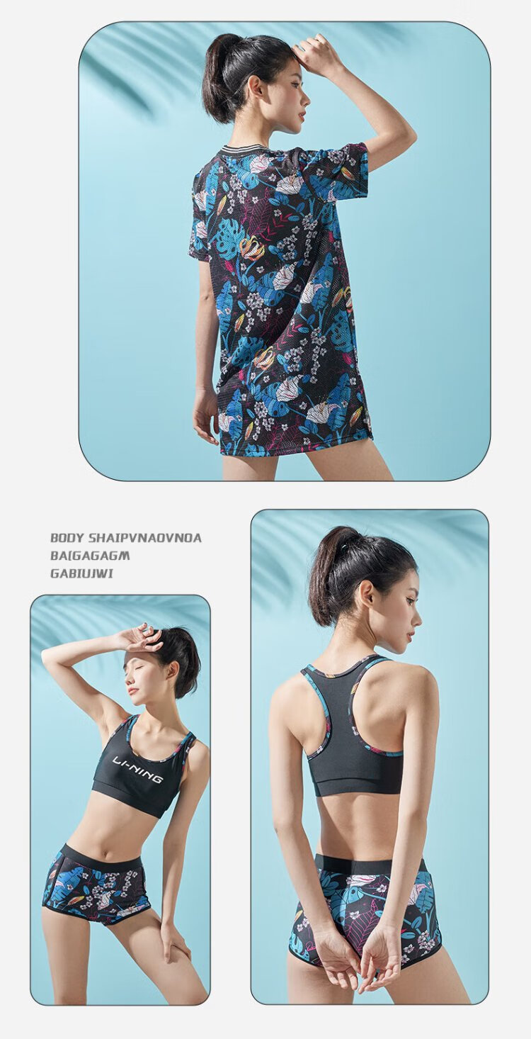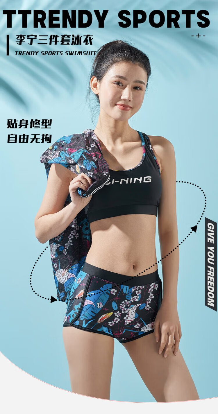 Li Ning (LI-NING) swimsuit women's split three-piece beach vacation sunscreen cover-up to cover belly and slim down hot spring swimsuit 727 black and blue XXL