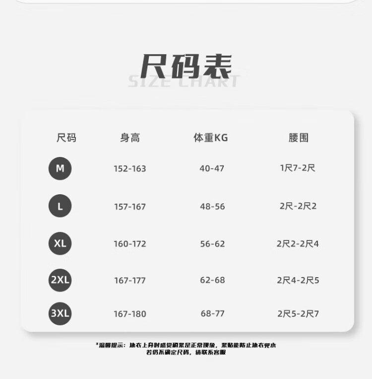 China (cm) 165 / 88-90 170 / 96-98 175 / 108-110 180 / 118-122 185 / 126-130