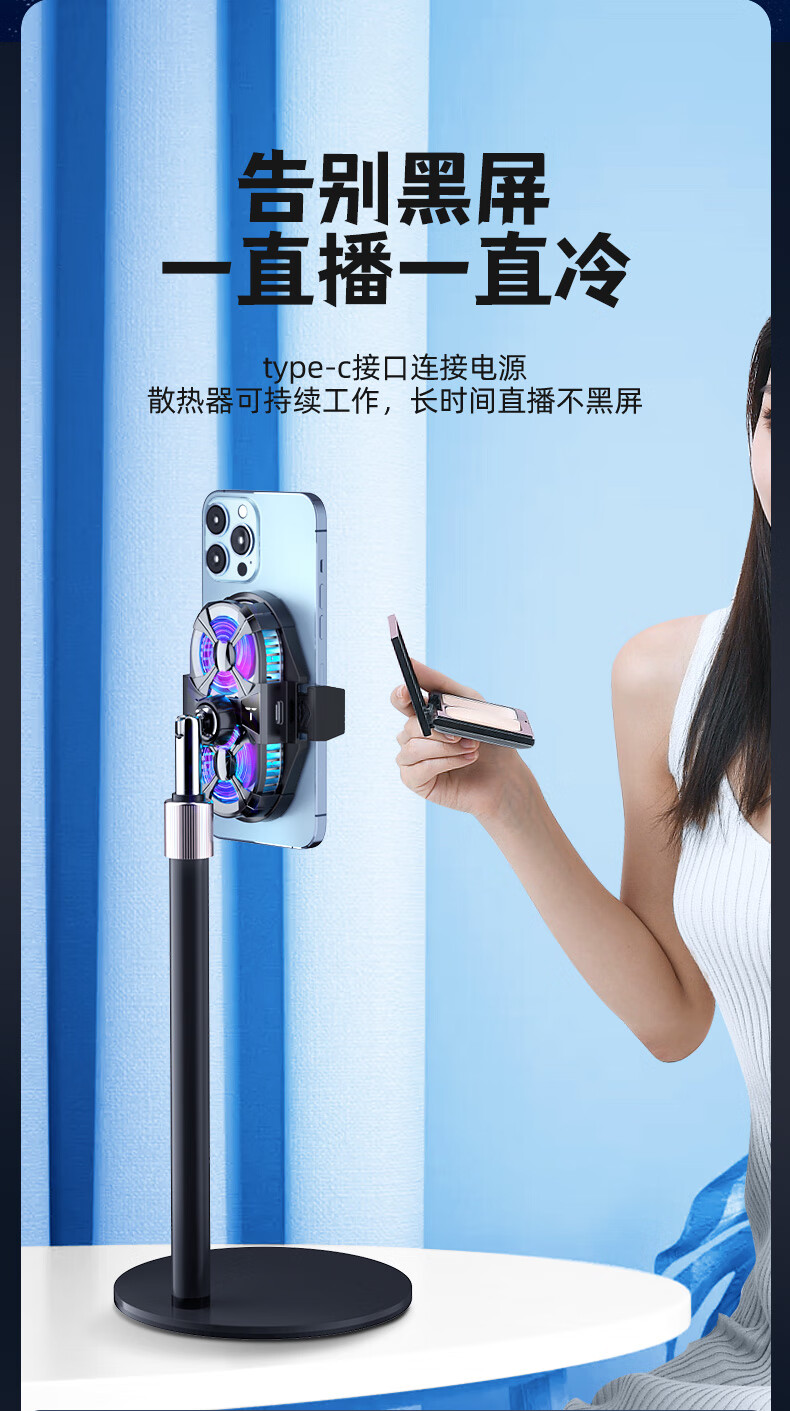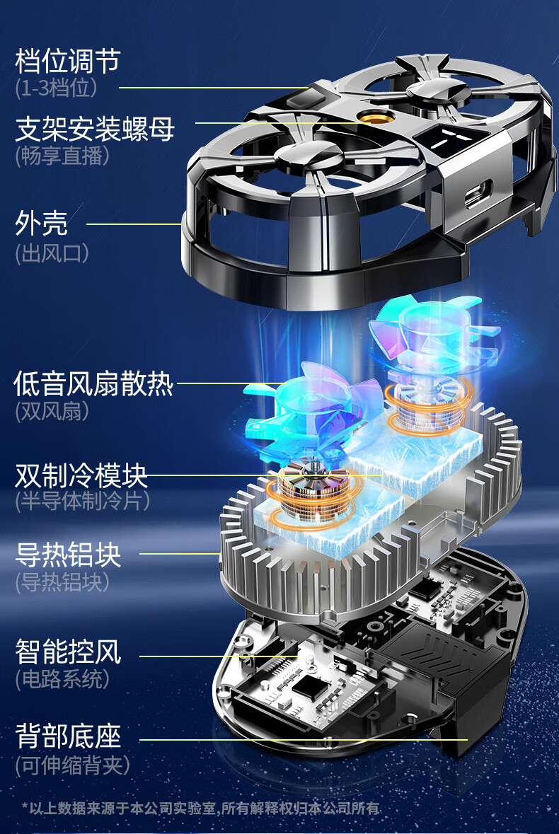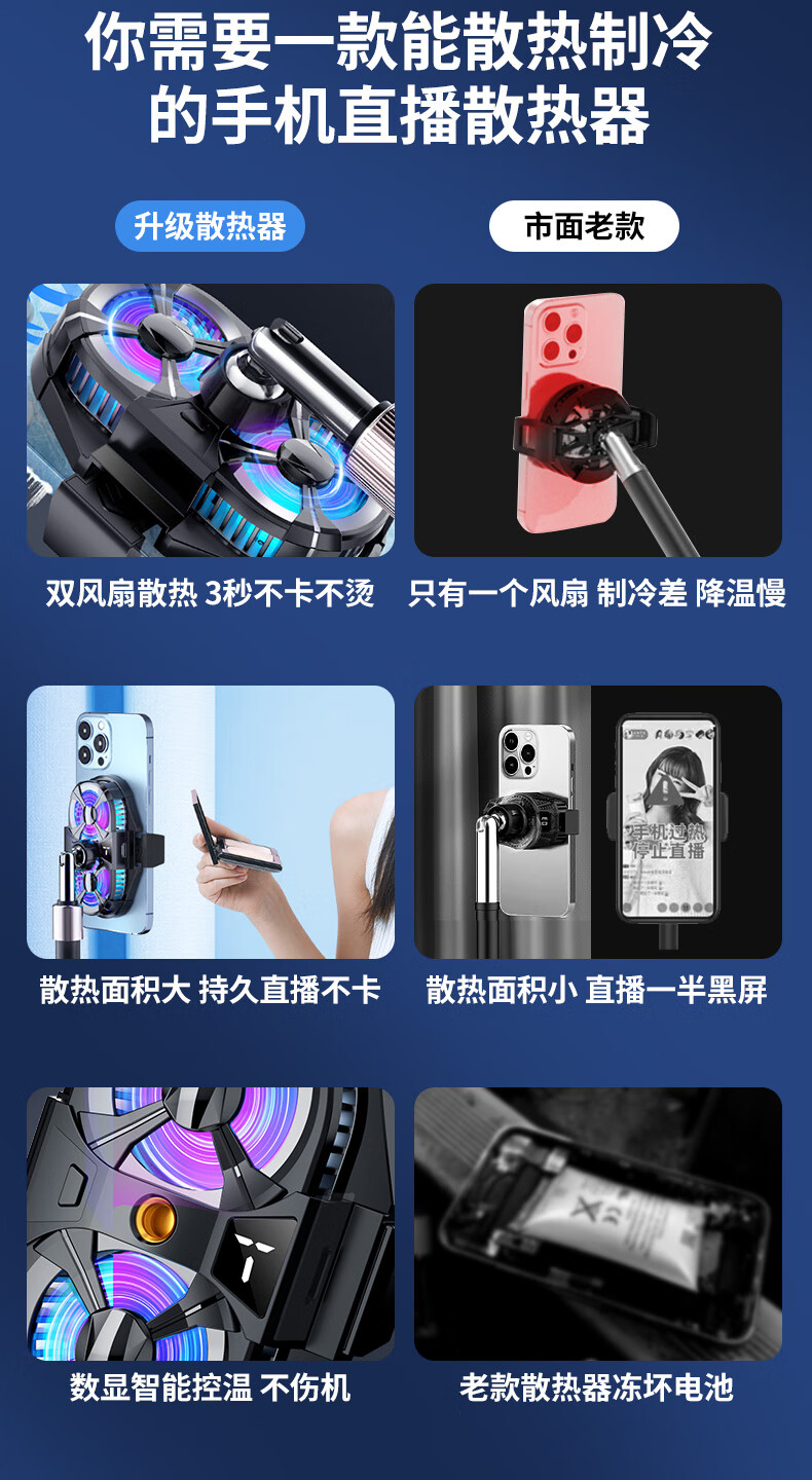 迈台【双核制冷三档调节】手机散热器半导体制冷直播专用支架背夹带风扇水冷降温拍摄视频适用苹果黑鲨