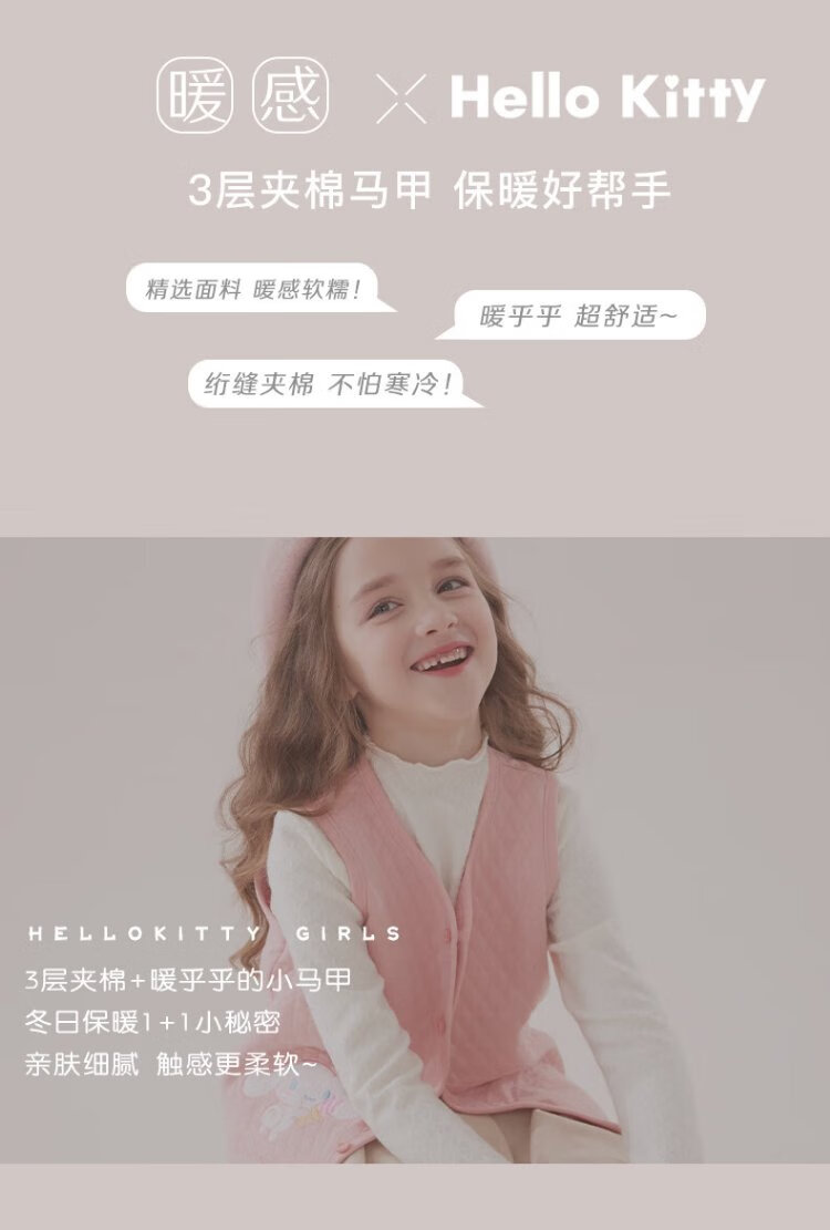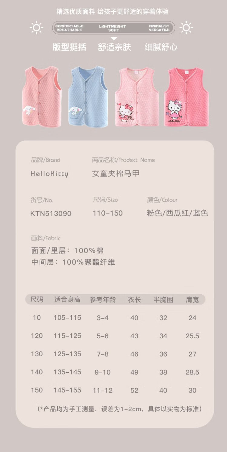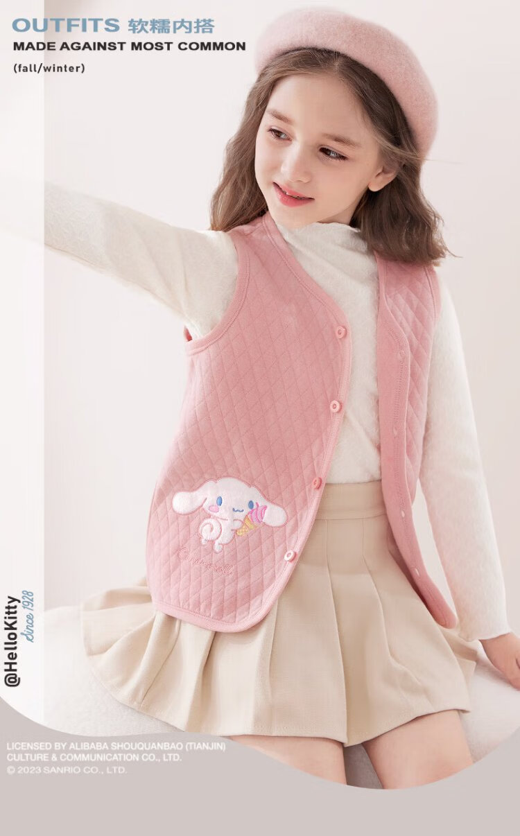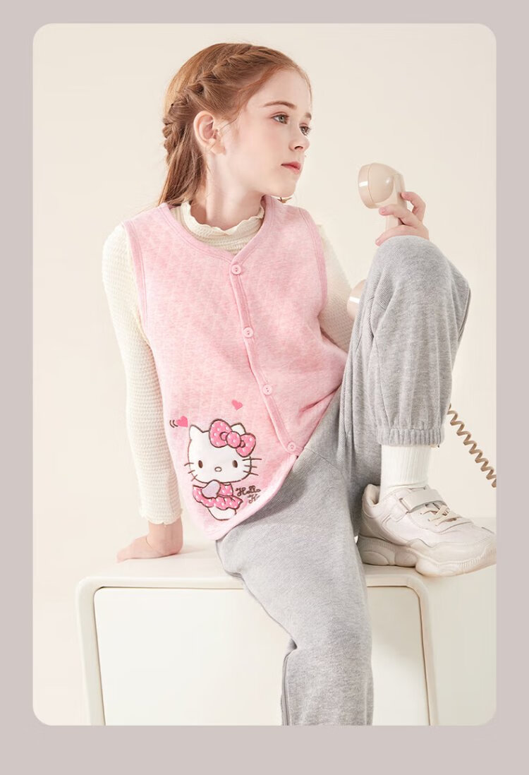 Hello Kitty Children's Vest Autumn Cotton Girls' Vest Baby Wear Inside Bottoming Outer Wear 513090 Pink 130