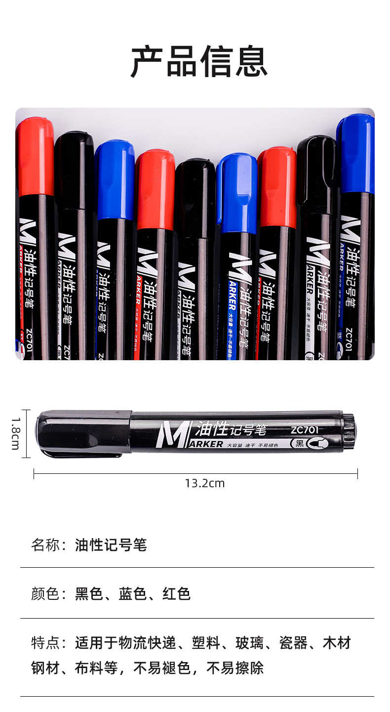 真彩(TRUECOLOR)记号笔大头笔防水油性不掉色快干速干防油红色大容量不可擦大号工地划线快递物流专用12支/盒ZC701