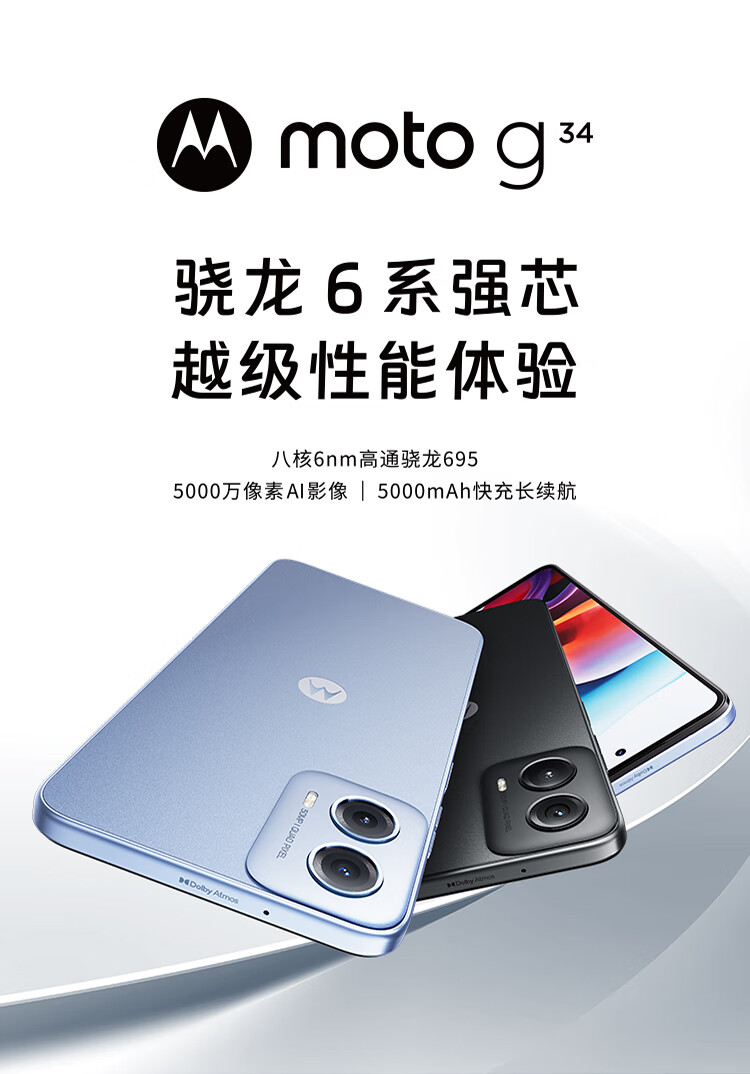 99% new Motorola moto g34 octa-core 6nm Qualcomm Snapdragon 695 multi-application 5000mAh fast charge long battery life 8GB+128GB Dahai
