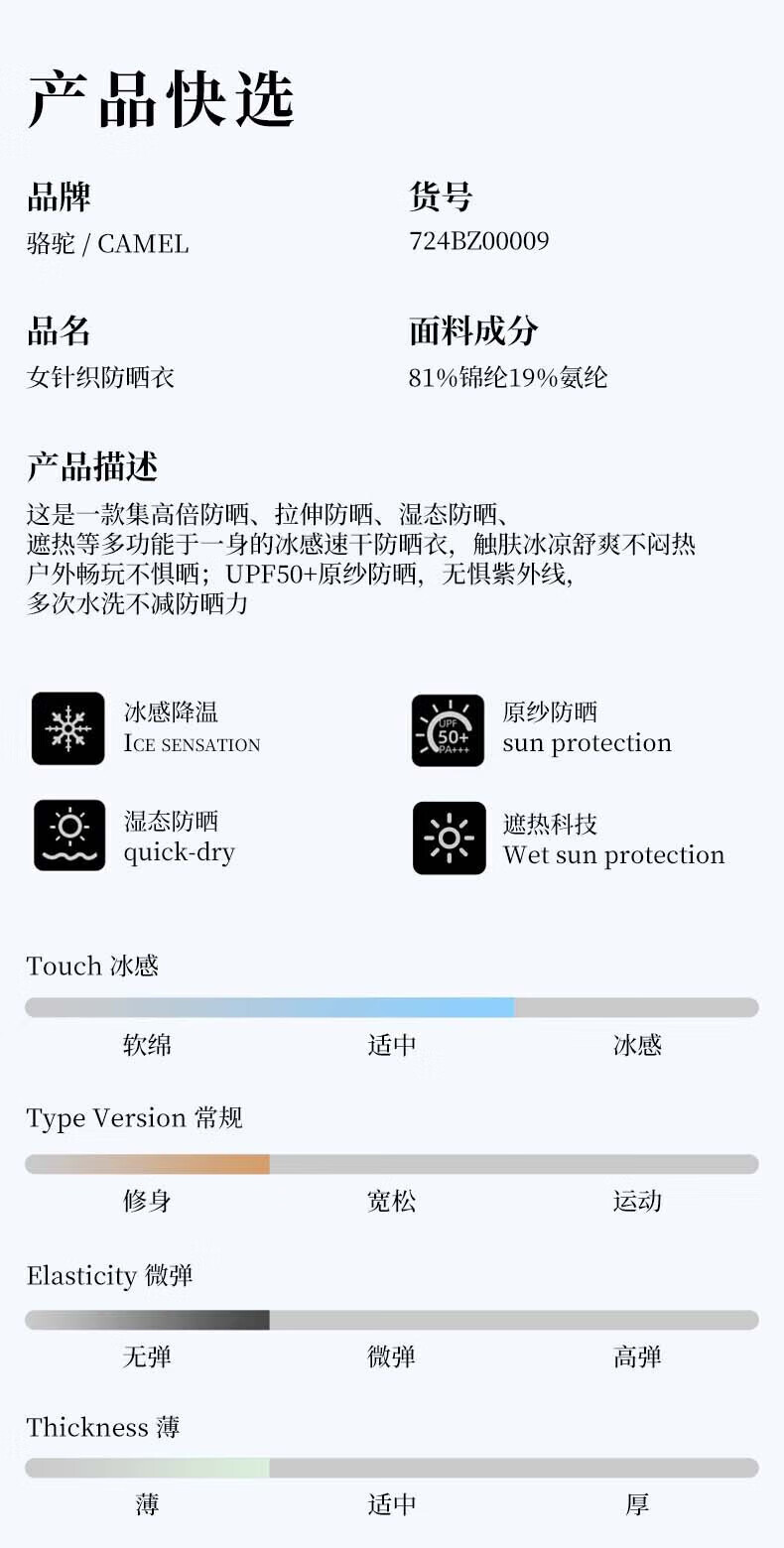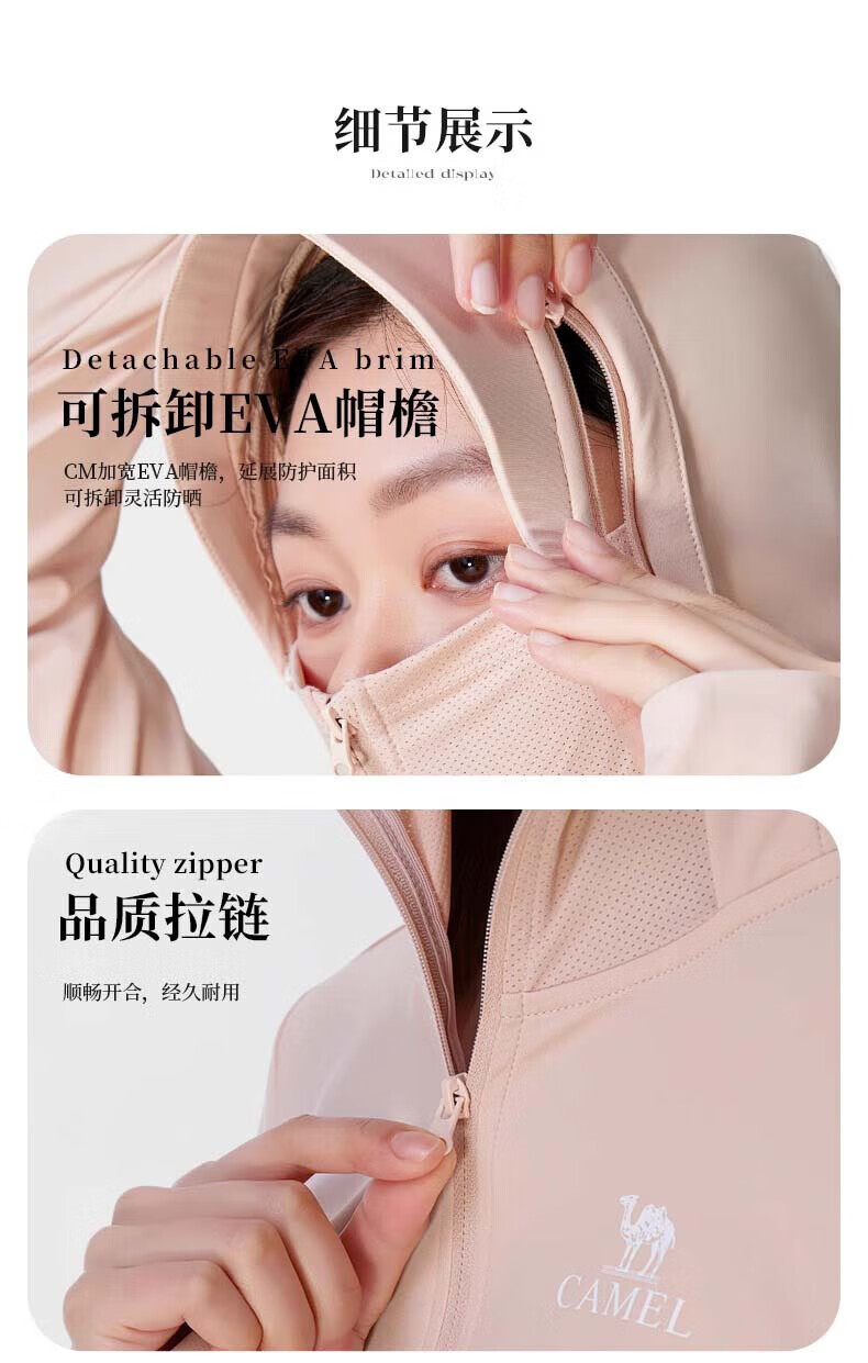 骆驼(CAMEL)冷白皮春夏防晒衣凉感透气原纱防晒服女724BZ00009