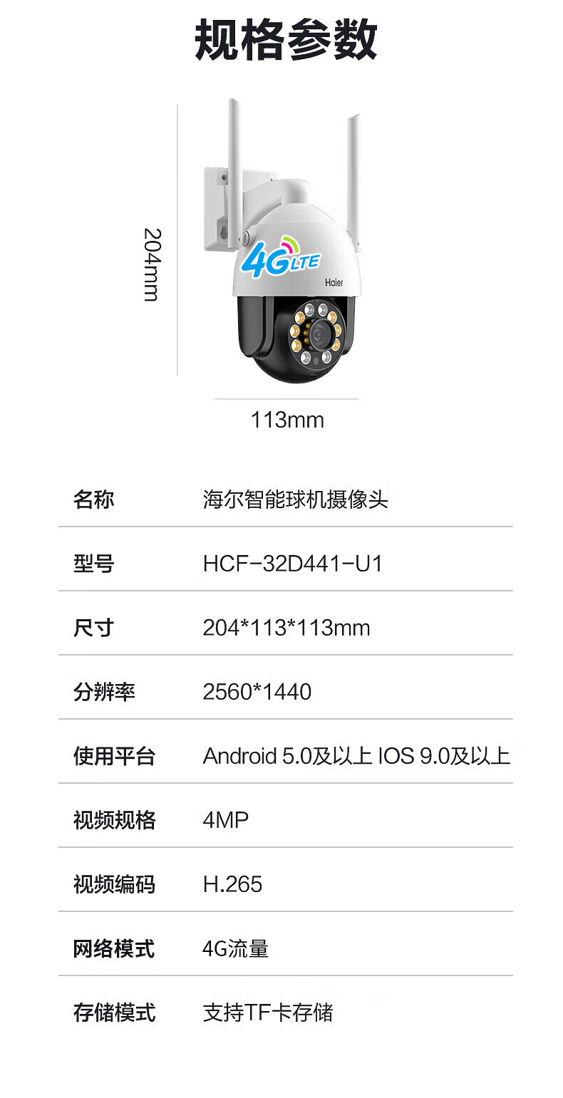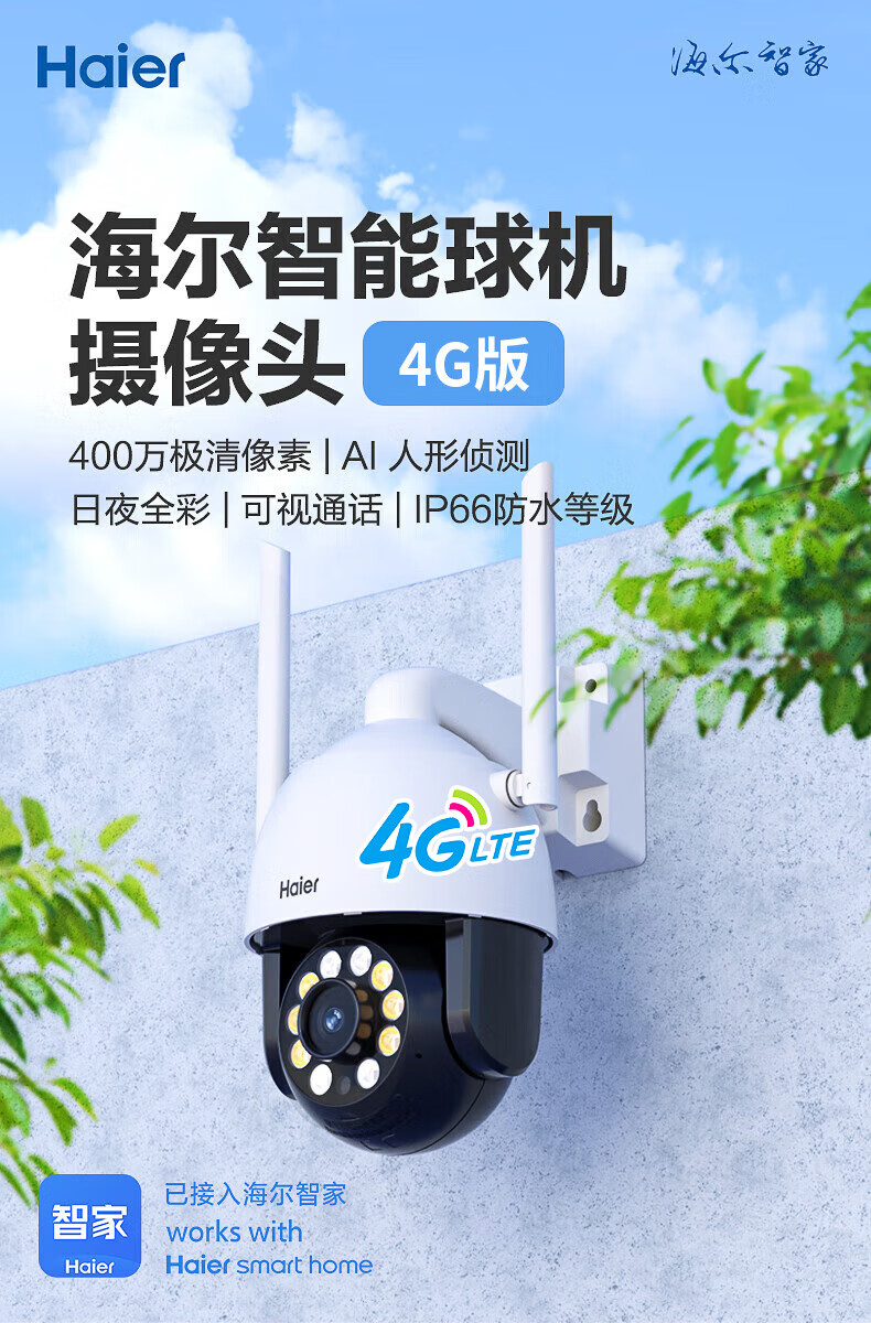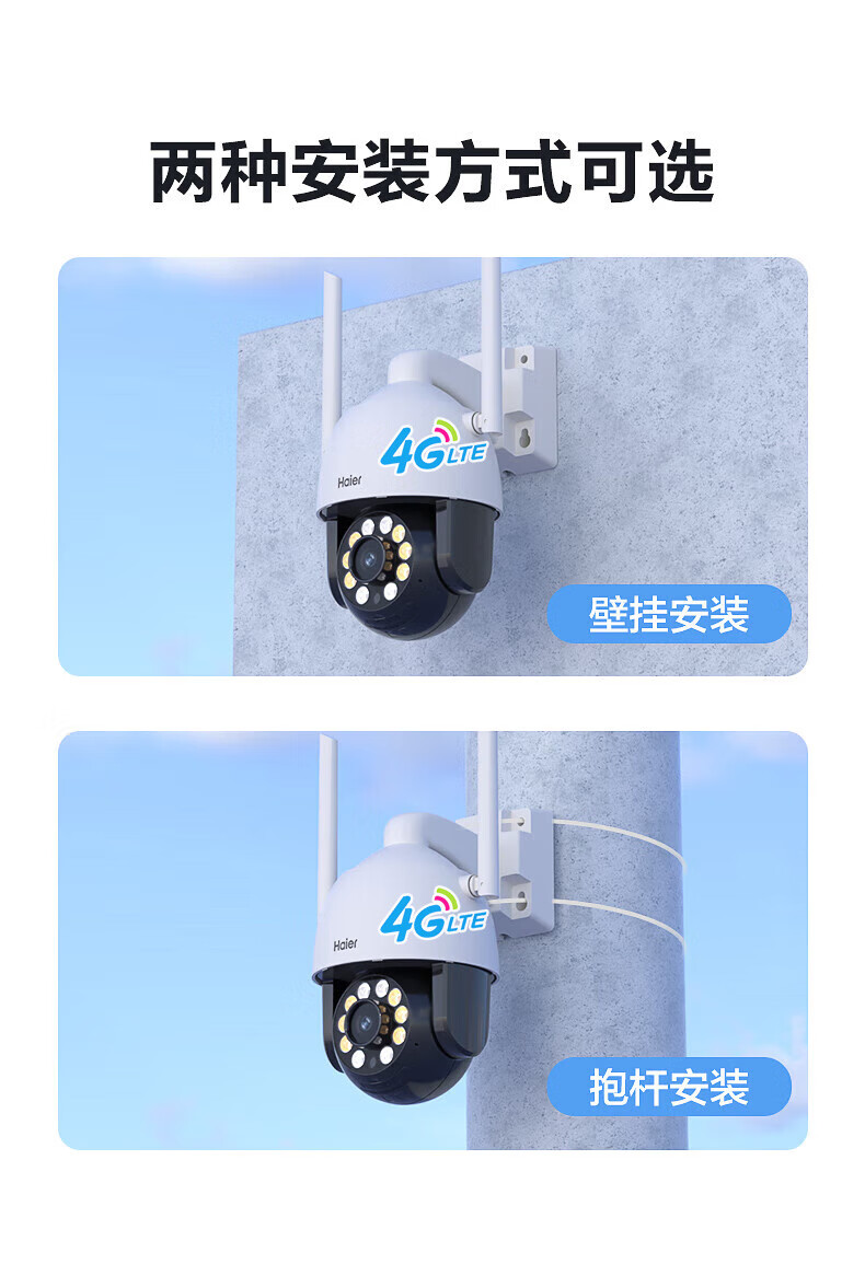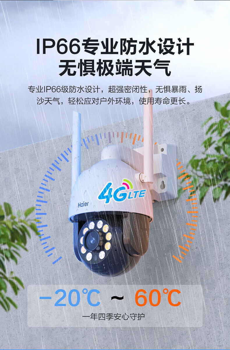 Haier 4g camera outdoor high-definition wireless monitor without network 360 degrees without blind spots with night vision panoramic view without network mobile phone remote rural outdoor rotating ball machine