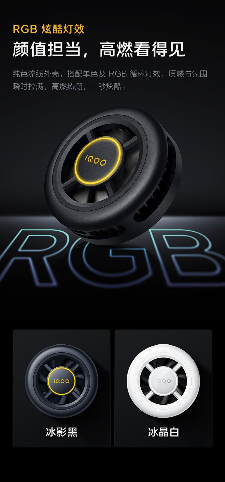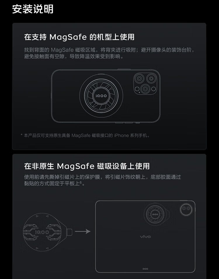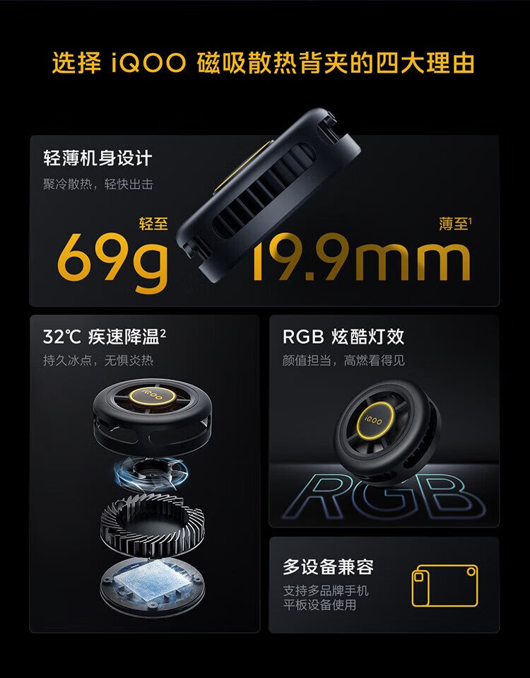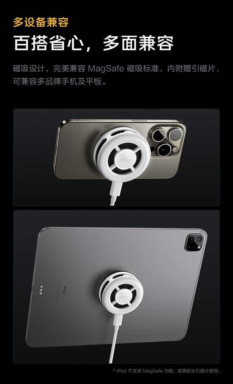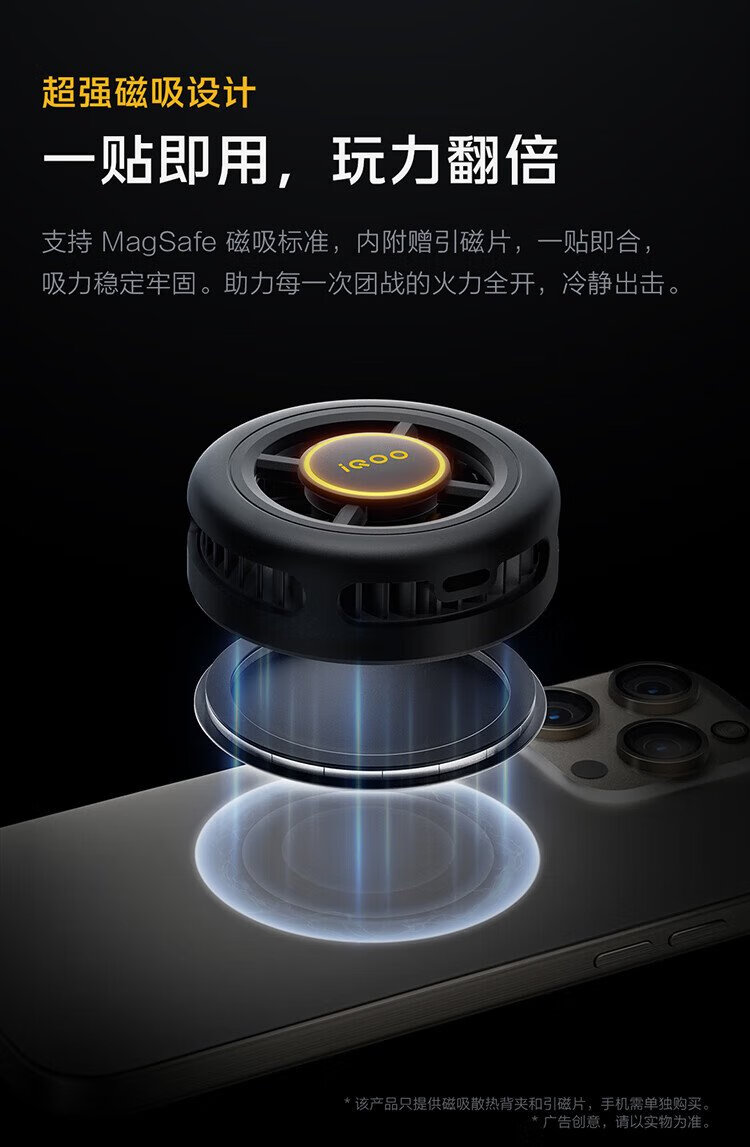 VivoiQOO magnetic cooling back clip Ice Shadow Black-7 condenser cooling live broadcast cooling artifact (magnetic sheet included) adapted to Apple Xiaomi Huawei OnePlus Black Shark Nubia