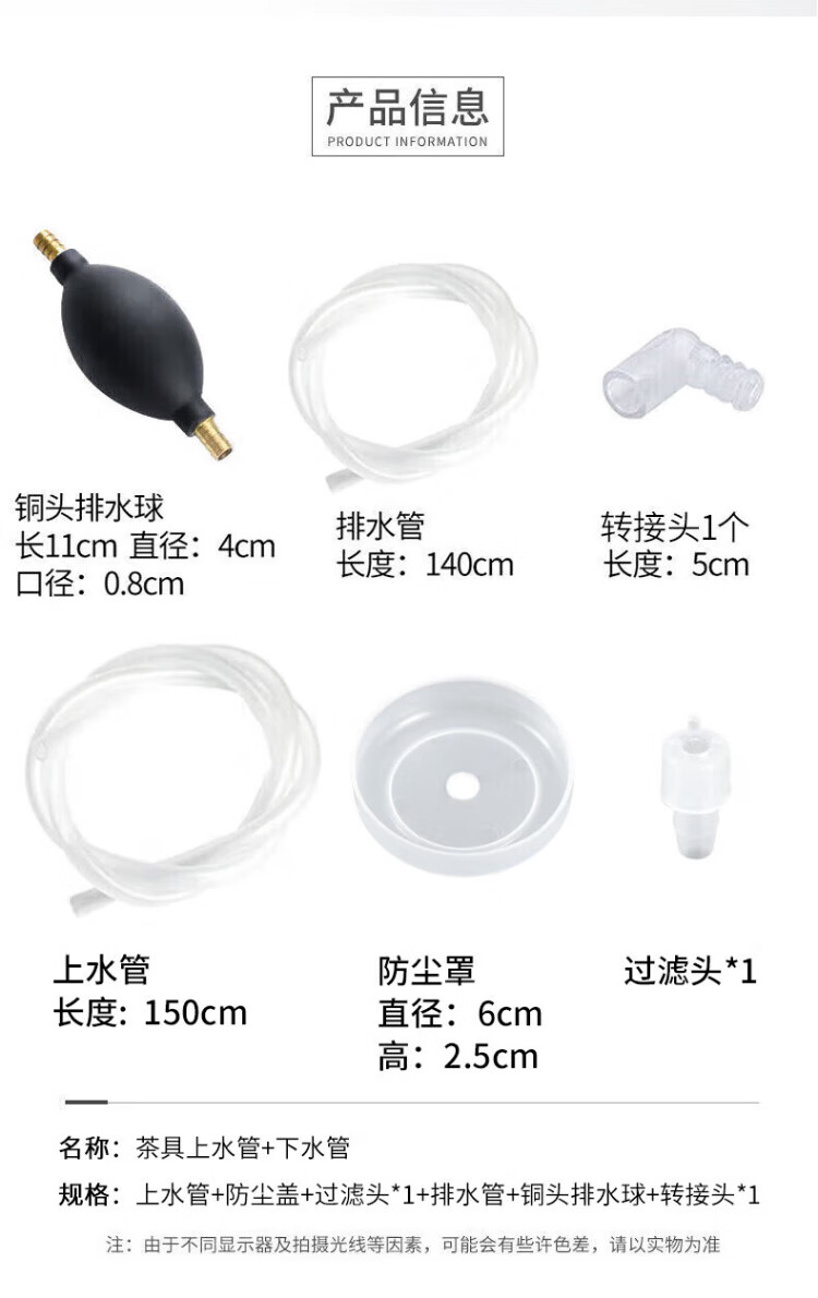 Mengting (Mengting) Cubo de escoria de té Bandeja de té Dispensador de agua Tubo de agua Tubo de succión inferior Bola de cobre + manguera 1.5 metros
