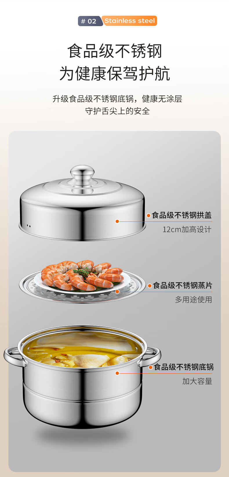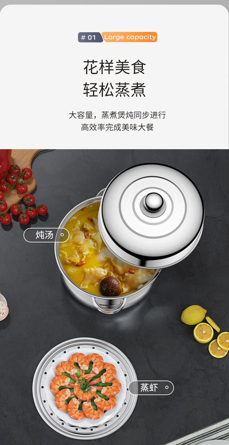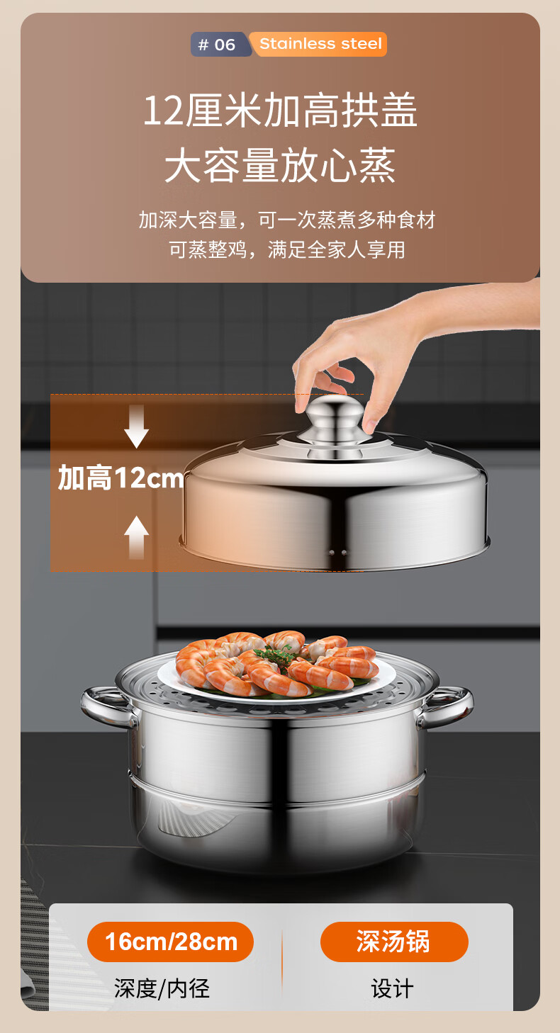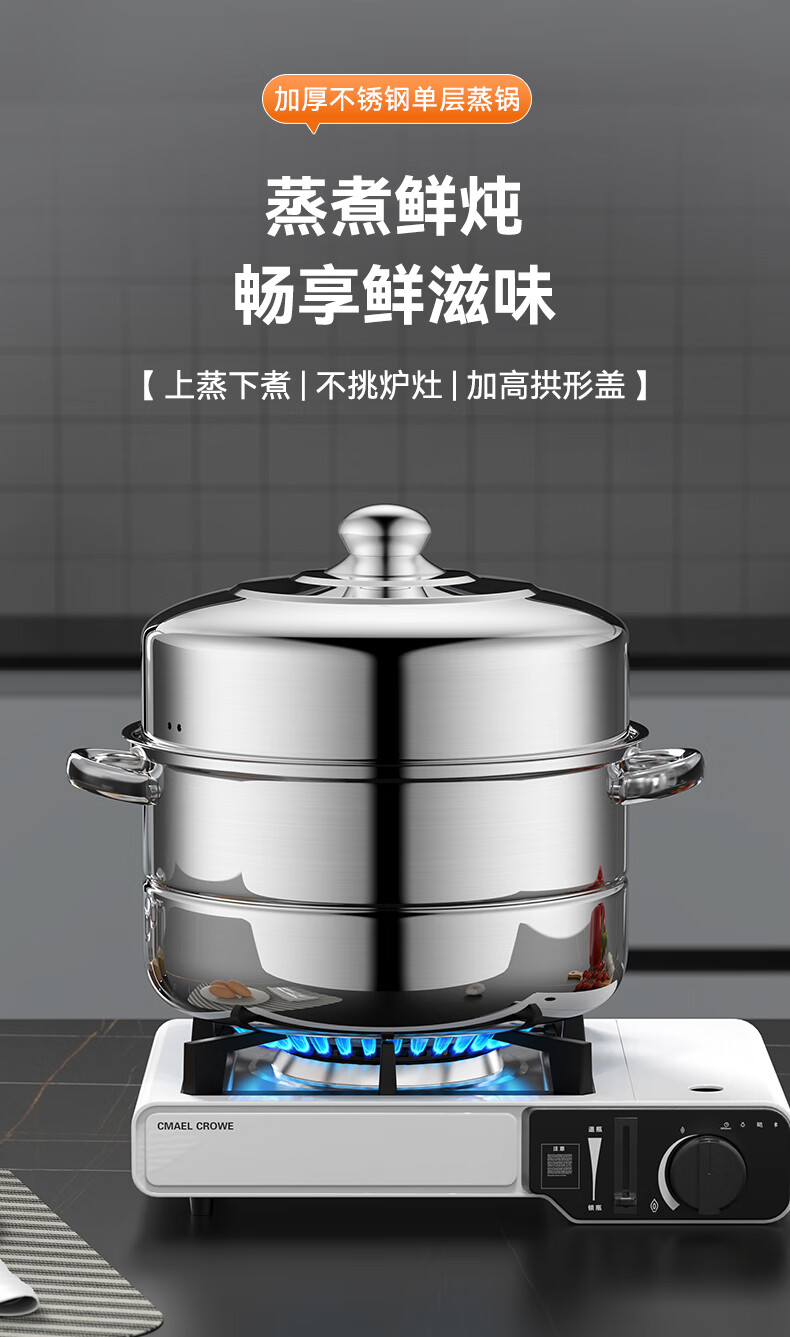 BSITN不锈钢蒸锅一层蒸鱼锅28cm电磁炉蒸锅燃气灶馒头单层蒸锅家用1428
