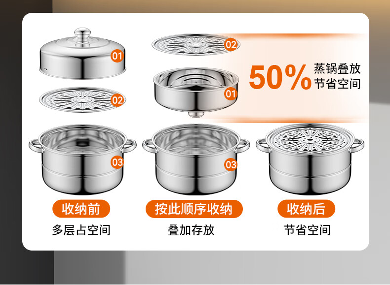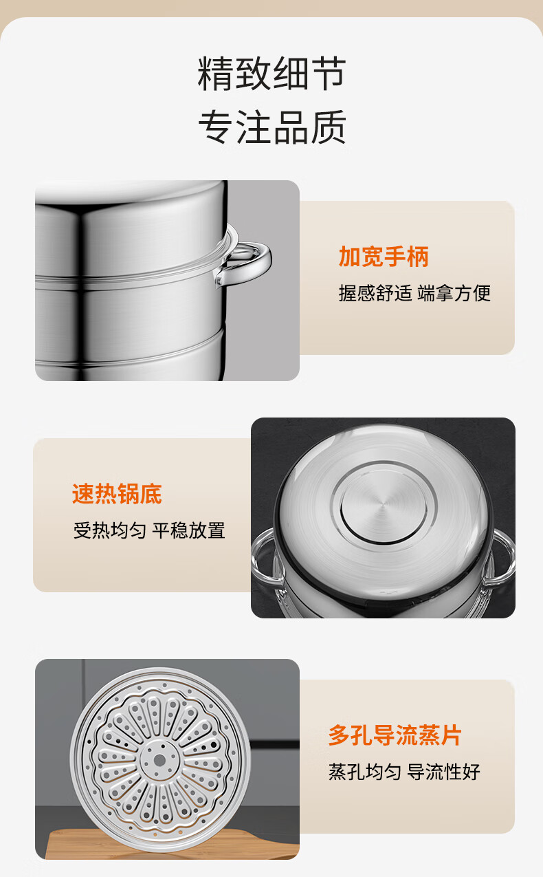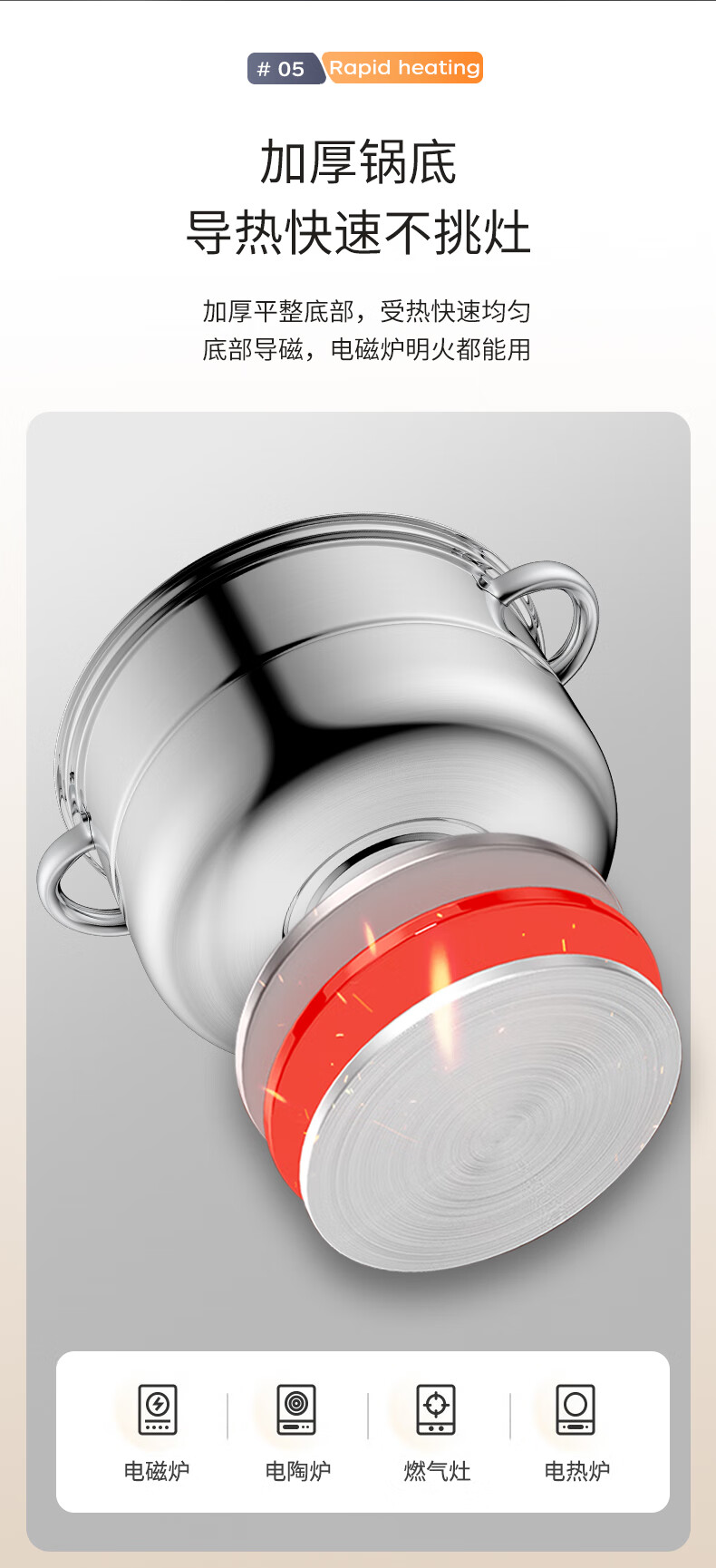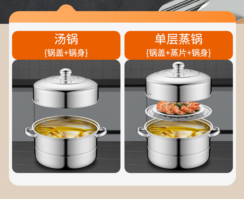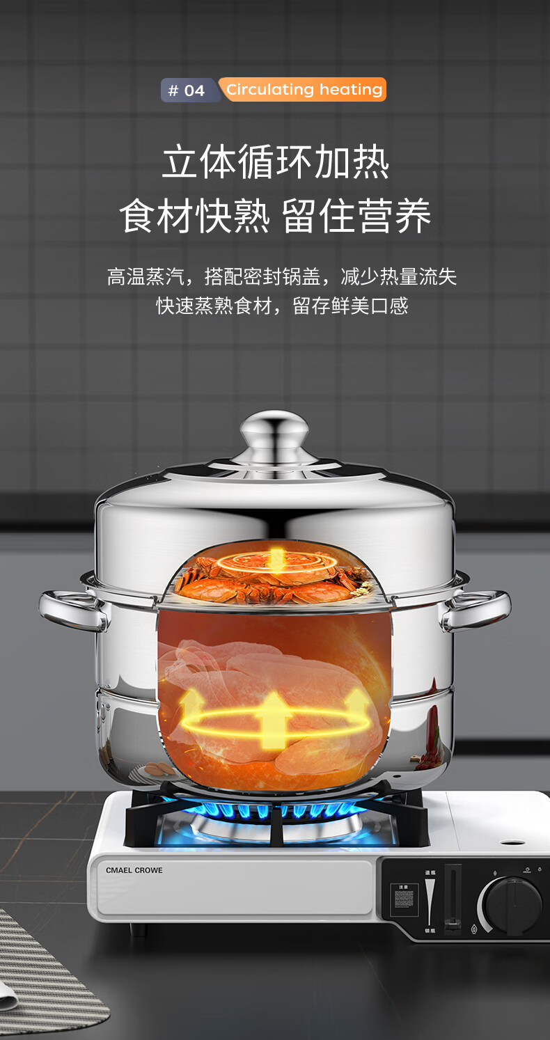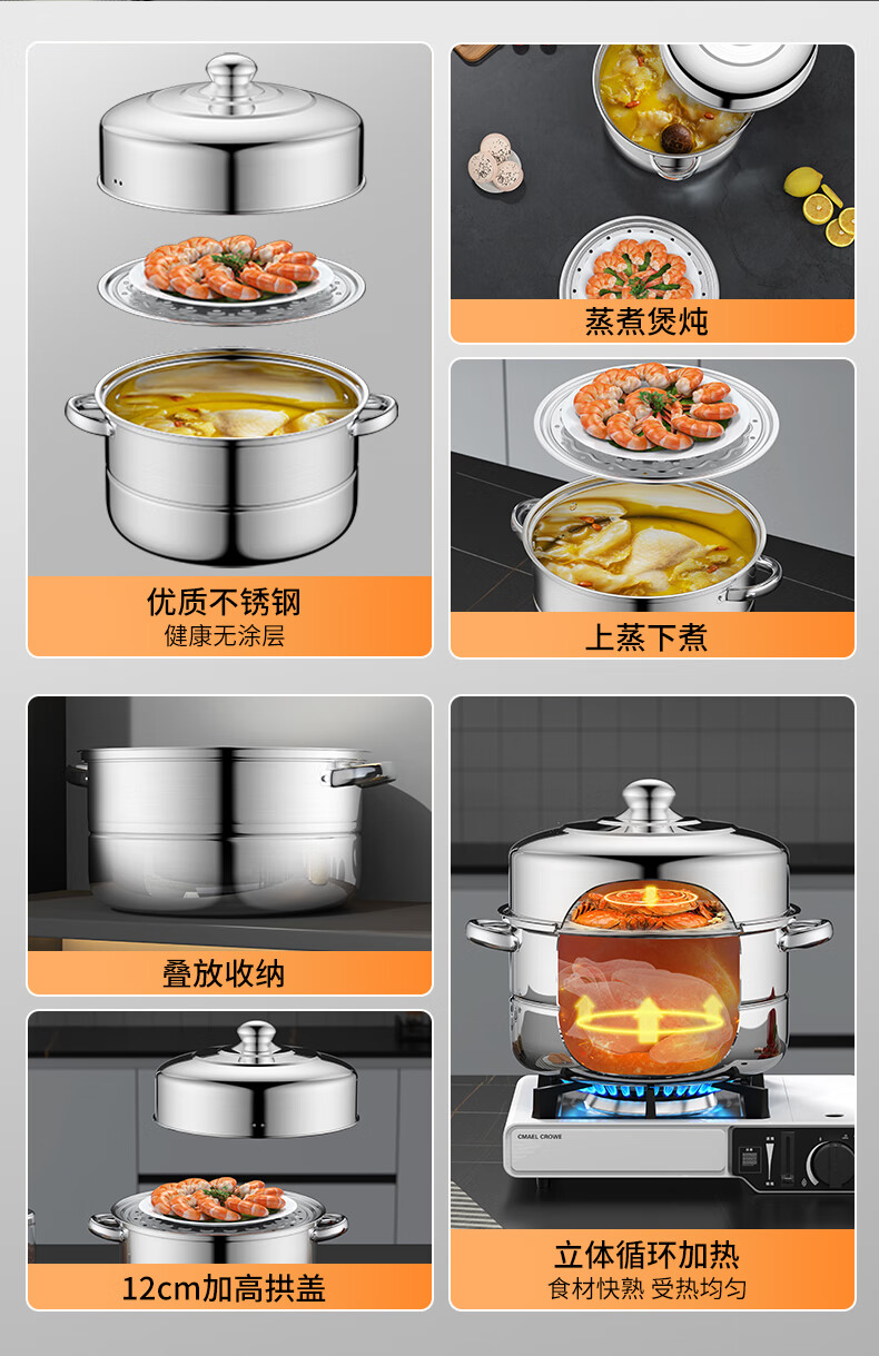 BSITN不锈钢蒸锅一层蒸鱼锅28cm电磁炉蒸锅燃气灶馒头单层蒸锅家用1428