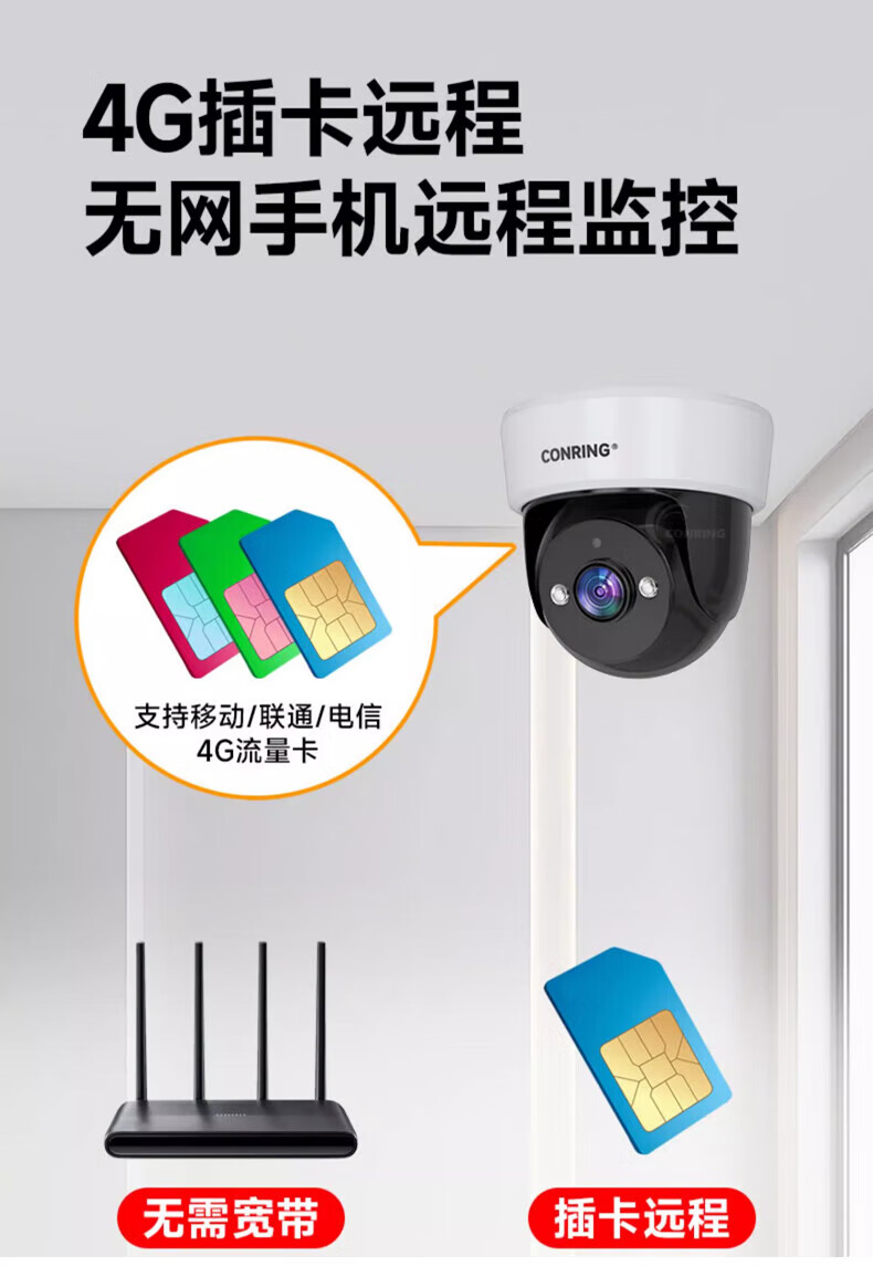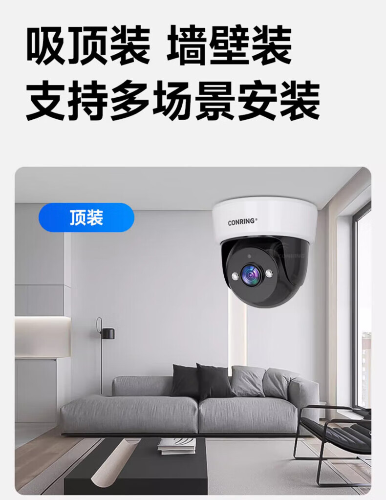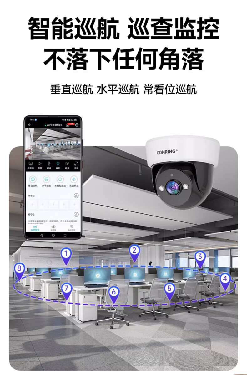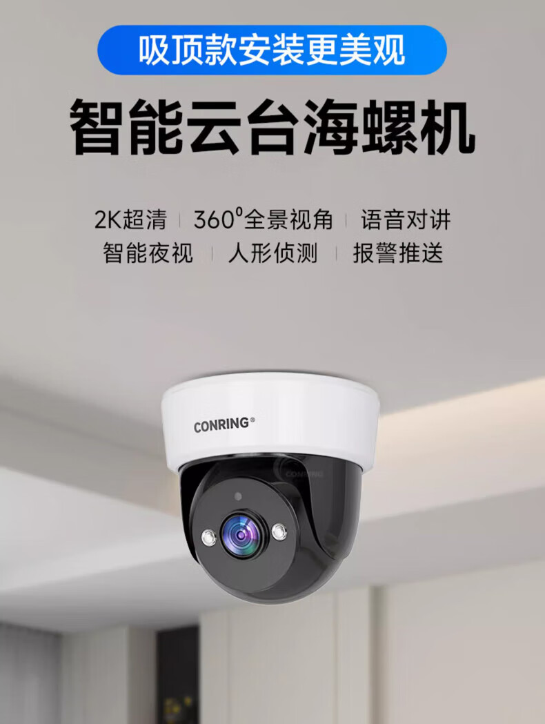Moniteur CONRING 360 degrés sans angles morts avec vision nocturne caméra commerciale 4g ​​monté au plafond sans fil panoramique-inclinaison hémisphère rotatif surveillance maison porte d'entrée intérieure couloir ascenseur