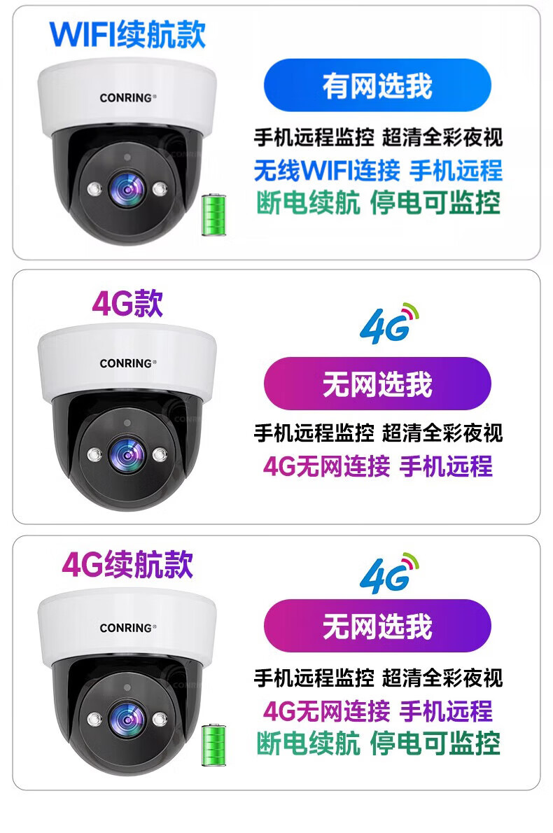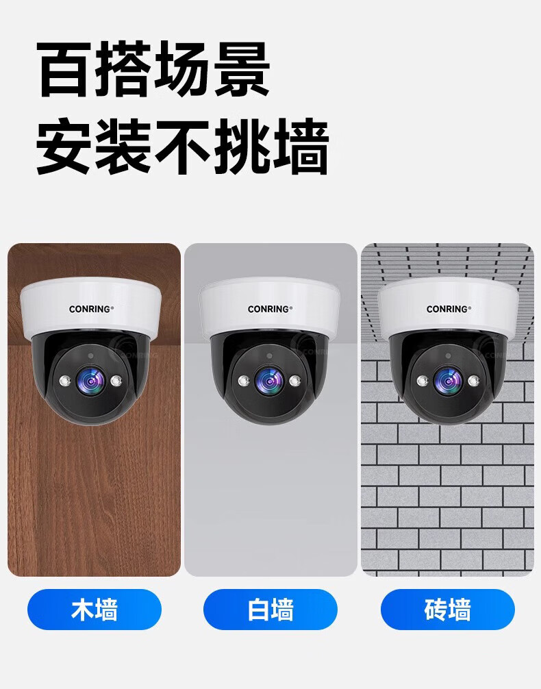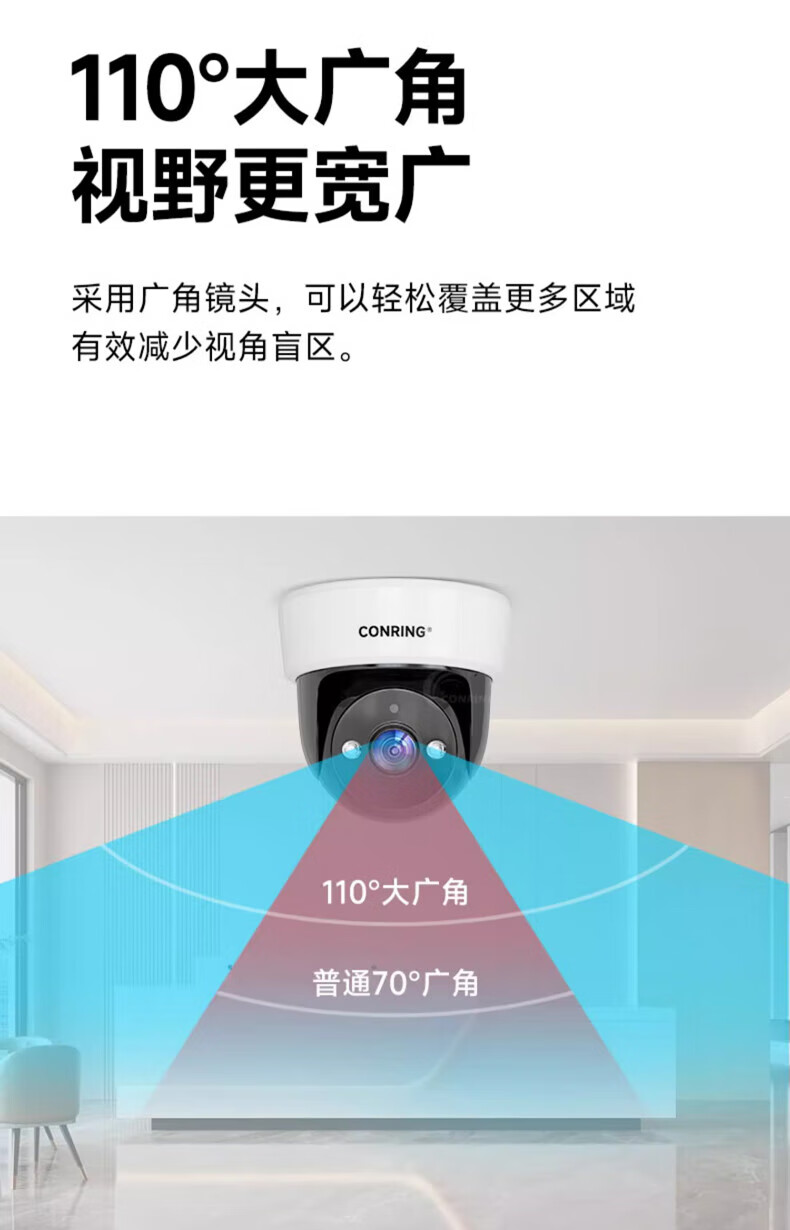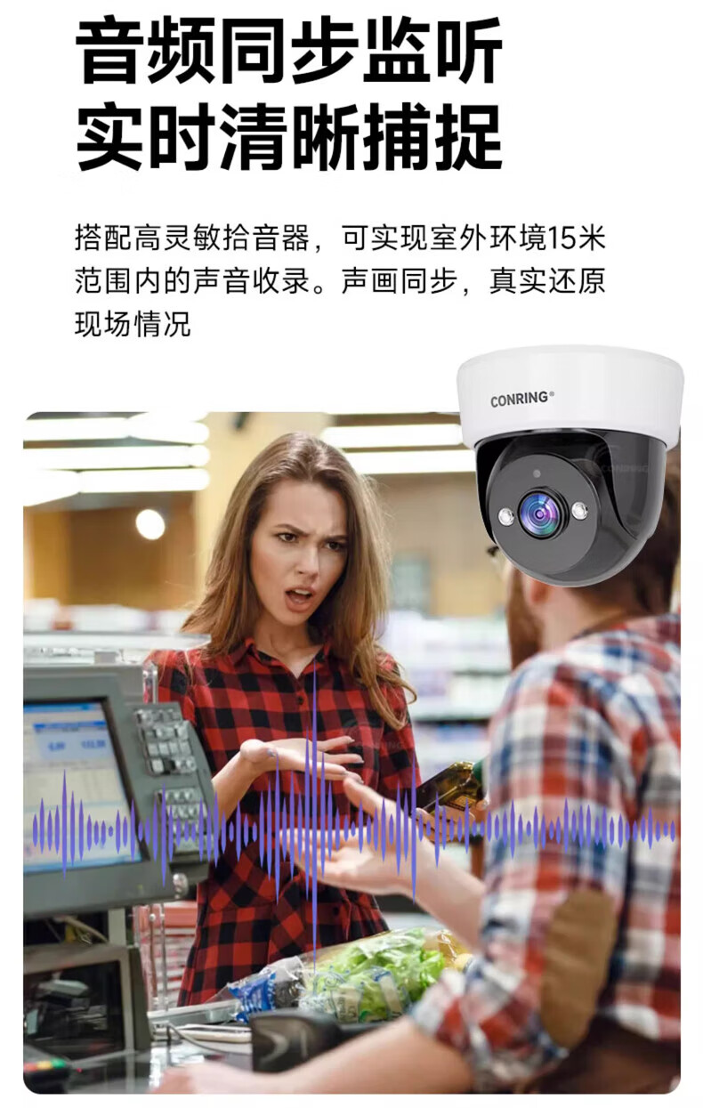 Moniteur CONRING 360 degrés sans angles morts avec vision nocturne caméra commerciale 4g ​​monté au plafond sans fil panoramique-inclinaison hémisphère rotatif surveillance maison porte d'entrée intérieure couloir ascenseur