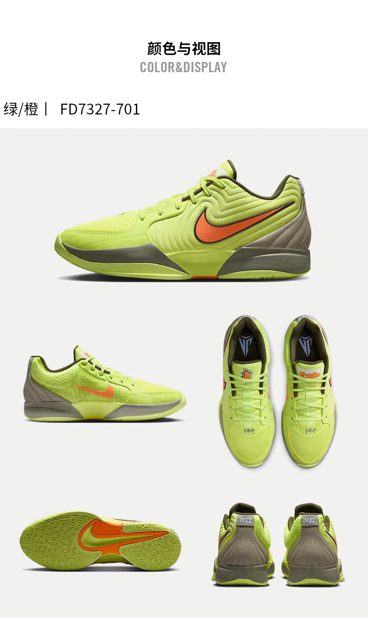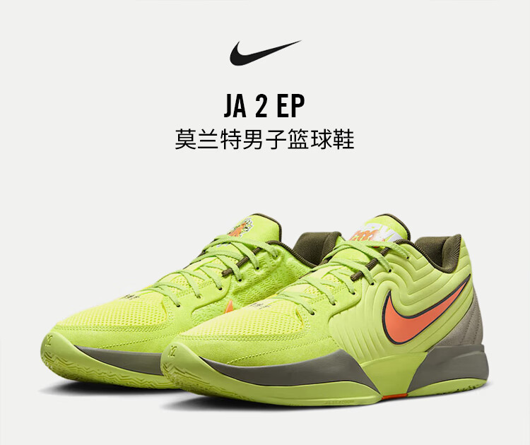 Nike NIKE Herren-Basketballschuhe JA 2 EP dämpfende praktische Low-Top-Sportschuhe FD7327-701 Grün Orange 42