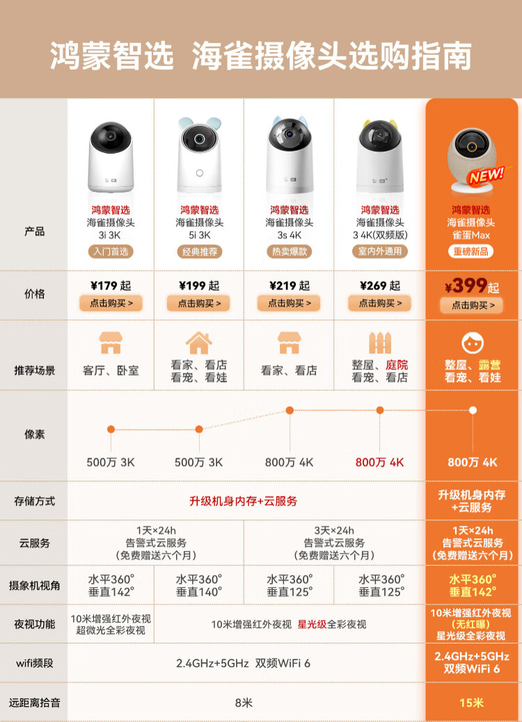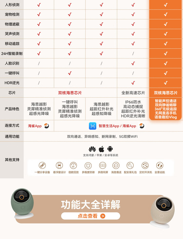 Puffin 8 million camera surveillance home 360-degree no blind spots with night vision panoramic view maternal and child pet indoor care AI embodied smart Hongmeng Intelligent Selection Sparrow Egg Max