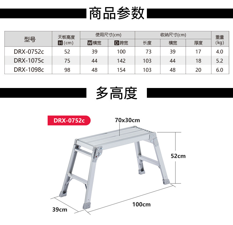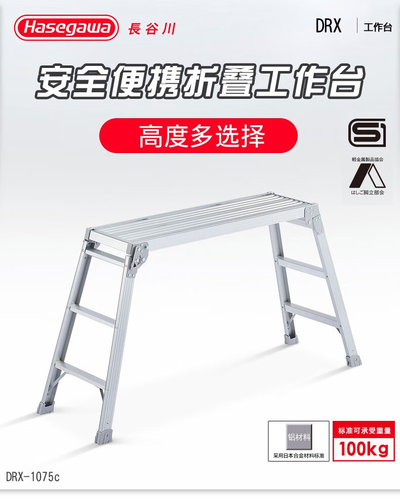 長谷川(Hasegawa)日本长谷川折叠便携马凳洗车工作台移动工程梯铝合金平台梯子DRX DRX-1098(高0.98米)