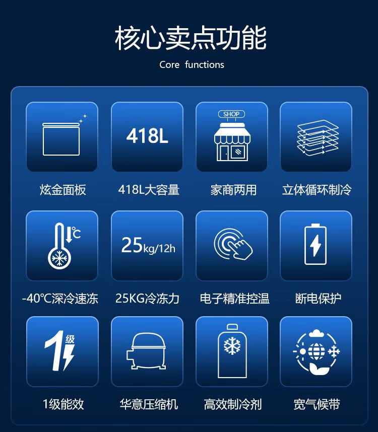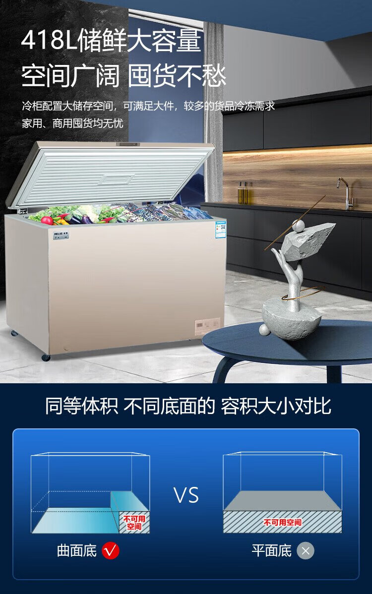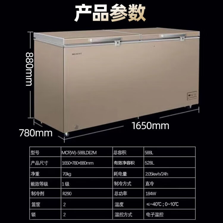 Meiling (MeiLing) Gefrierschrank Subvention 418/528/738 Liter kommerzielle Computer-Temperaturregelung -40 Grad Niedrigtemperatur-Kühlung und Gefrieren Einzeltemperatur-Umwandlungsschrank kommerzieller Super-Fleisch-Tee-Schnellgefrier-Frischschrank BC/BD-418DTE PCM-Stahlblase 418L