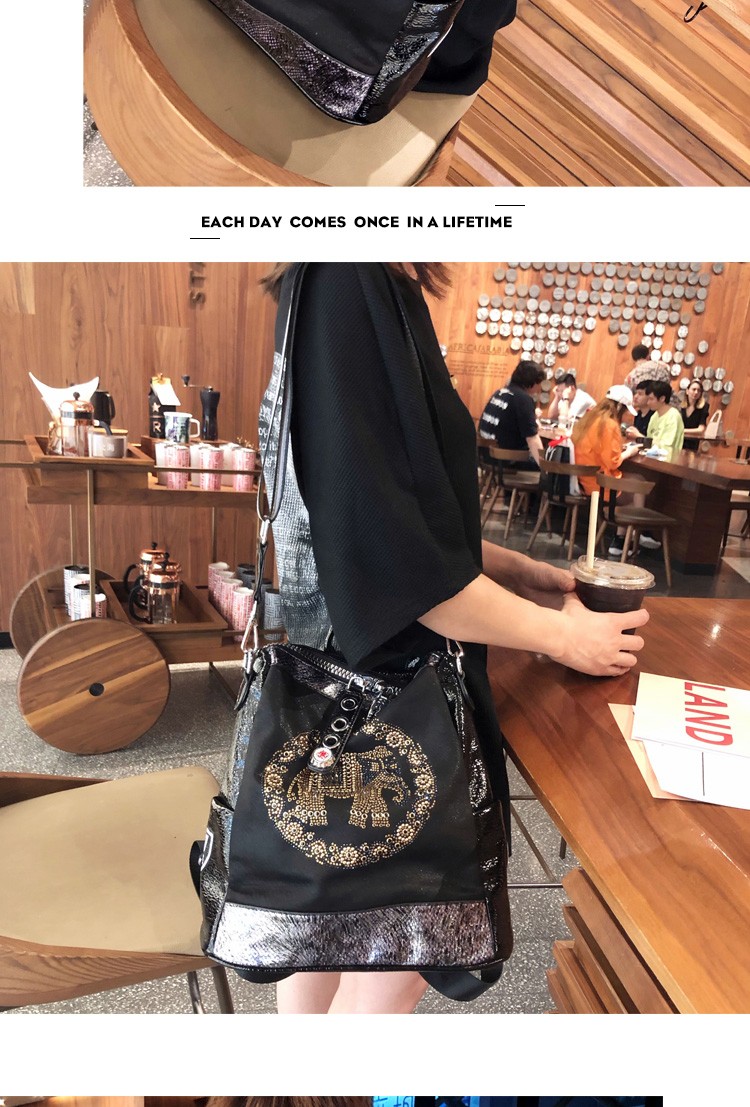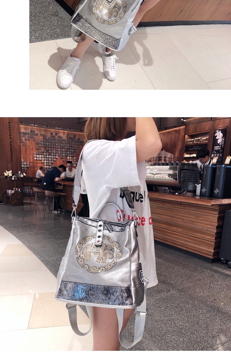 迈克史密斯 女包双肩包 春夏新款大象烫钻火时尚百搭大容量三用背包休闲洋气潮CK1694 黑色