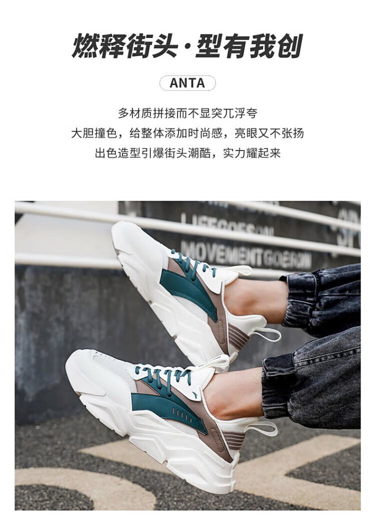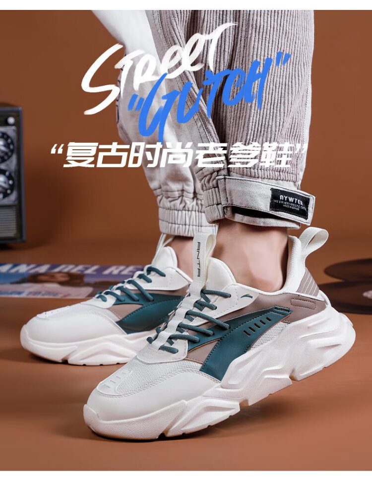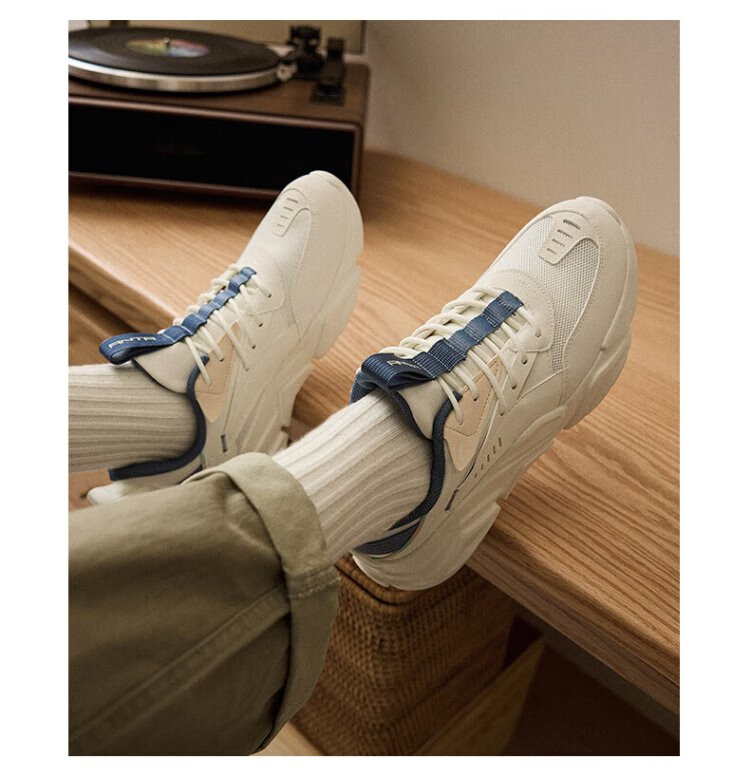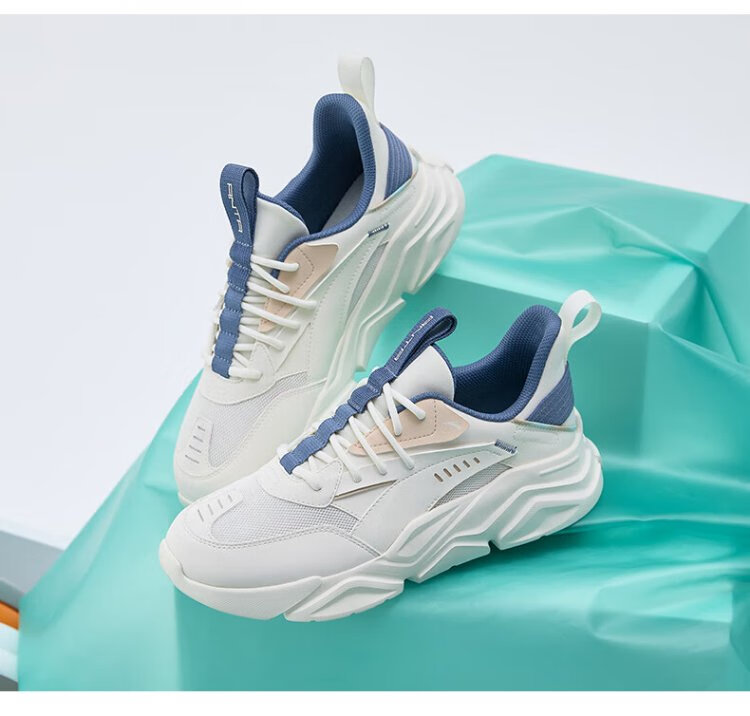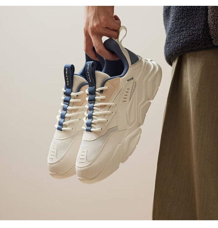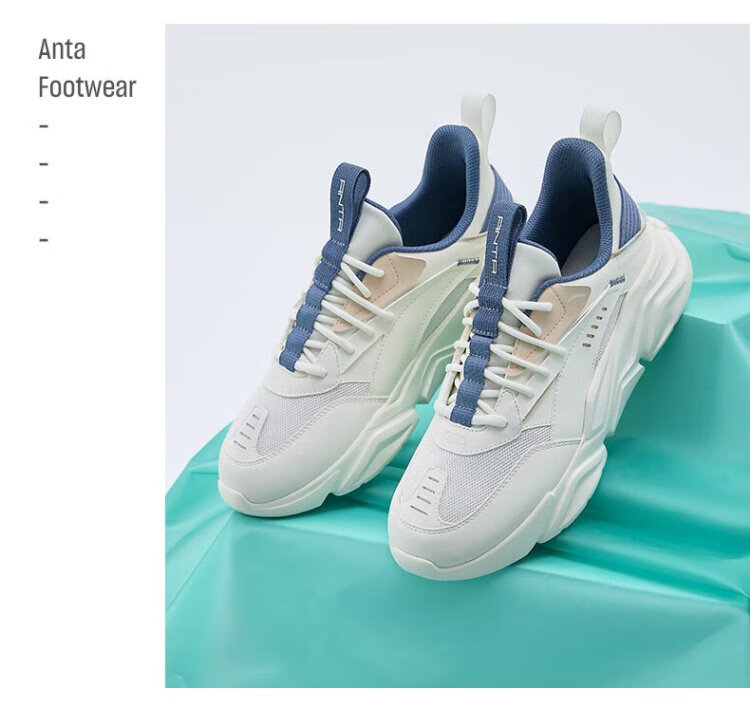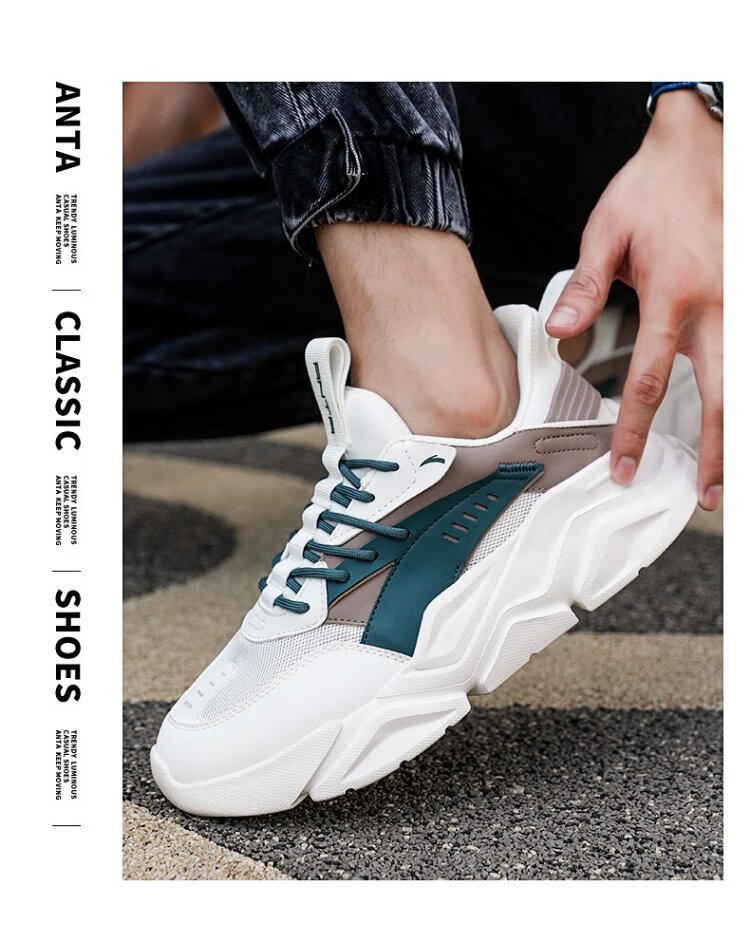 ANTA (ANTA) Chaussures de sport pour hommes 2025 Officielles Nouvelles chaussures de course rétro tendance en maille respirantes Chaussures de voyage décontractées pour papa Blanc ivoire/Gris lin/Vert mousse foncé 42