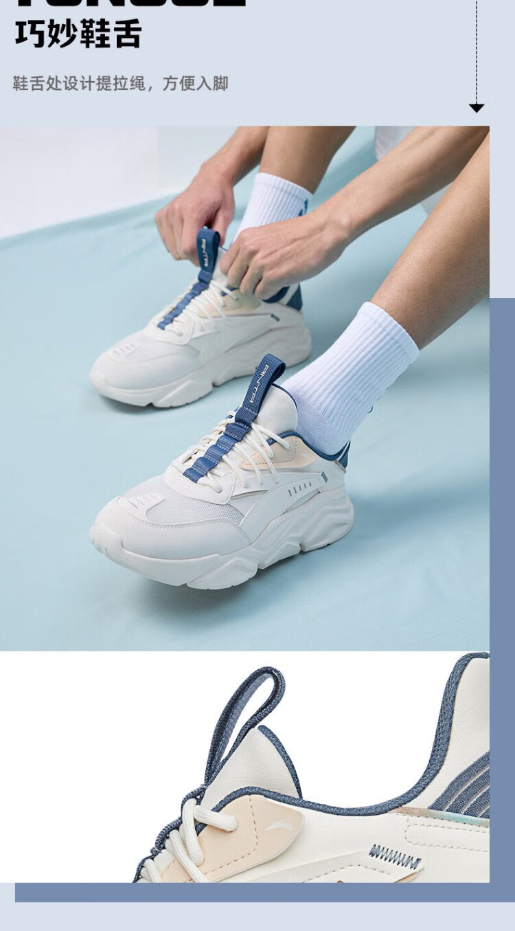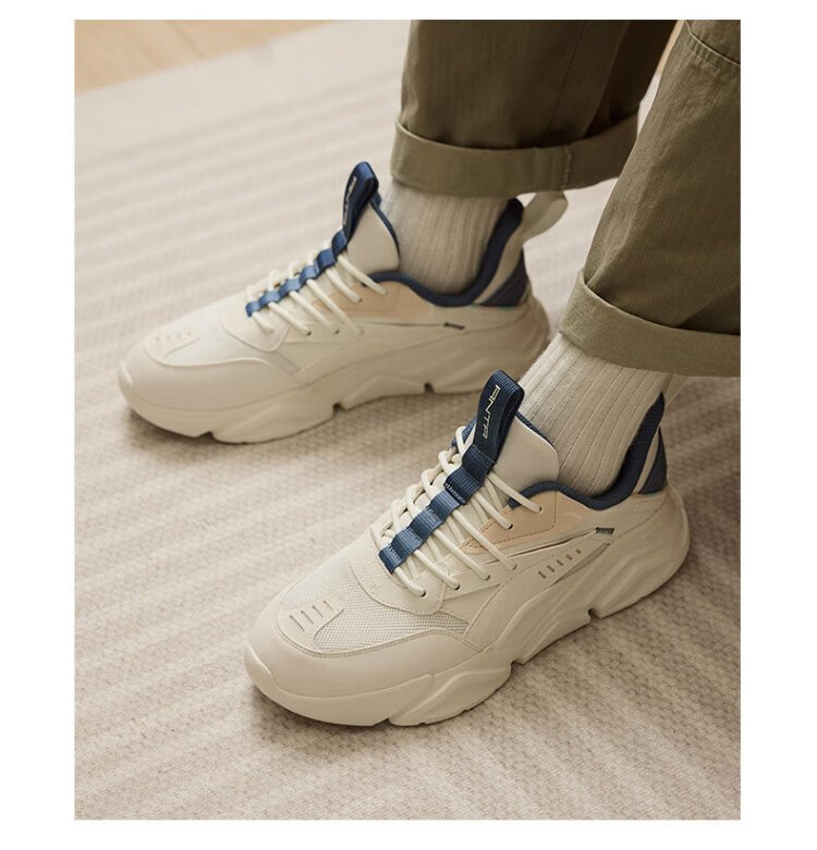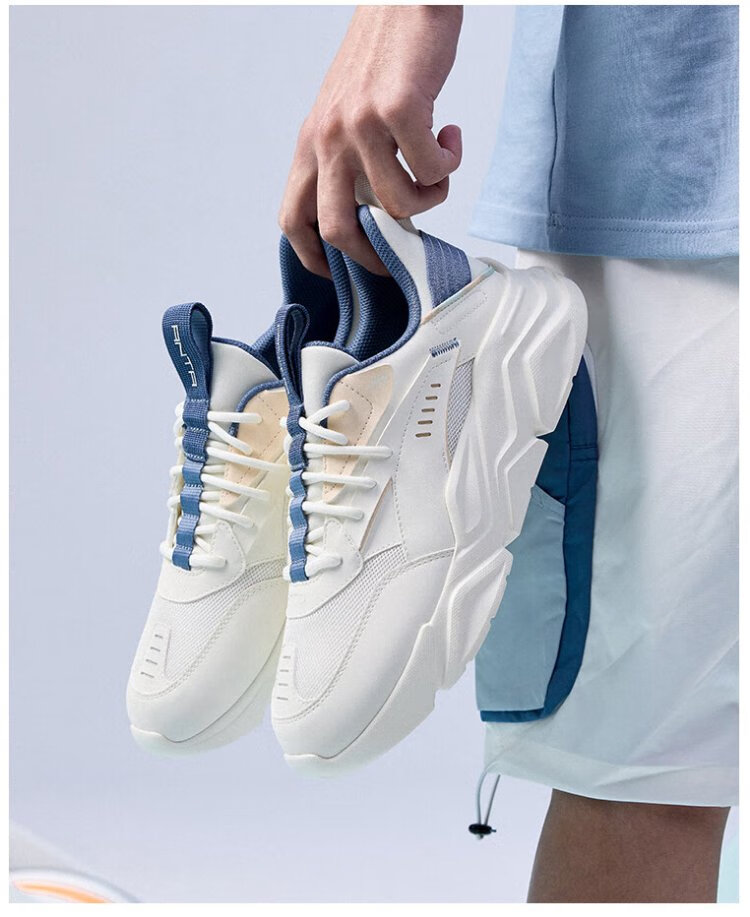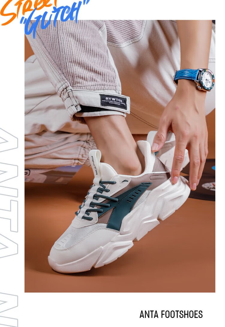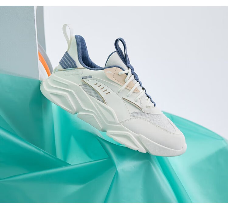 ANTA (ANTA) Chaussures de sport pour hommes 2025 Officielles Nouvelles chaussures de course rétro tendance en maille respirantes Chaussures de voyage décontractées pour papa Blanc ivoire/Gris lin/Vert mousse foncé 42