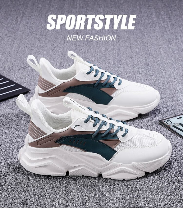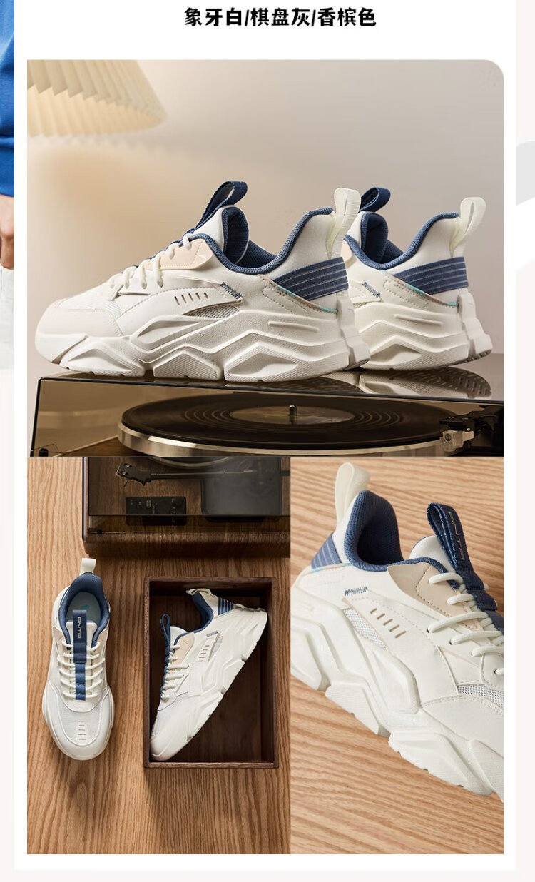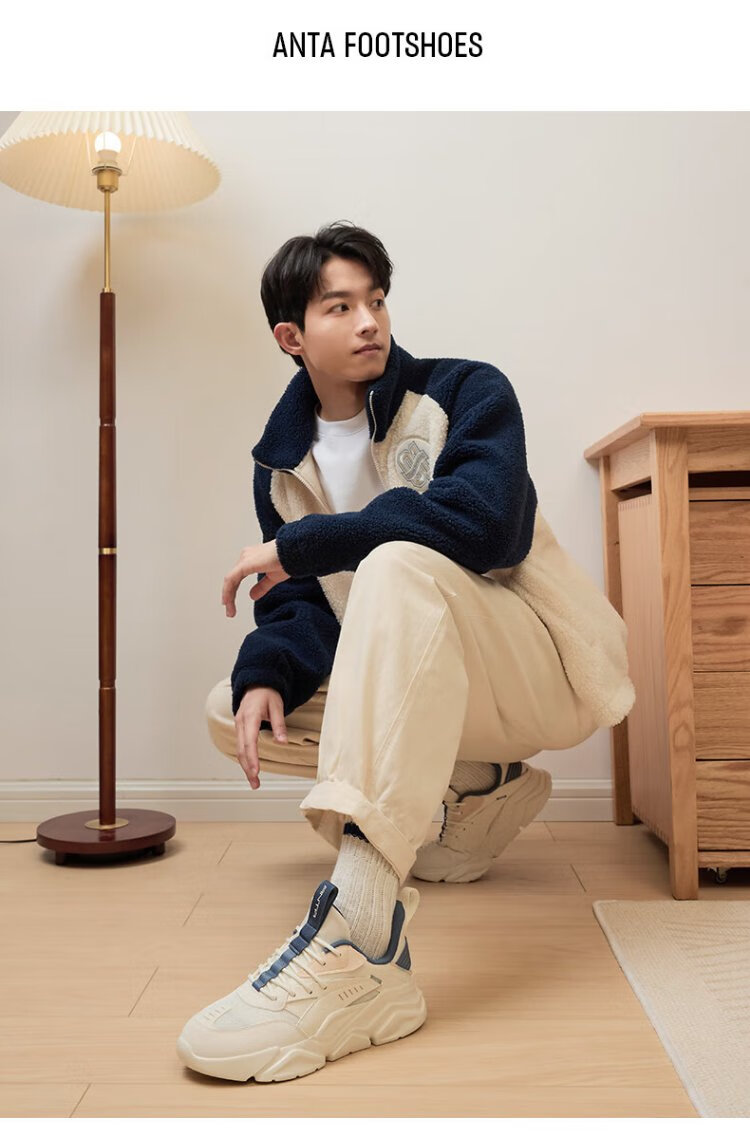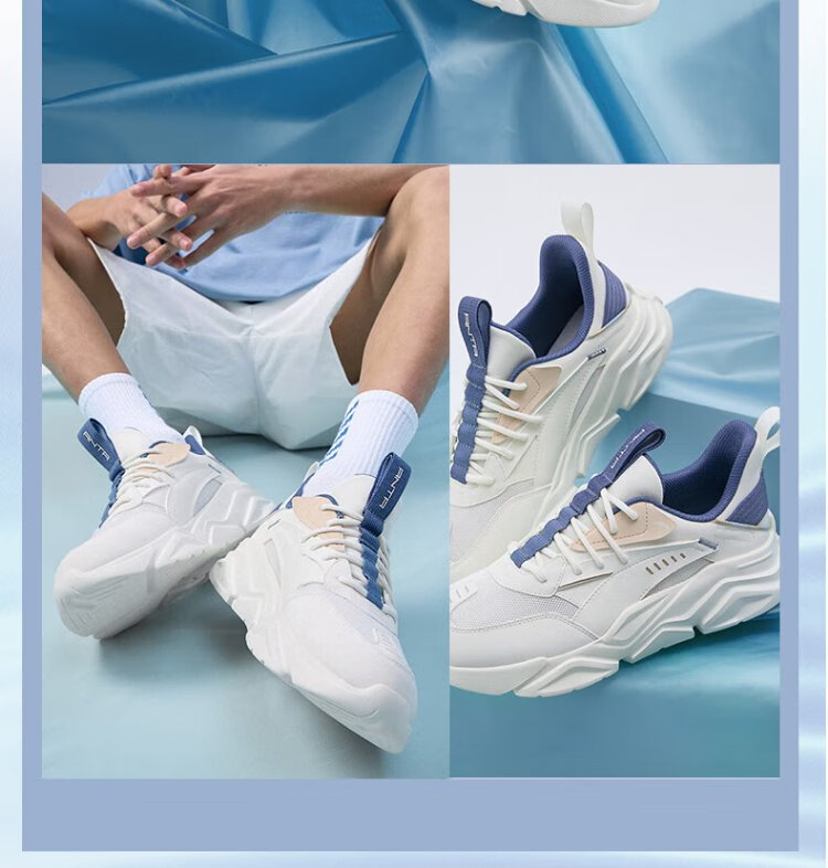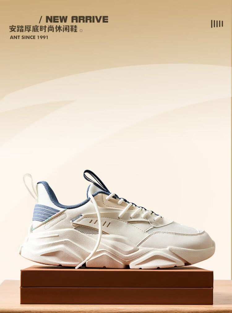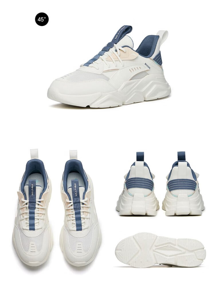 ANTA (ANTA) Chaussures de sport pour hommes 2025 Officielles Nouvelles chaussures de course rétro tendance en maille respirantes Chaussures de voyage décontractées pour papa Blanc ivoire/Gris lin/Vert mousse foncé 42