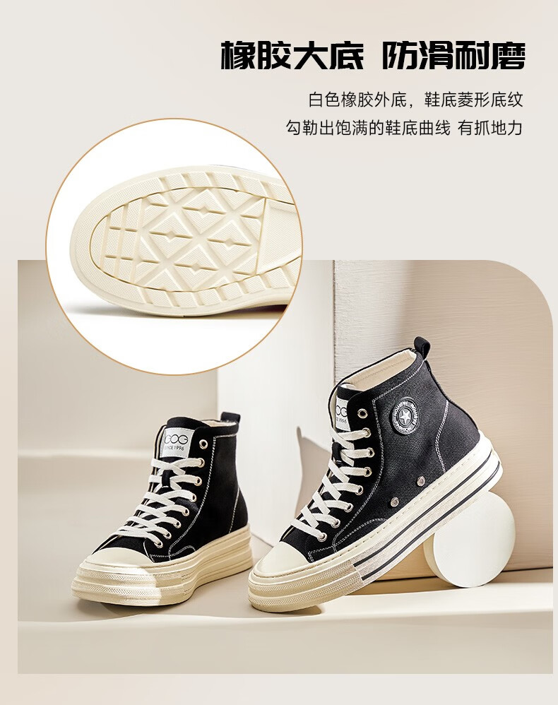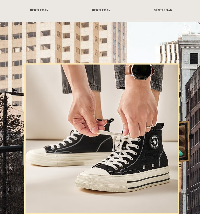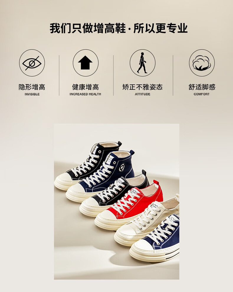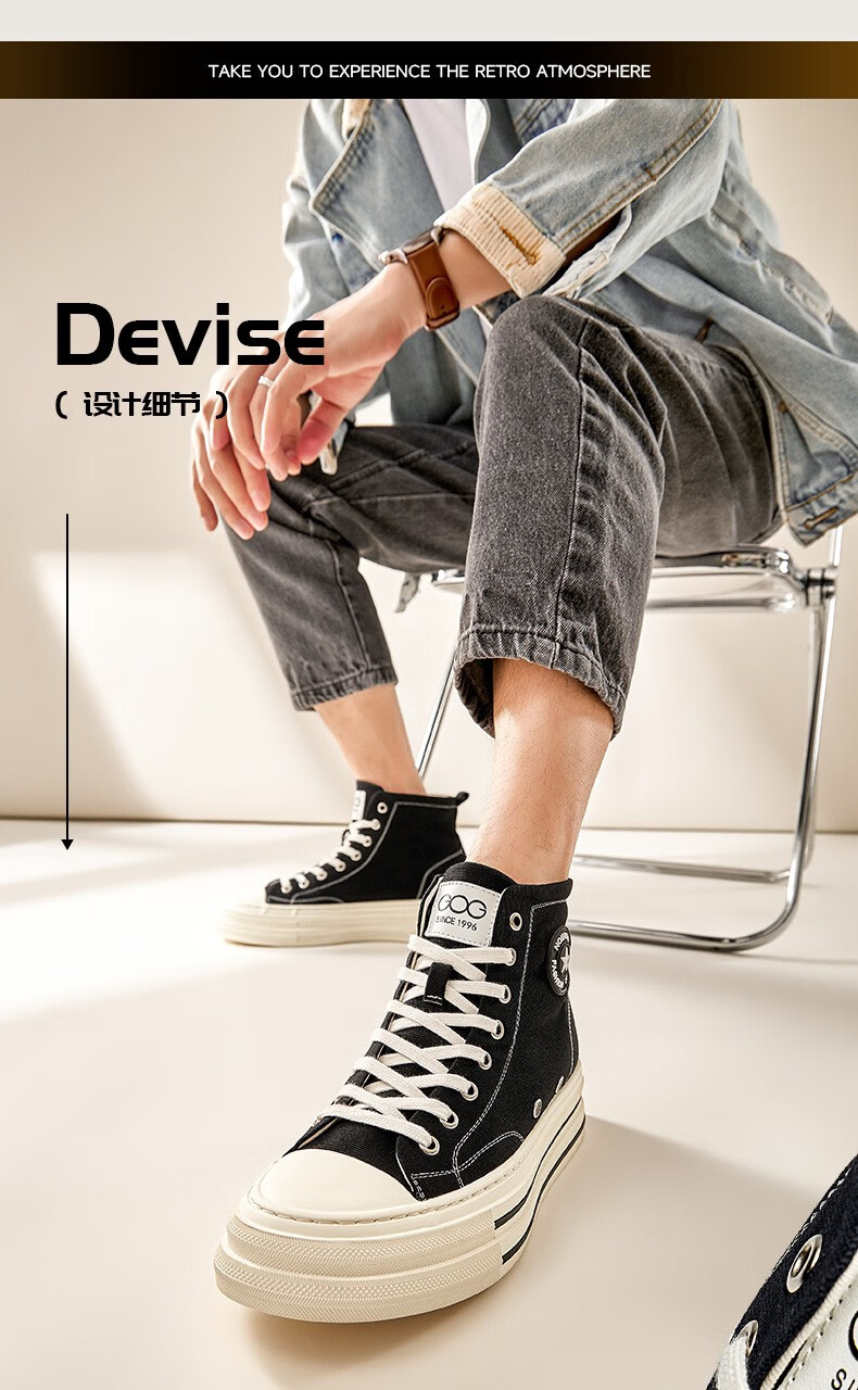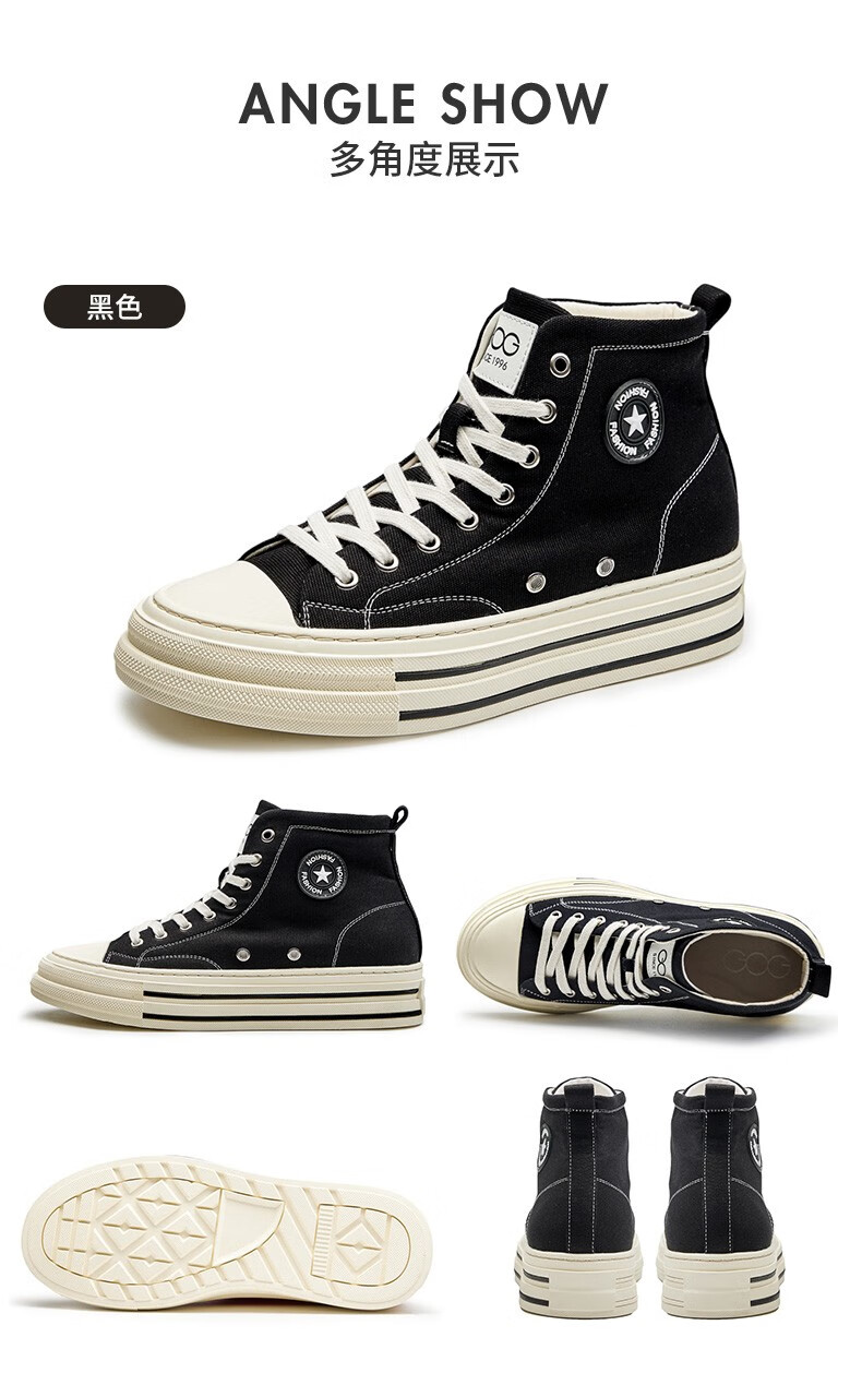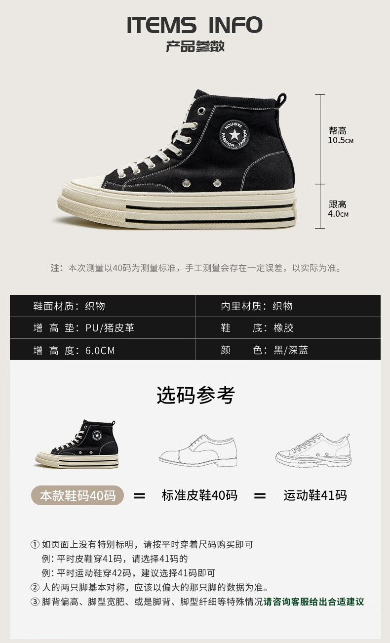 高哥帆布鞋男春秋款高帮增高休闲男鞋学生运动小白鞋隐形内增高板鞋 黑色高帮6CM 627XC 42