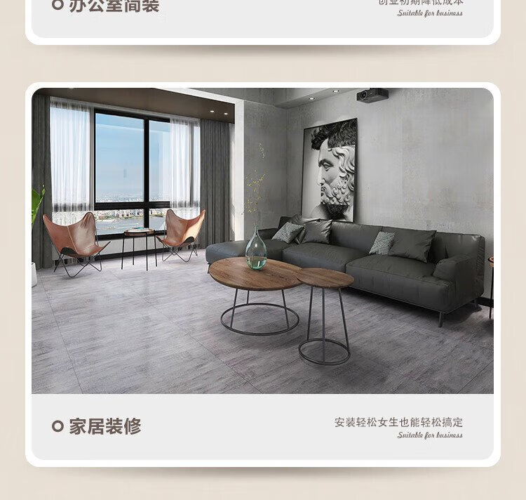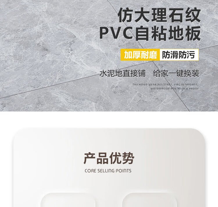 柏宜斯PVC自粘地板胶地板革地板贴加厚耐磨办公室厨房卧室水泥地家用 6194(60x60cmx1.2mm) 片