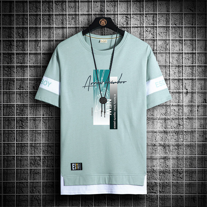 gxmy冰丝短袖T恤男士圆领印花夏季衣服男装潮牌ins青少年打底体恤衫 866黑色V图+866绿色方块 3XL 160-180斤
