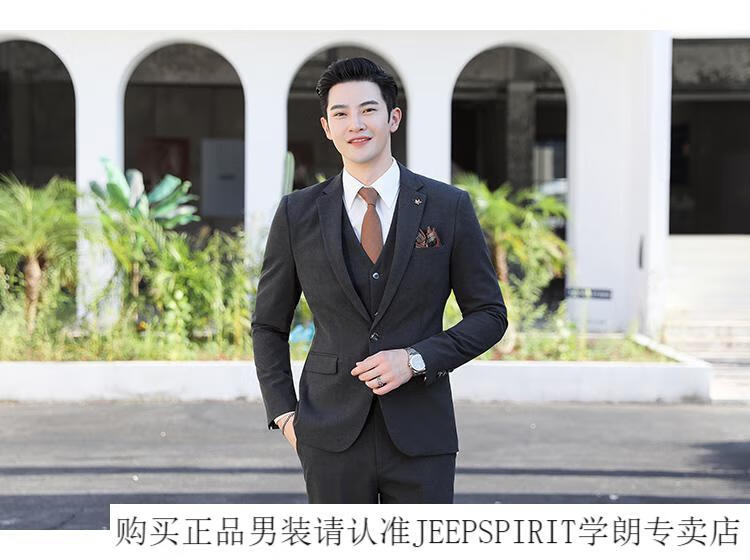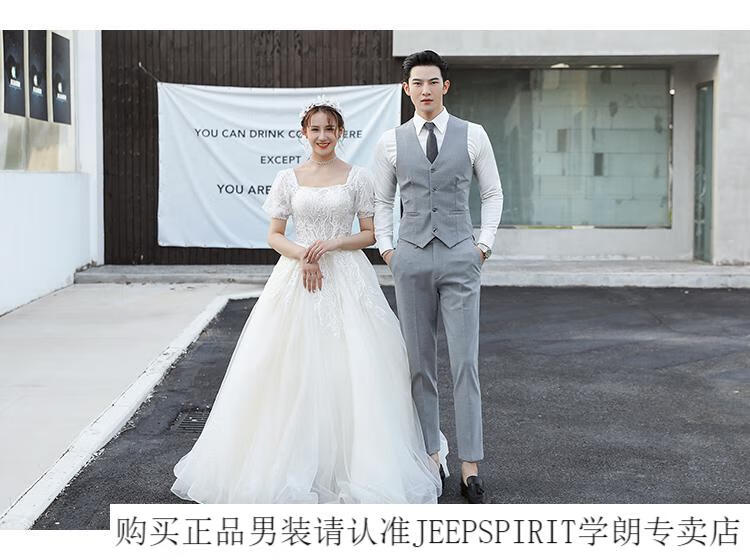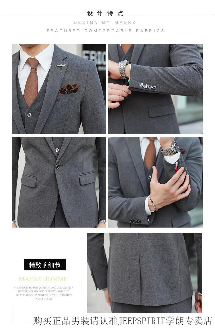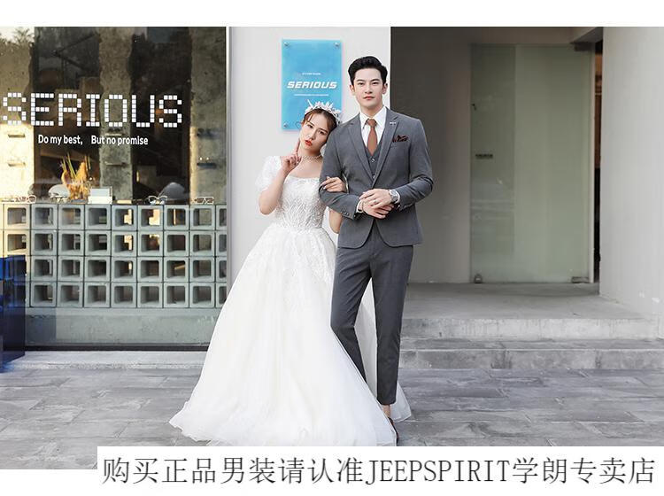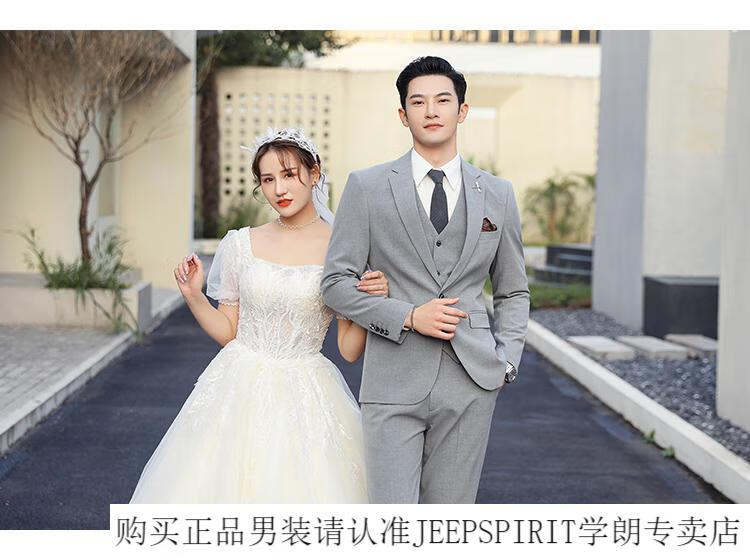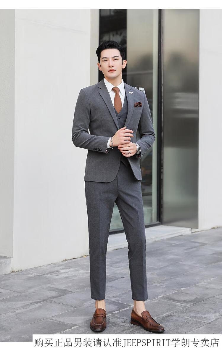 JEEP SPIRIT traje de novio de verano para hombre vestido de novia versión coreana ropa formal profesional informal de negocios delgada 9888# gris claro (traje + chaleco + pantalones) S