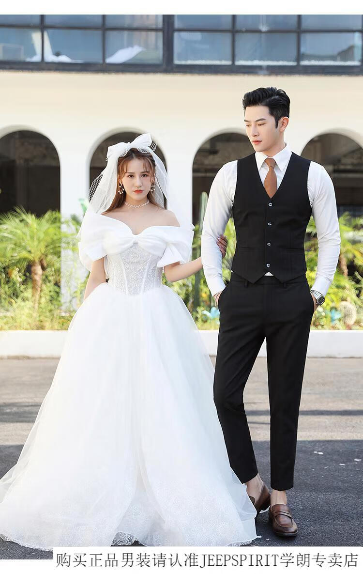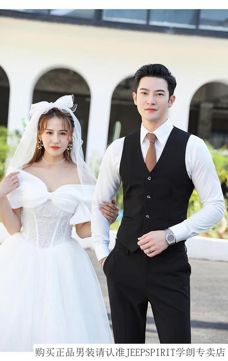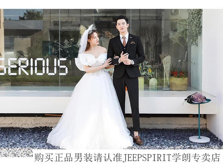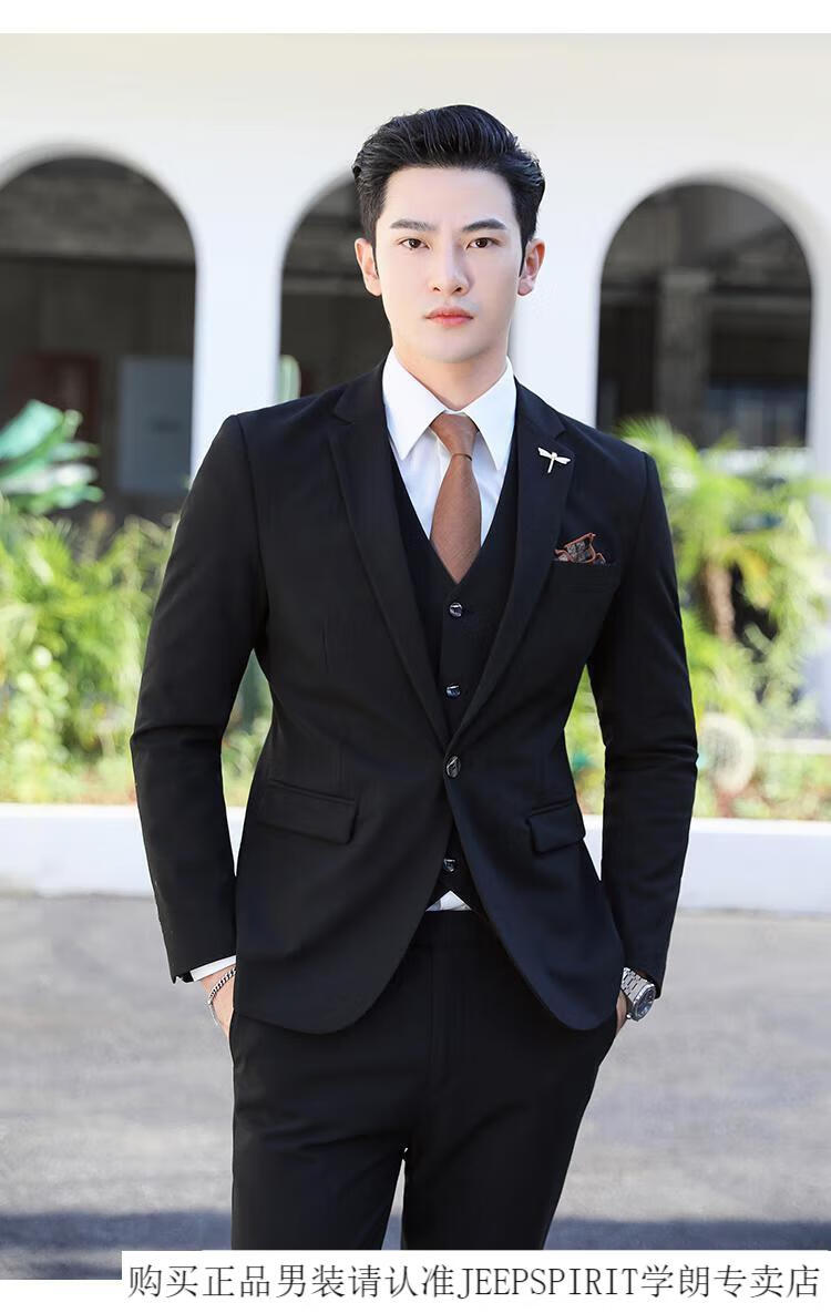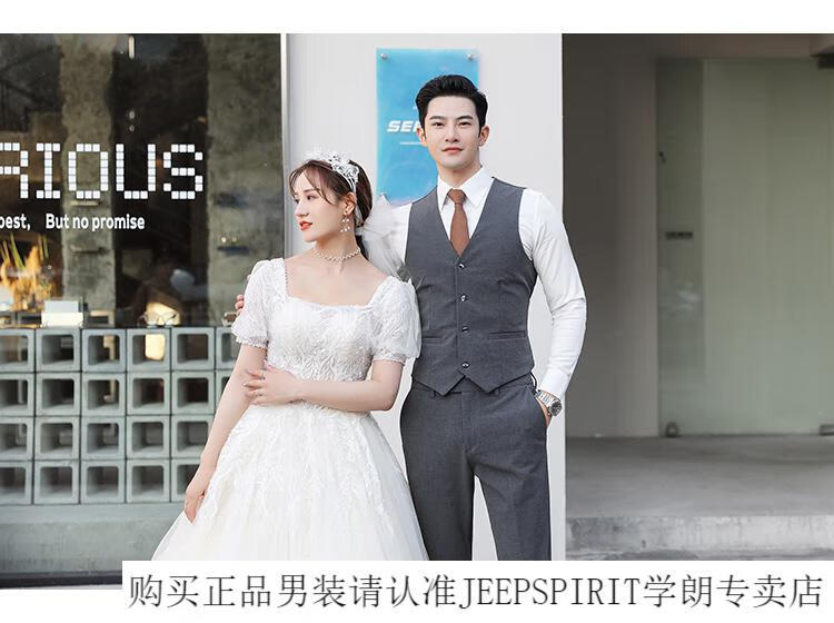 JEEP SPIRIT traje de novio de verano para hombre vestido de novia versión coreana ropa formal profesional informal de negocios delgada 9888# gris claro (traje + chaleco + pantalones) S