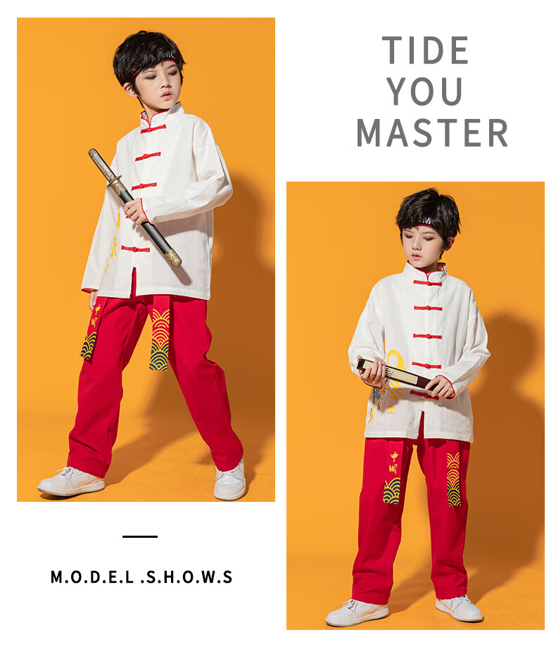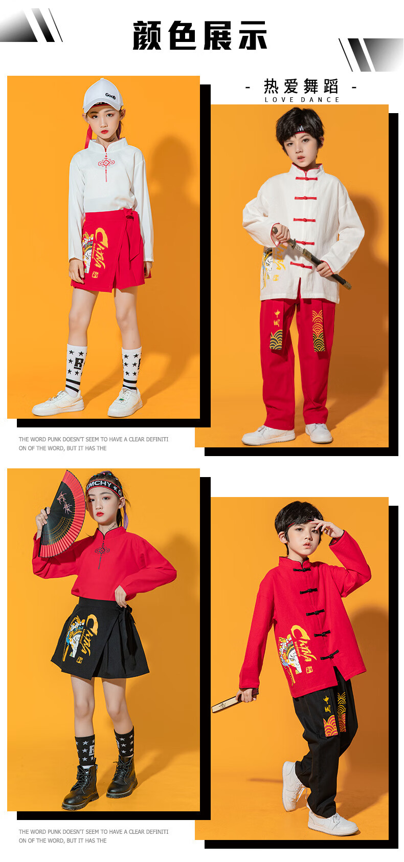 皮尔卡丹童装中国风中小学生国学汉服秋男女童中国风国潮表演服影楼儿童啦啦队精选品质 693红上衣+695黑裙 110 cm