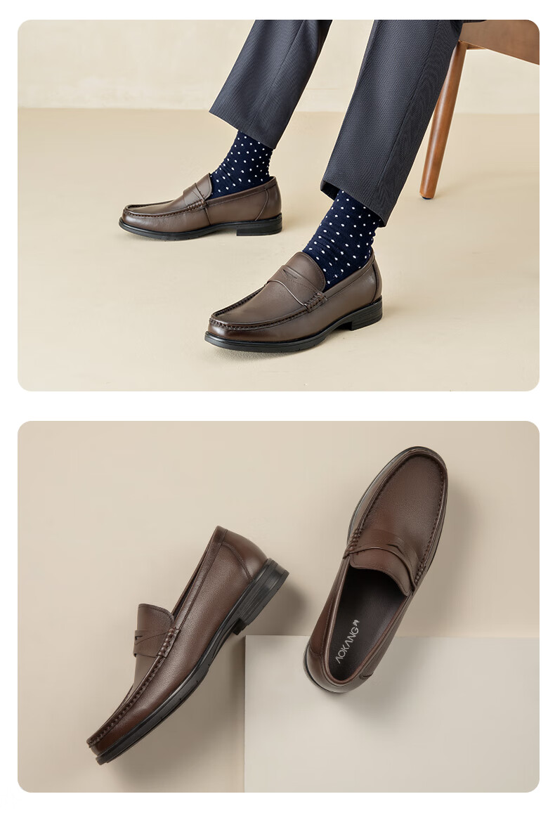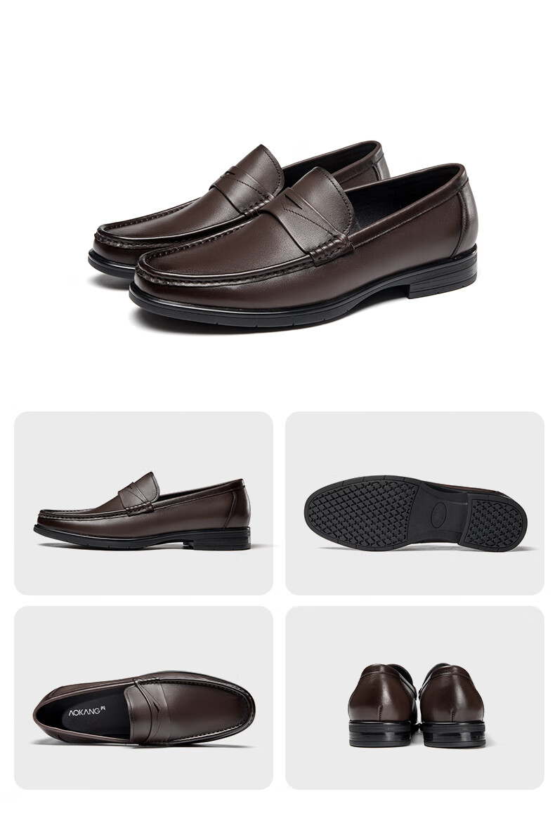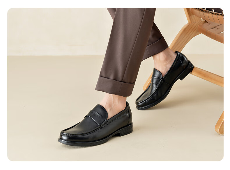 奥康官方男鞋男士低帮时尚商务休闲皮鞋舒适套脚乐福鞋 黑色1098 40