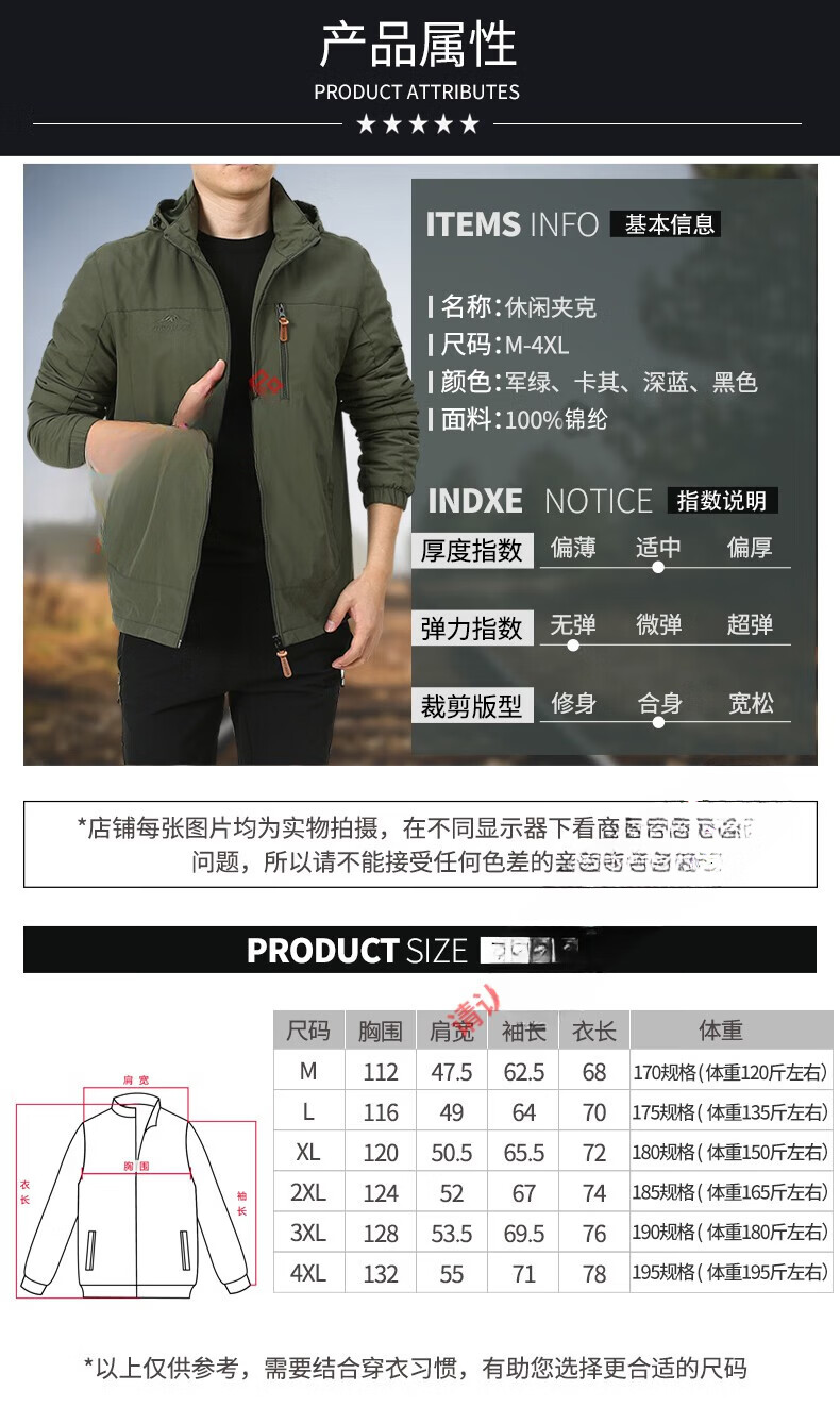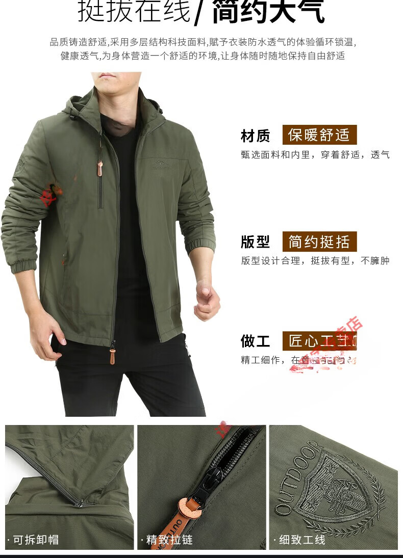 JEEP SPIRIT男装品牌户外夹克男士外套秋冬季2025新款中年男装秋装上衣 9888深蓝 不加绒 薄款 2XL 140-150