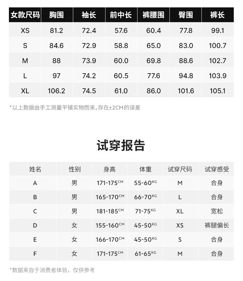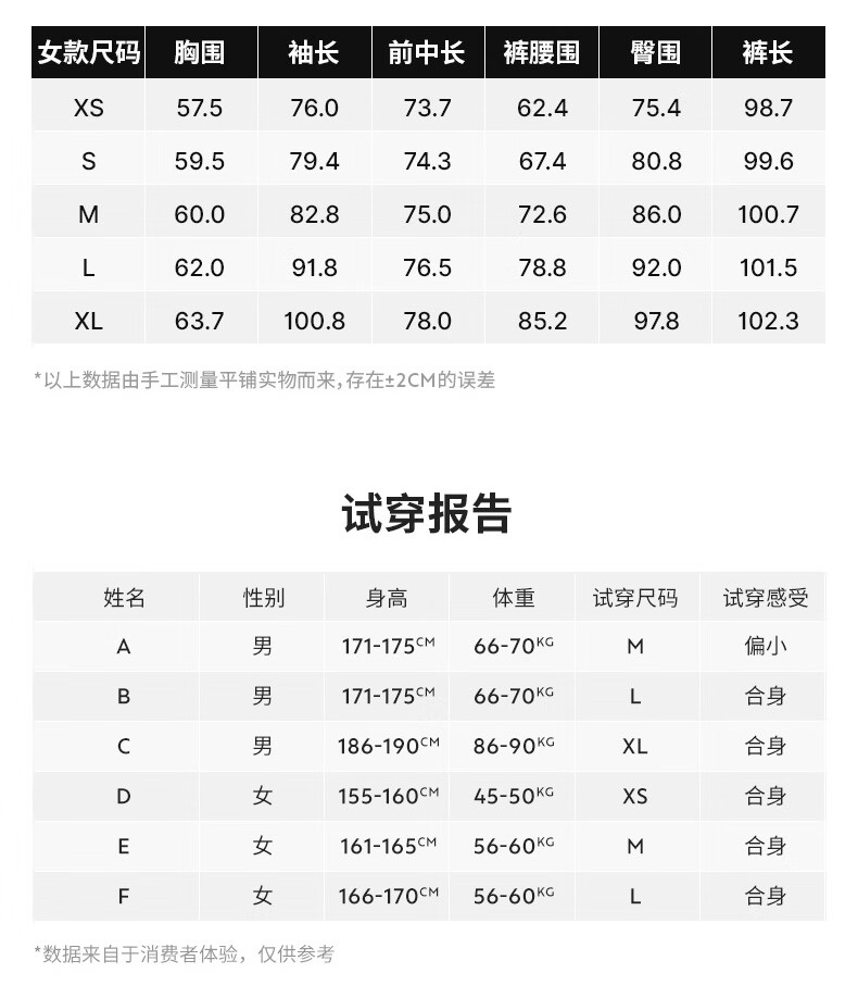 China (cm) 160-165/84-86 165-170 / 88-90 167-172 / 92-96 168-173 / 98-102 170-176 / 106-110