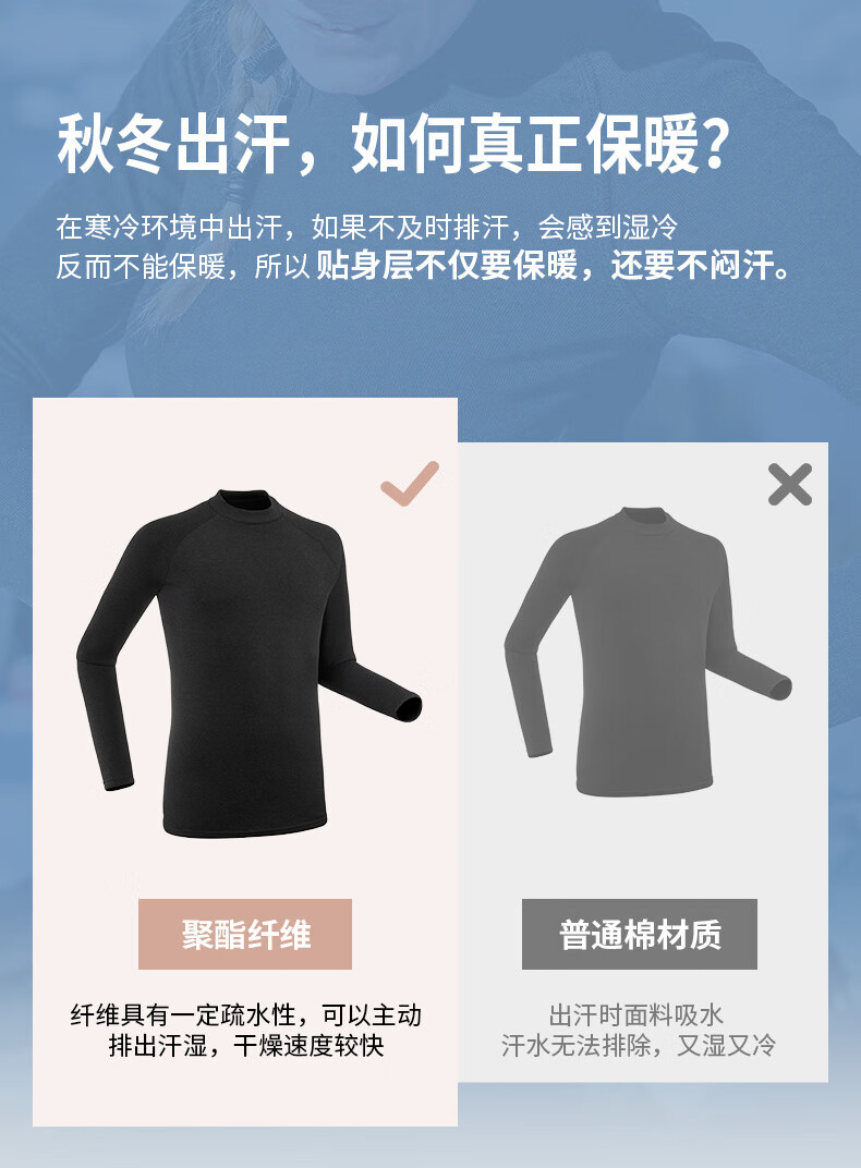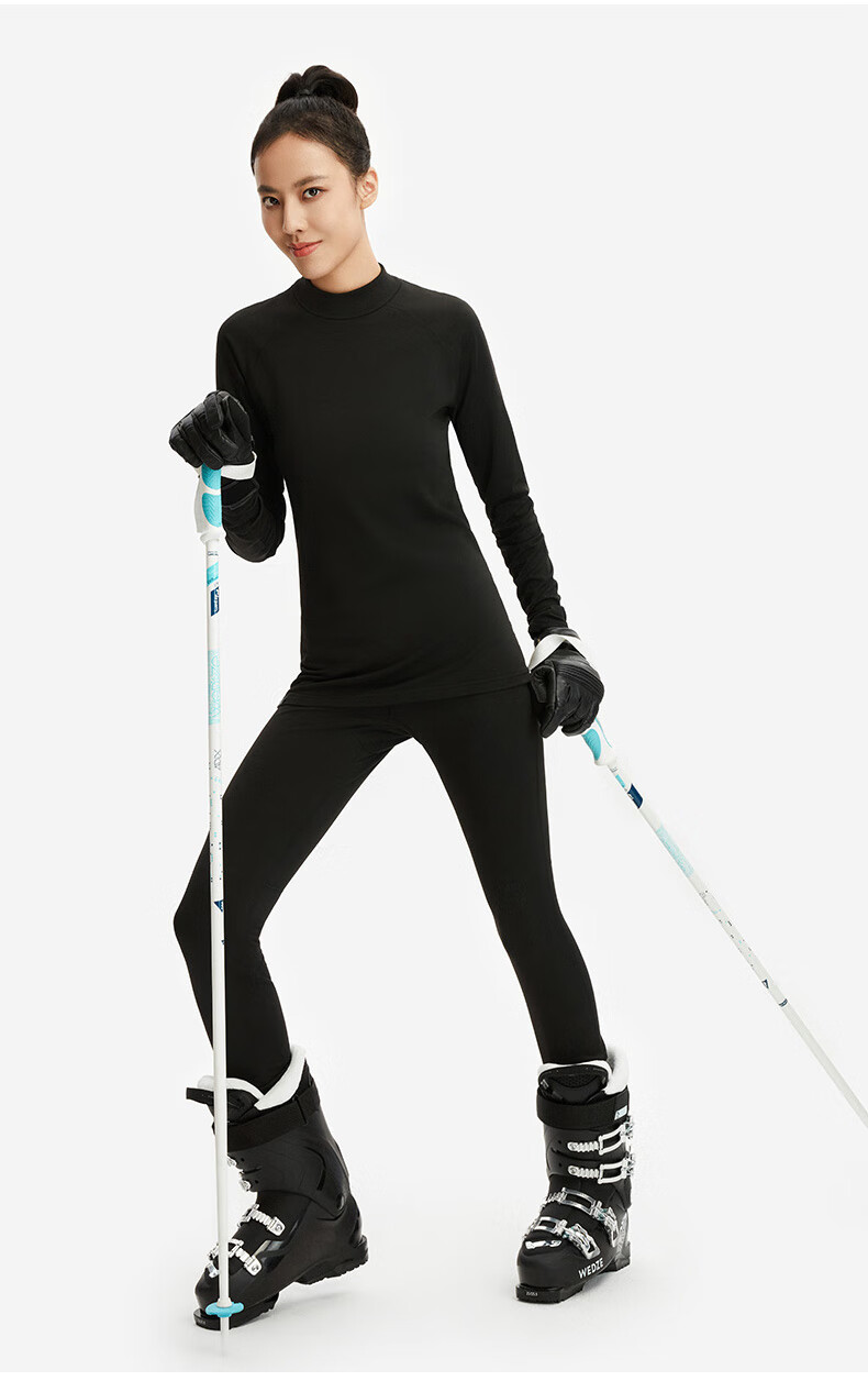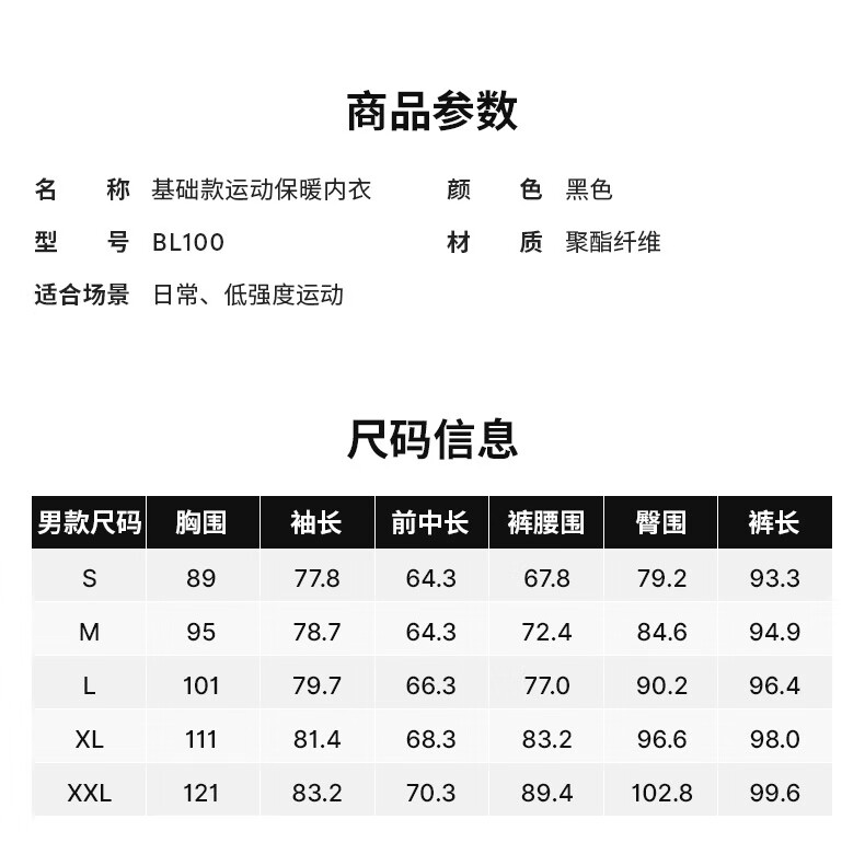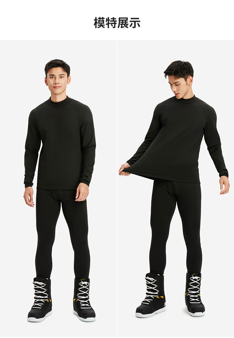 Decathlon (DECATHLON) Thermal Underwear for Men and Women Autumn Clothes and Autumn Pants Quick-drying Coldproof Ski Tops and Pants Set-BL 100 SKI100 Men's Black Bottoms (Tight-fitting) XL