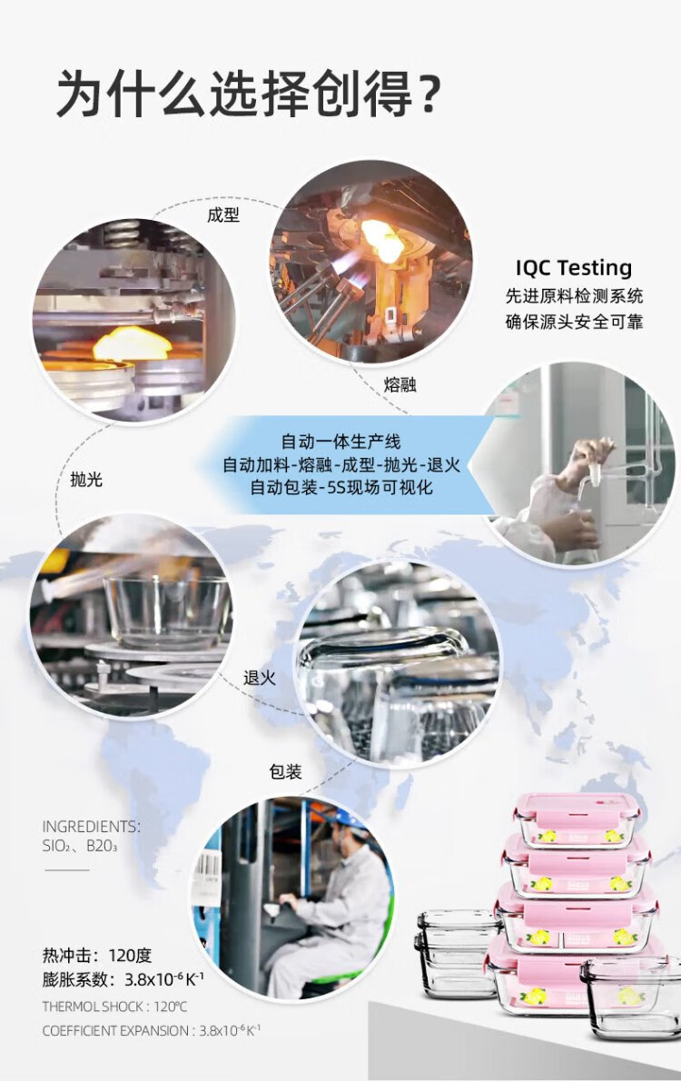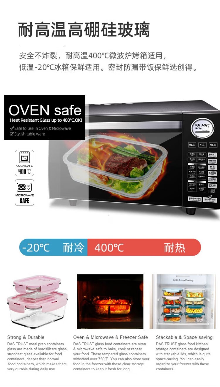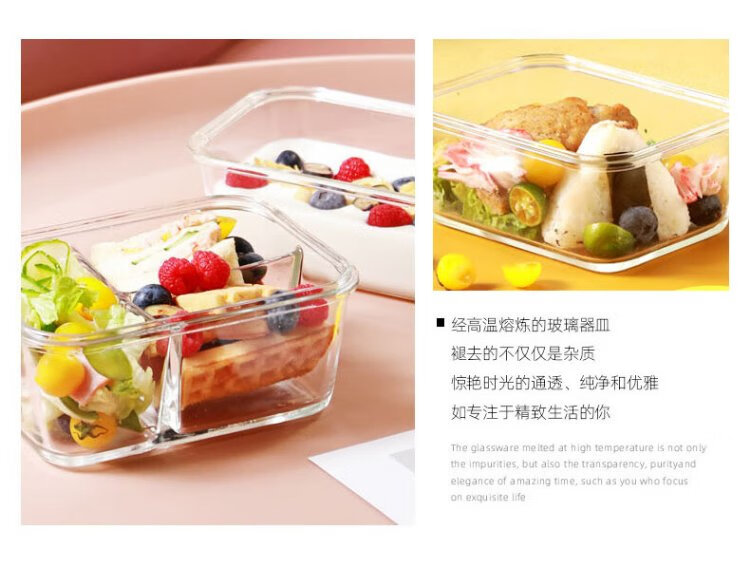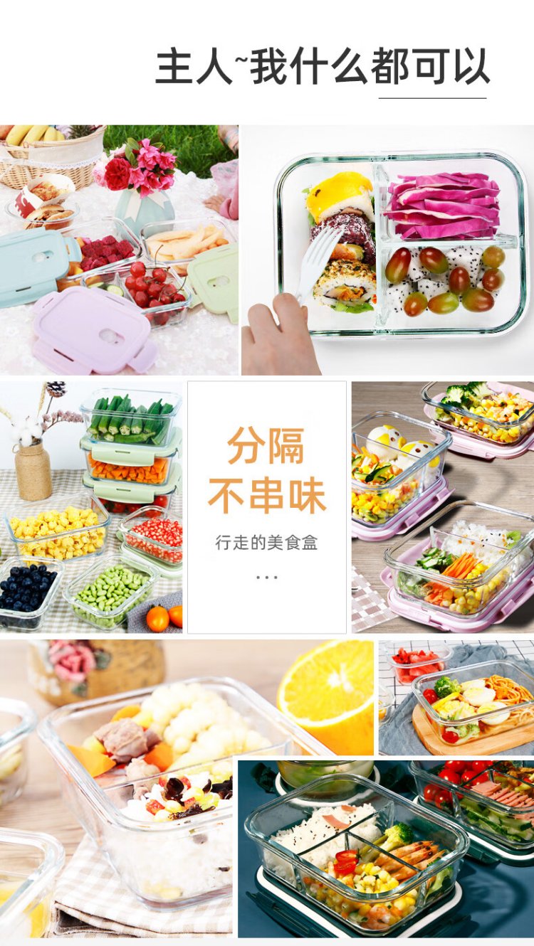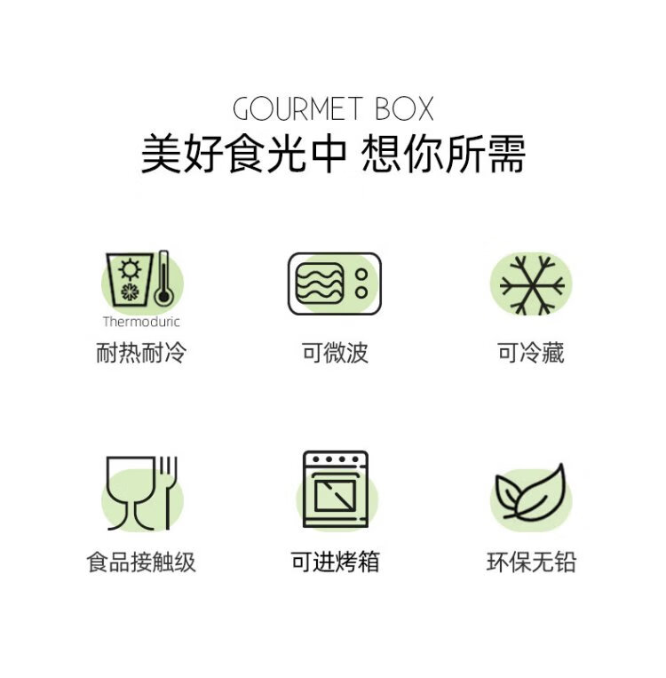 创得 耐热玻璃保鲜盒 微波炉饭盒上班族学生带饭密封碗分隔便当盒 北欧绿圆420+三隔1050ml+包+餐具
