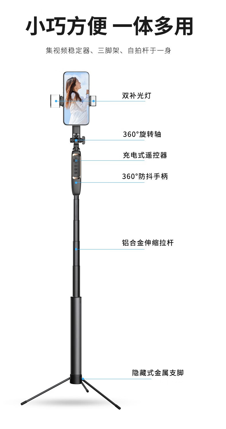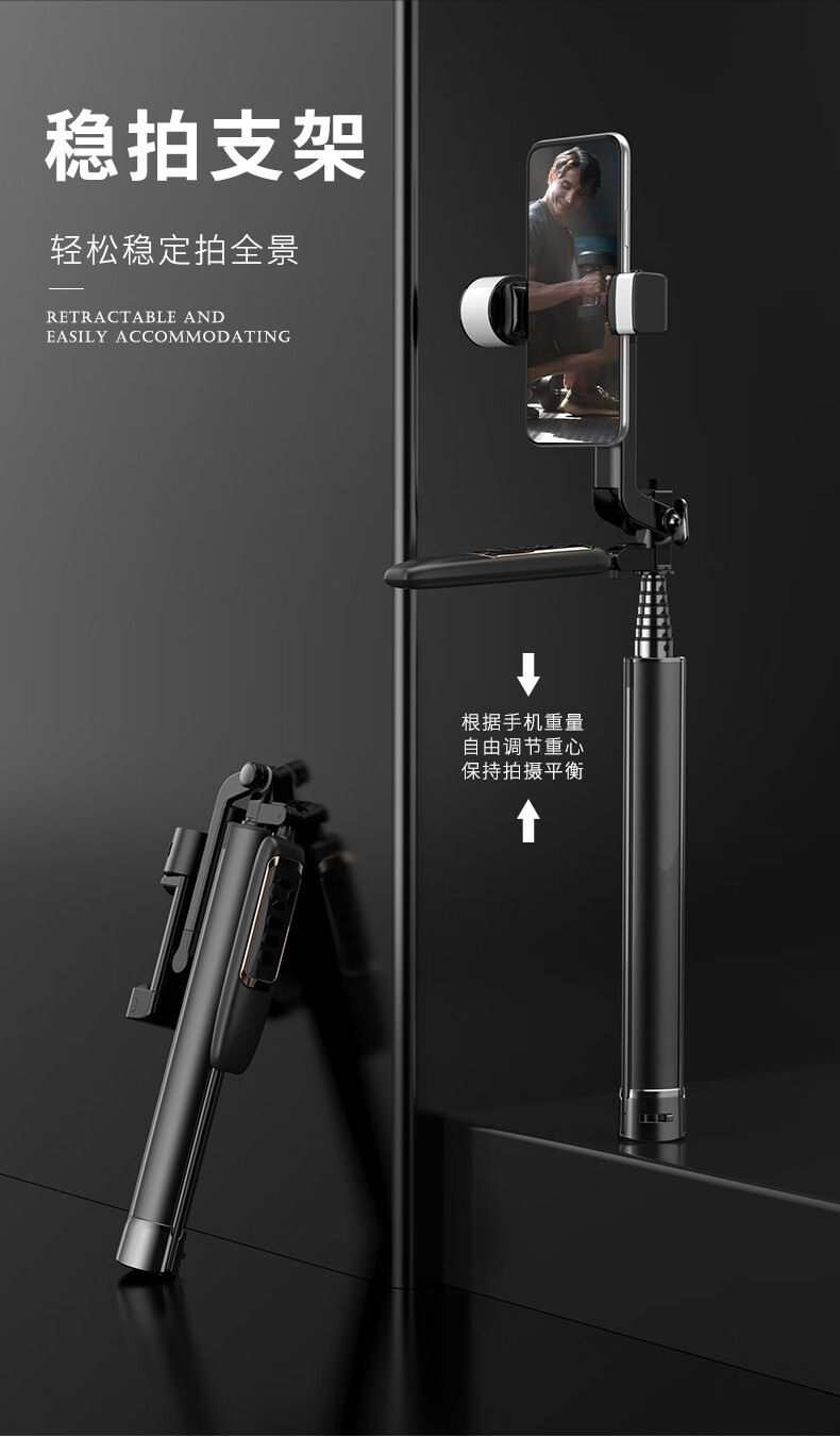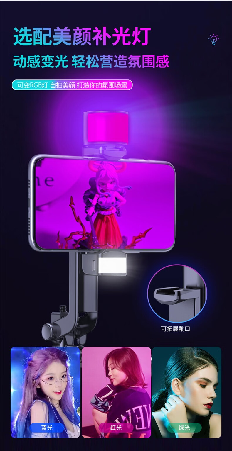 Produits empilés Produits empilés A21P 2025 nouveau téléphone portable anti-secousse selfie stick trépied de diffusion en direct multi-fonctionnel beauté universelle télécommande Bluetooth stabilisateur de poche universel TikTok rotation 360 mise à niveau RVB double lumière de remplissage
