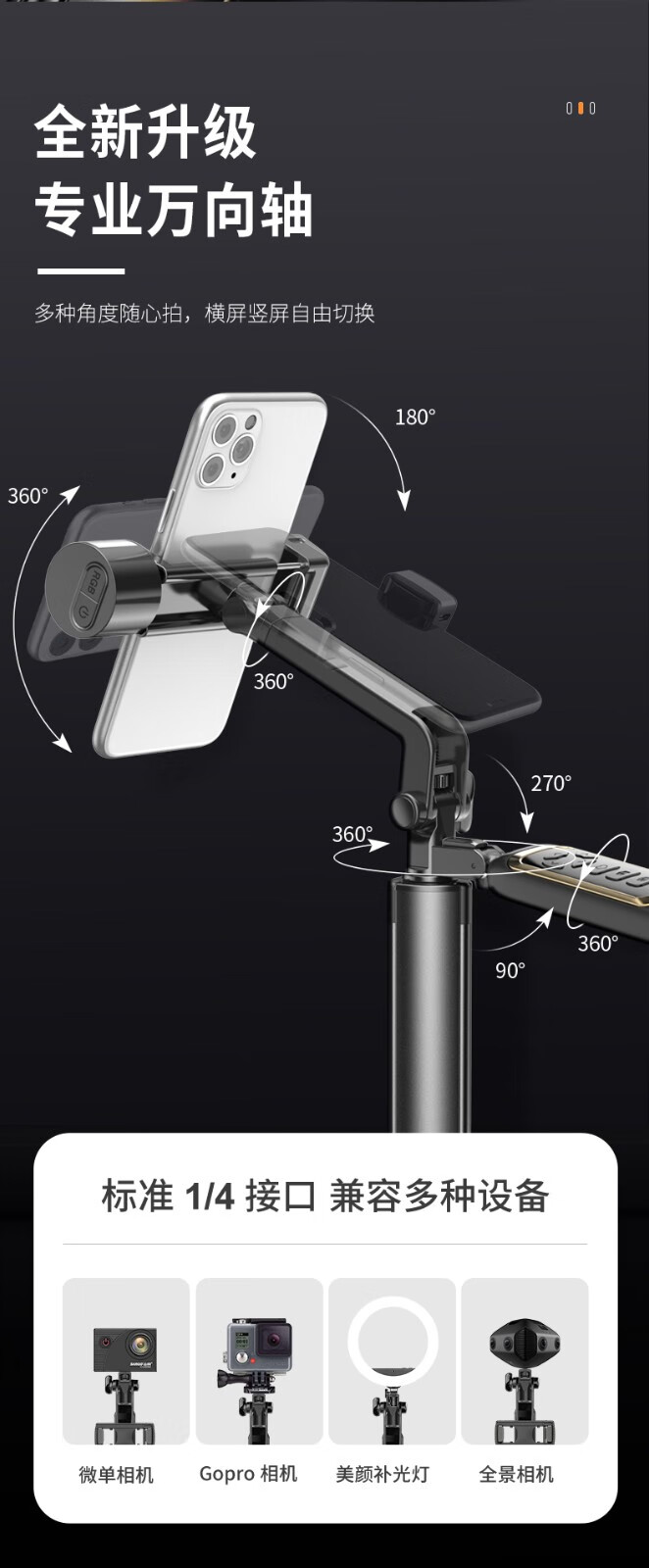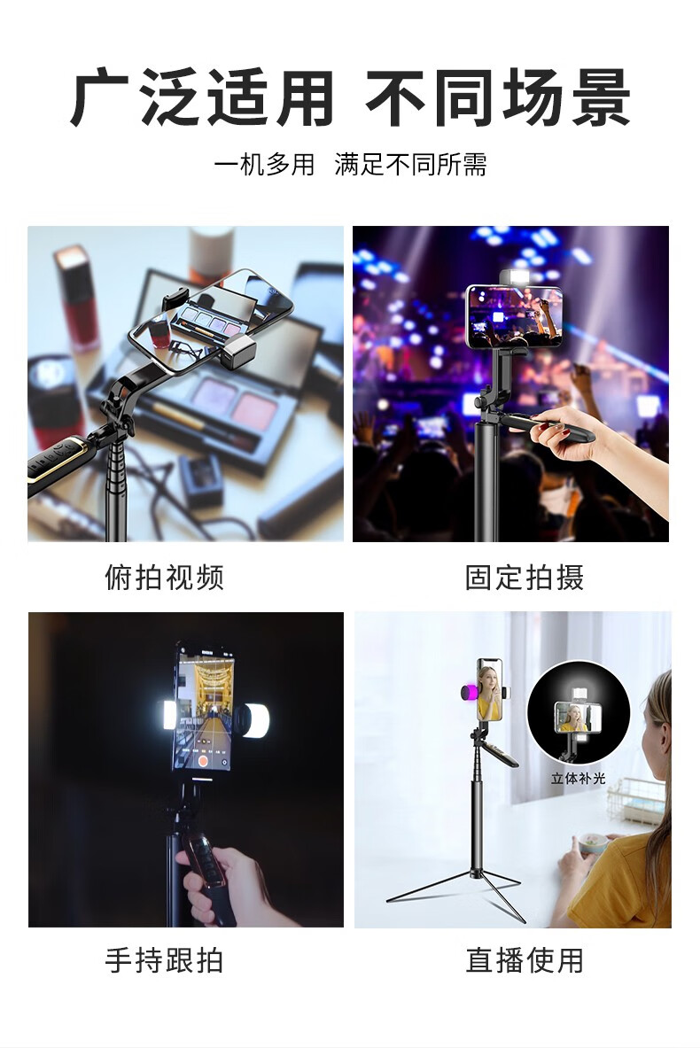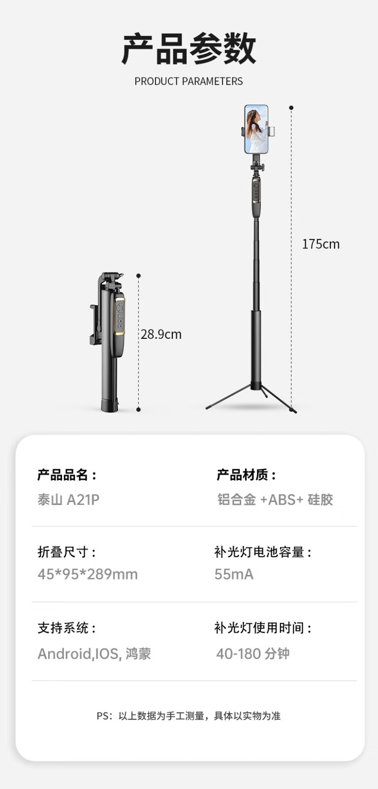 Produits empilés Produits empilés A21P 2025 nouveau téléphone portable anti-secousse selfie stick trépied de diffusion en direct multi-fonctionnel beauté universelle télécommande Bluetooth stabilisateur de poche universel TikTok rotation 360 mise à niveau RVB double lumière de remplissage