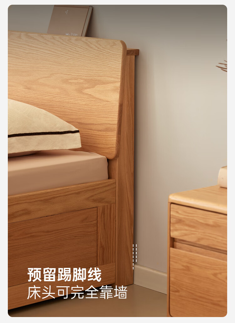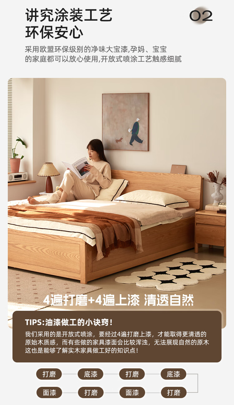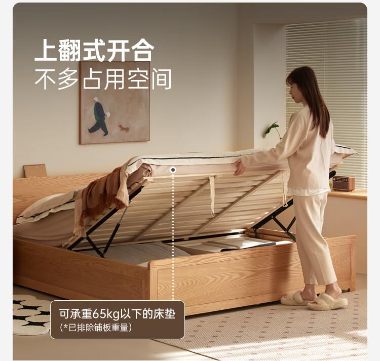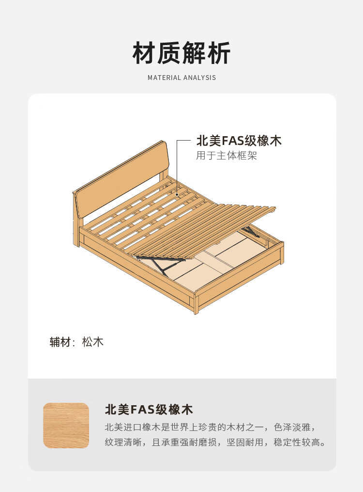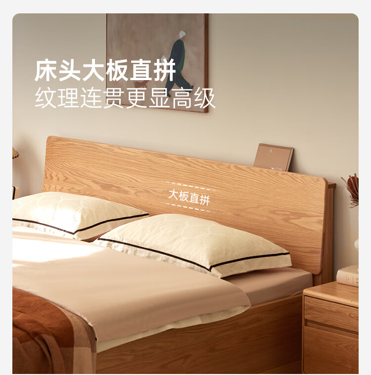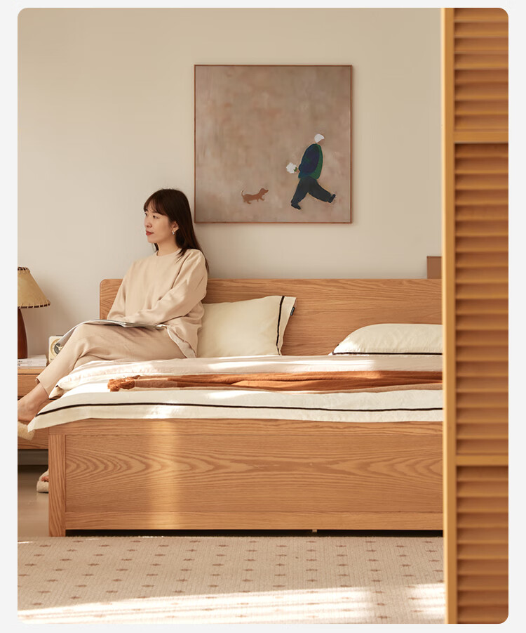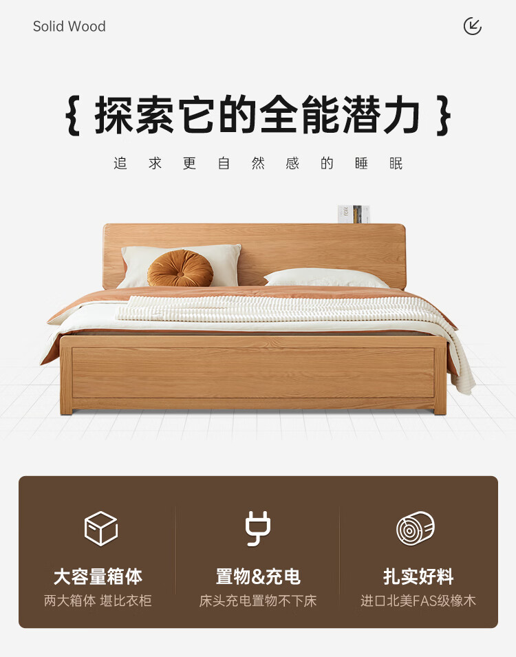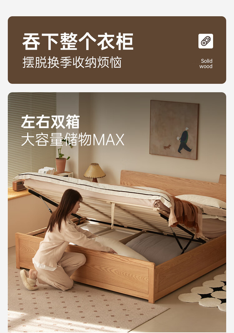 Élément original lit tout en bois massif lit boîte de rangement moderne simple lit double chambre principale grand lit petit appartement cadre de lit L701F couleur chêne-bûche 1,5*2,0 m lit boîte