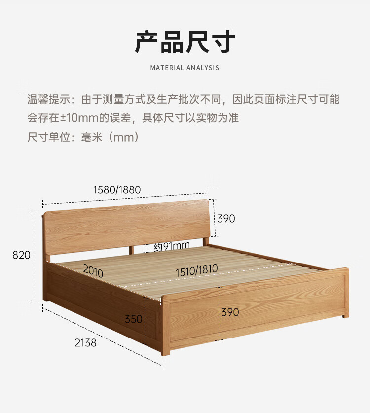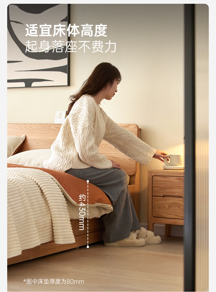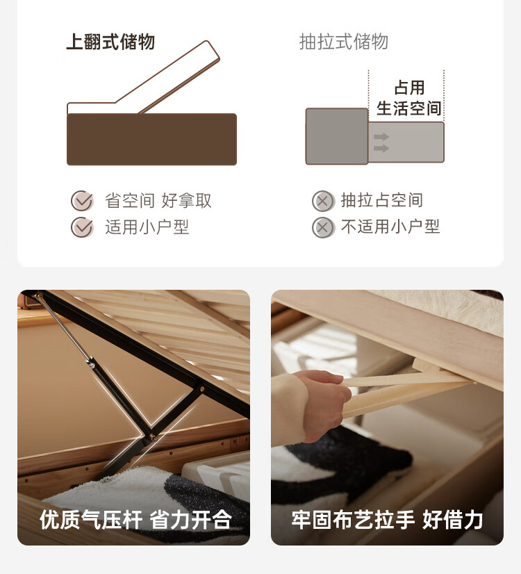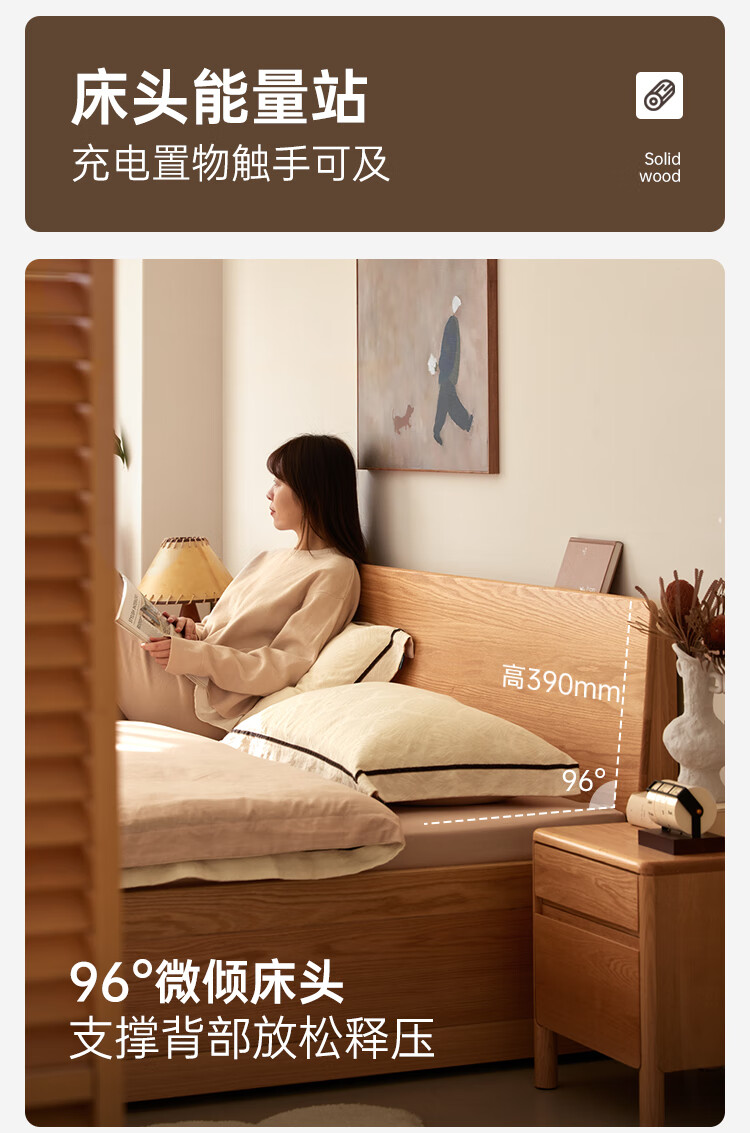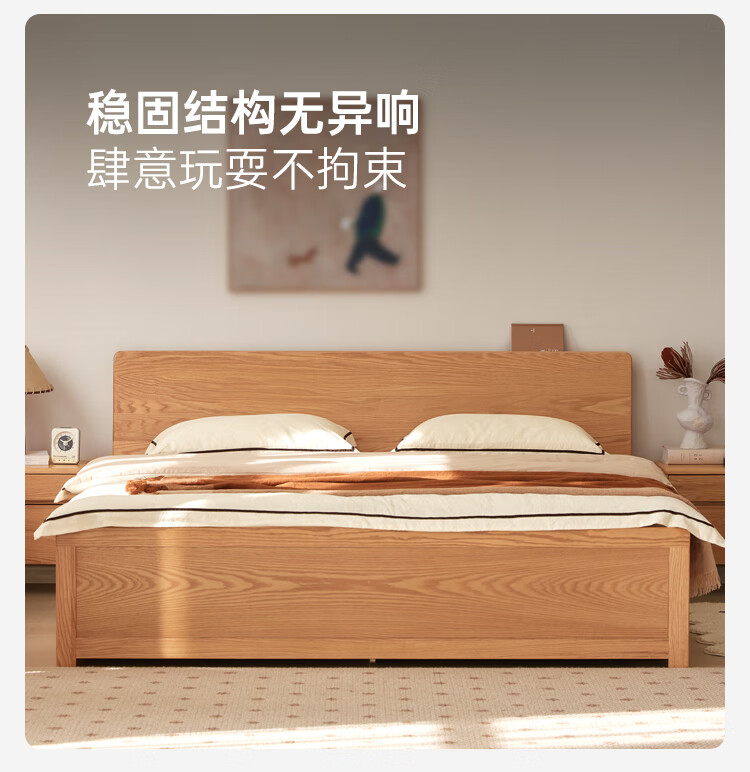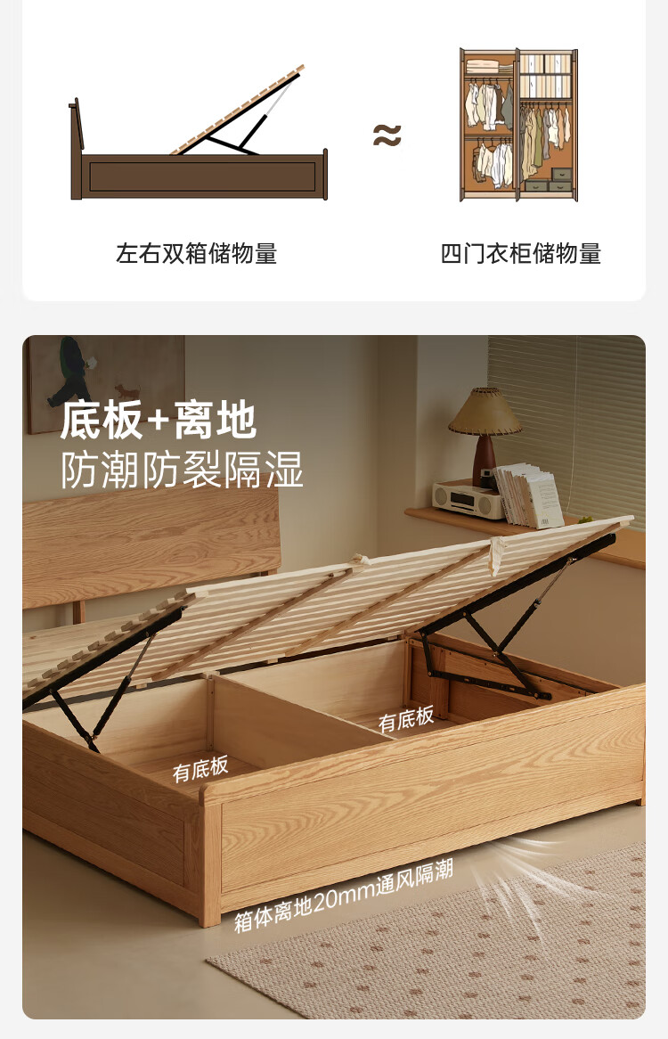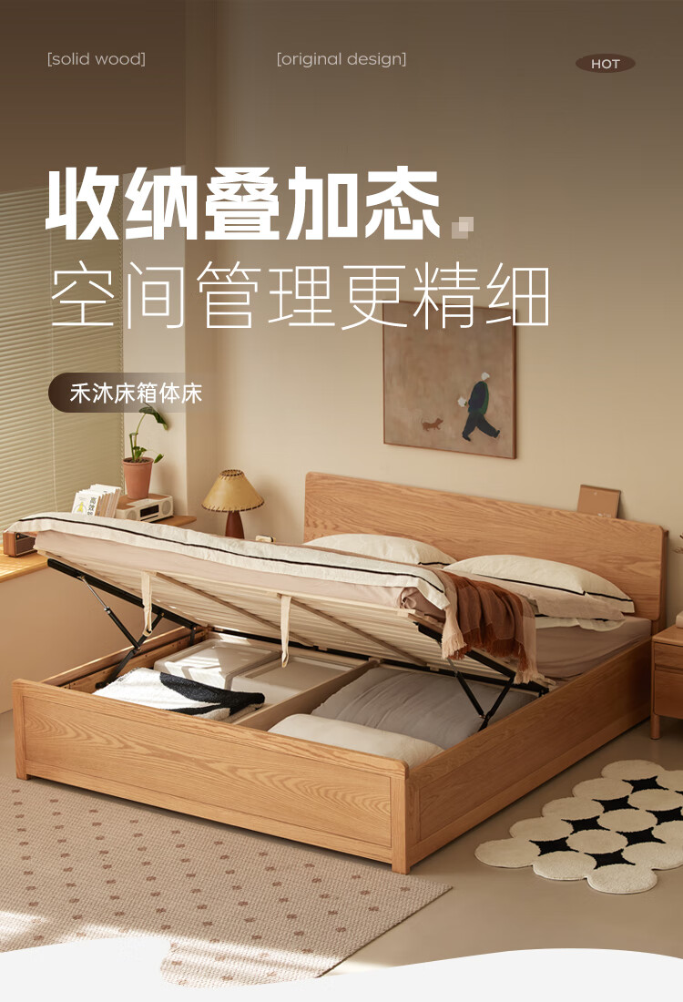 Élément original lit tout en bois massif lit boîte de rangement moderne simple lit double chambre principale grand lit petit appartement cadre de lit L701F couleur chêne-bûche 1,5*2,0 m lit boîte