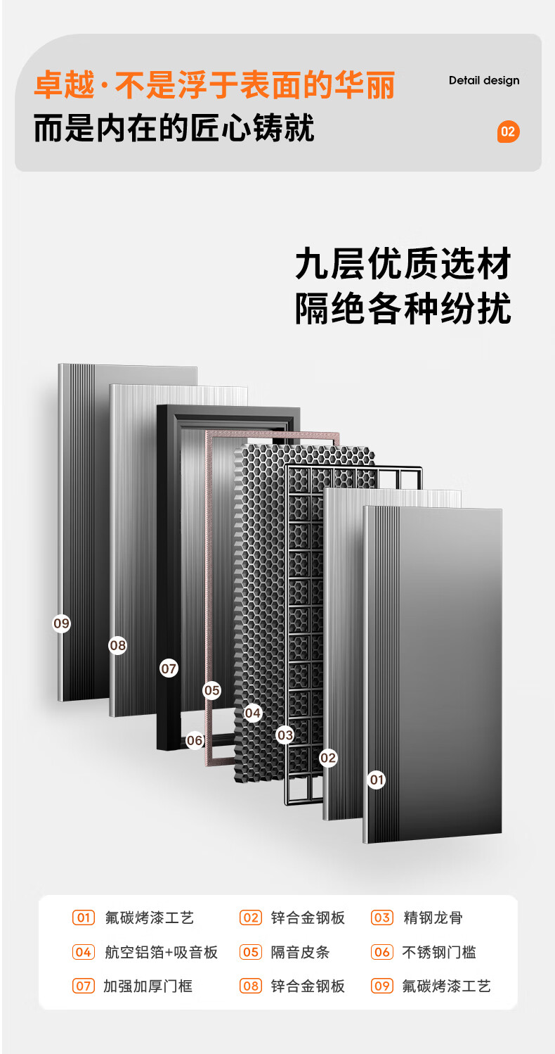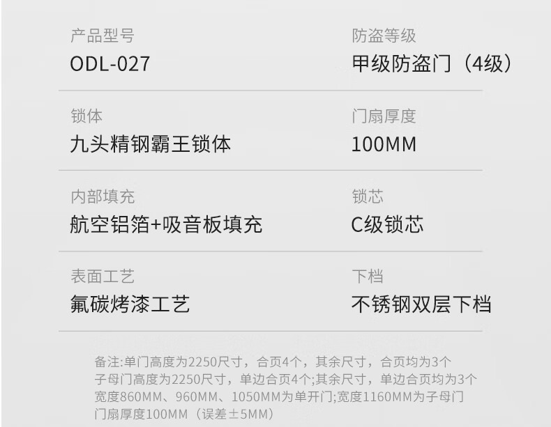 欧帝乐(OUDILE)加厚锌合金防盗4级门+入户航空铝箔门填充+智能门指纹锁子母门 科技云锁 2150*1050/2250*960