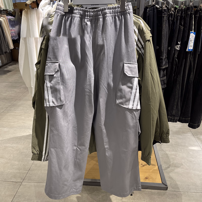 阿迪达斯(adidas)女裤工装裤2025秋冬季新款宽松舒适休闲运动伞裤直筒长裤轻运动裤 HC9715/炭黑色  XL