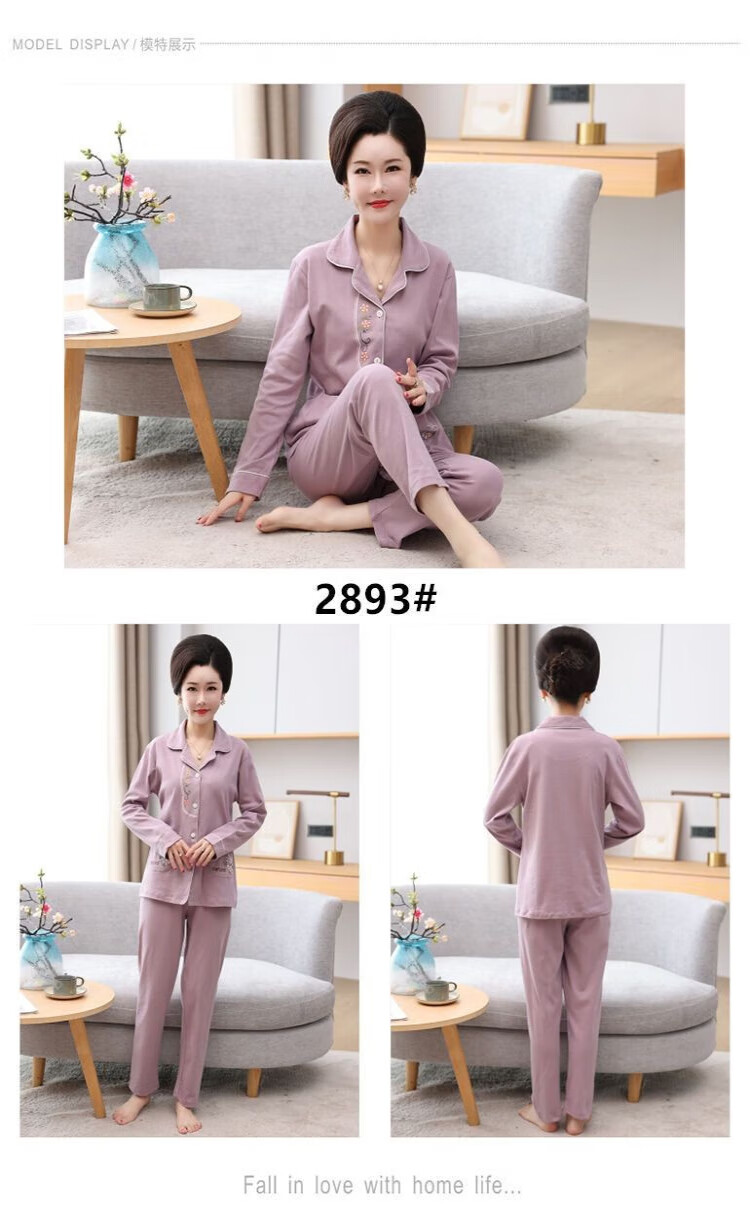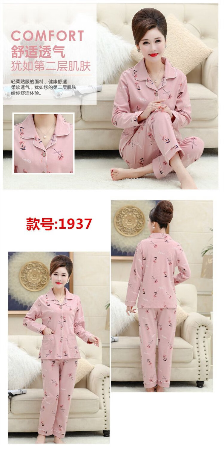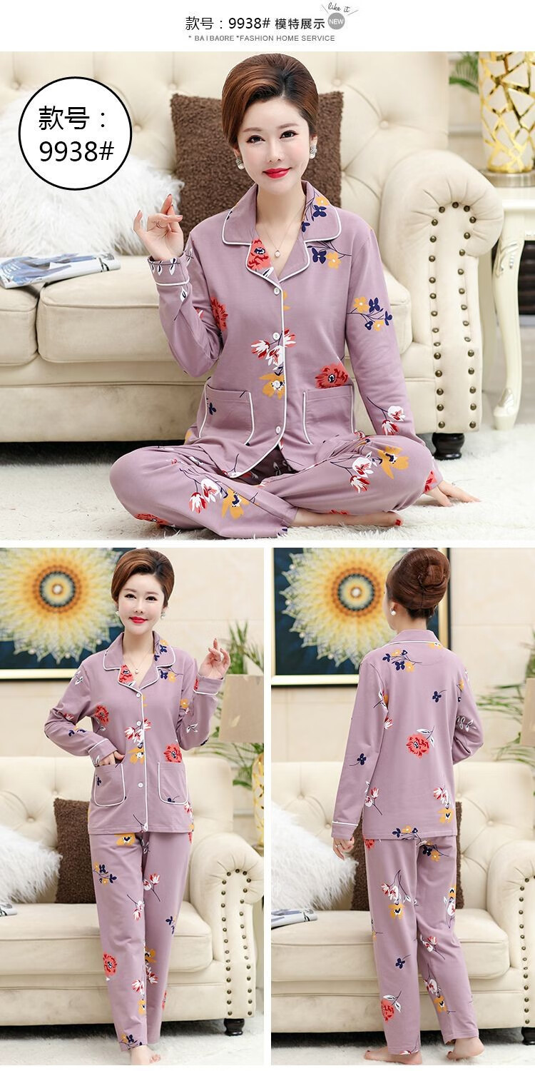 Modal pijamas de mujer para madres de mediana edad y ancianas de algodón de manga larga para primavera y otoño cárdigan fino conjunto de ropa para el hogar de gran tamaño 9928JS M recomendado 80-95Jin Jin equivale a 0,5 kg