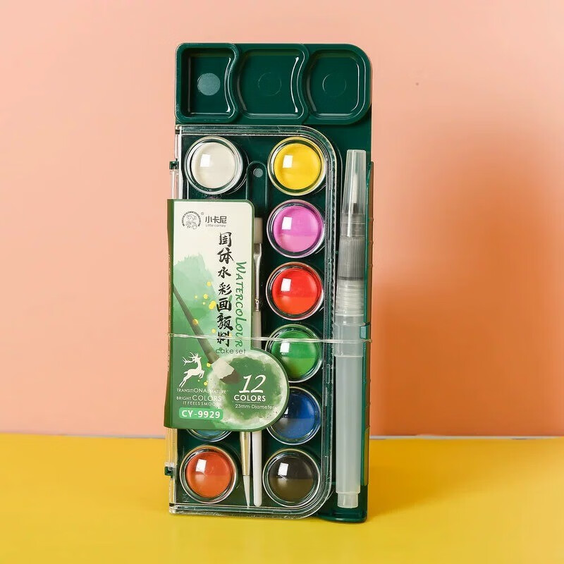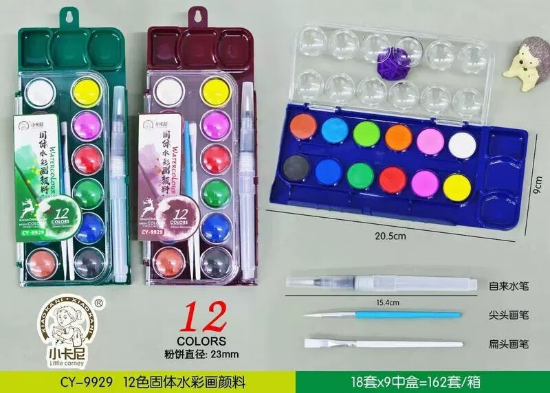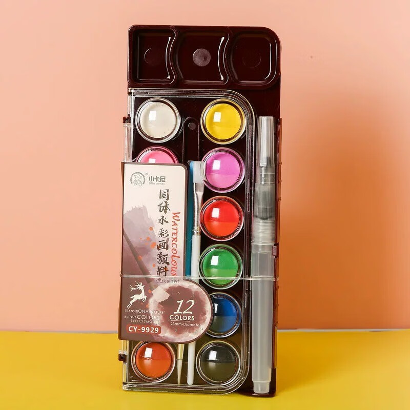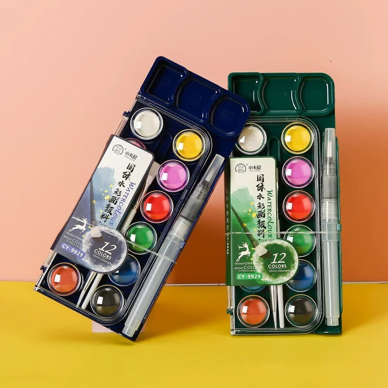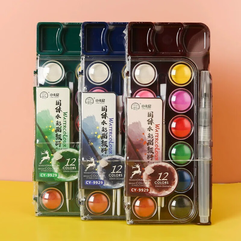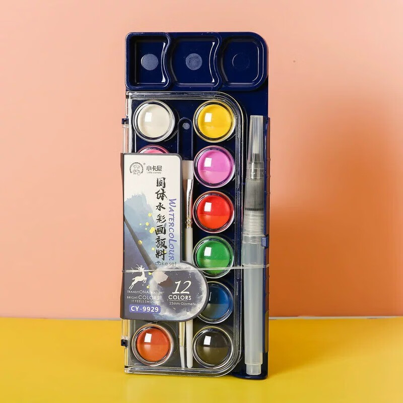 Little Carney ensemble de peinture aquarelle à pigments solides peinture à l'aquarelle art peinture à la gouache solide étudiants débutants 9929-12 couleurs (une boîte)