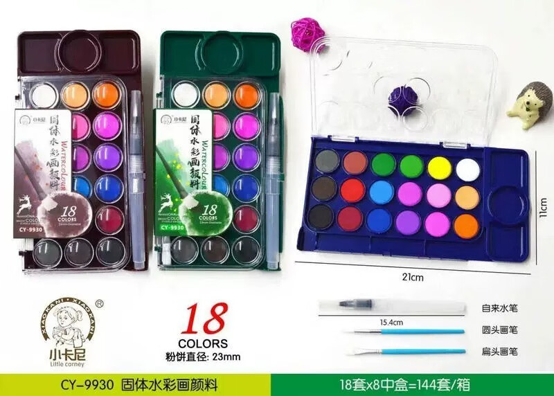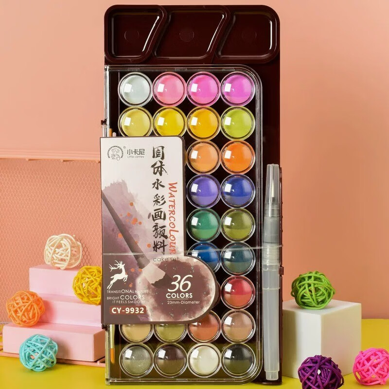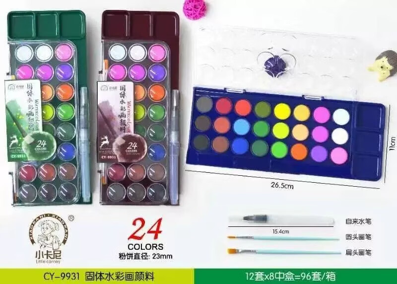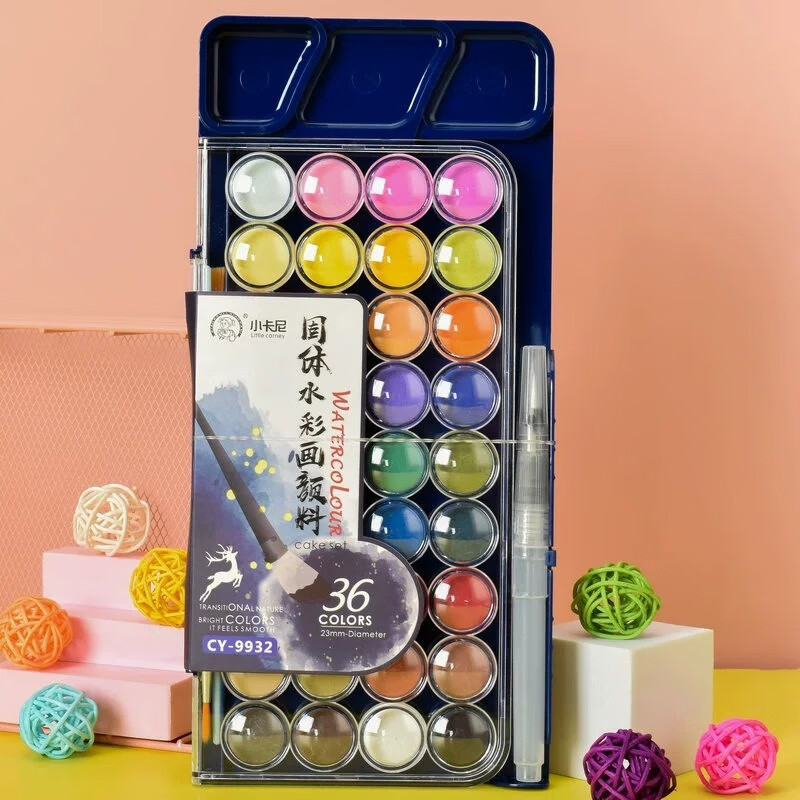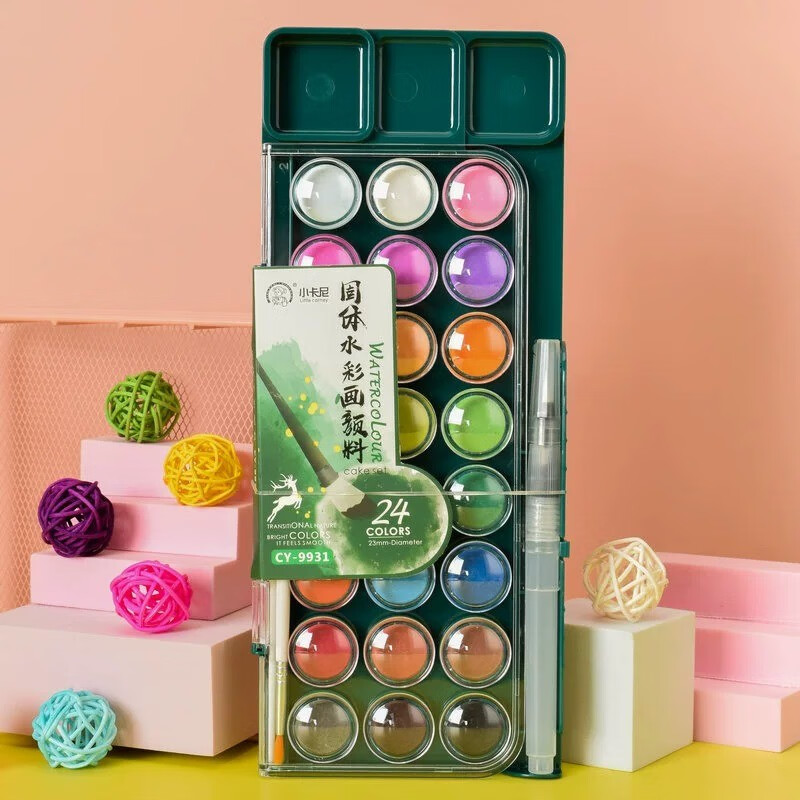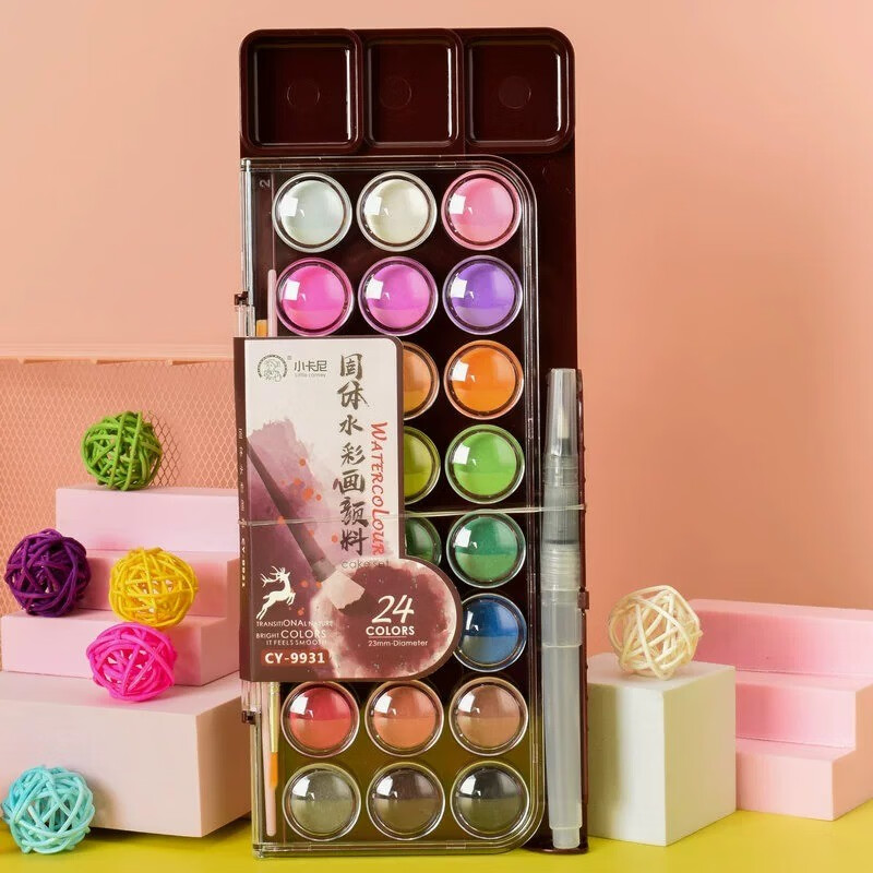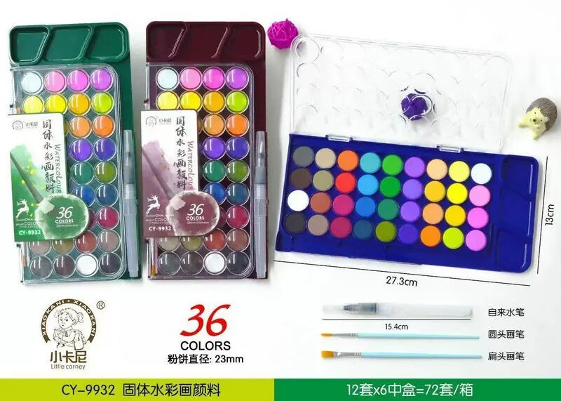 Little Carney ensemble de peinture aquarelle à pigments solides peinture à l'aquarelle art peinture à la gouache solide étudiants débutants 9929-12 couleurs (une boîte)