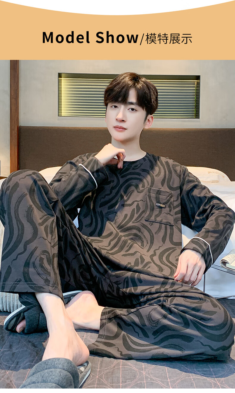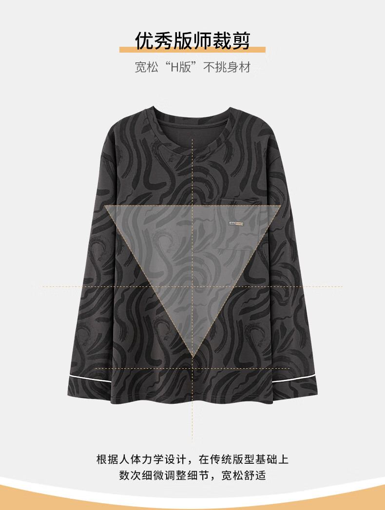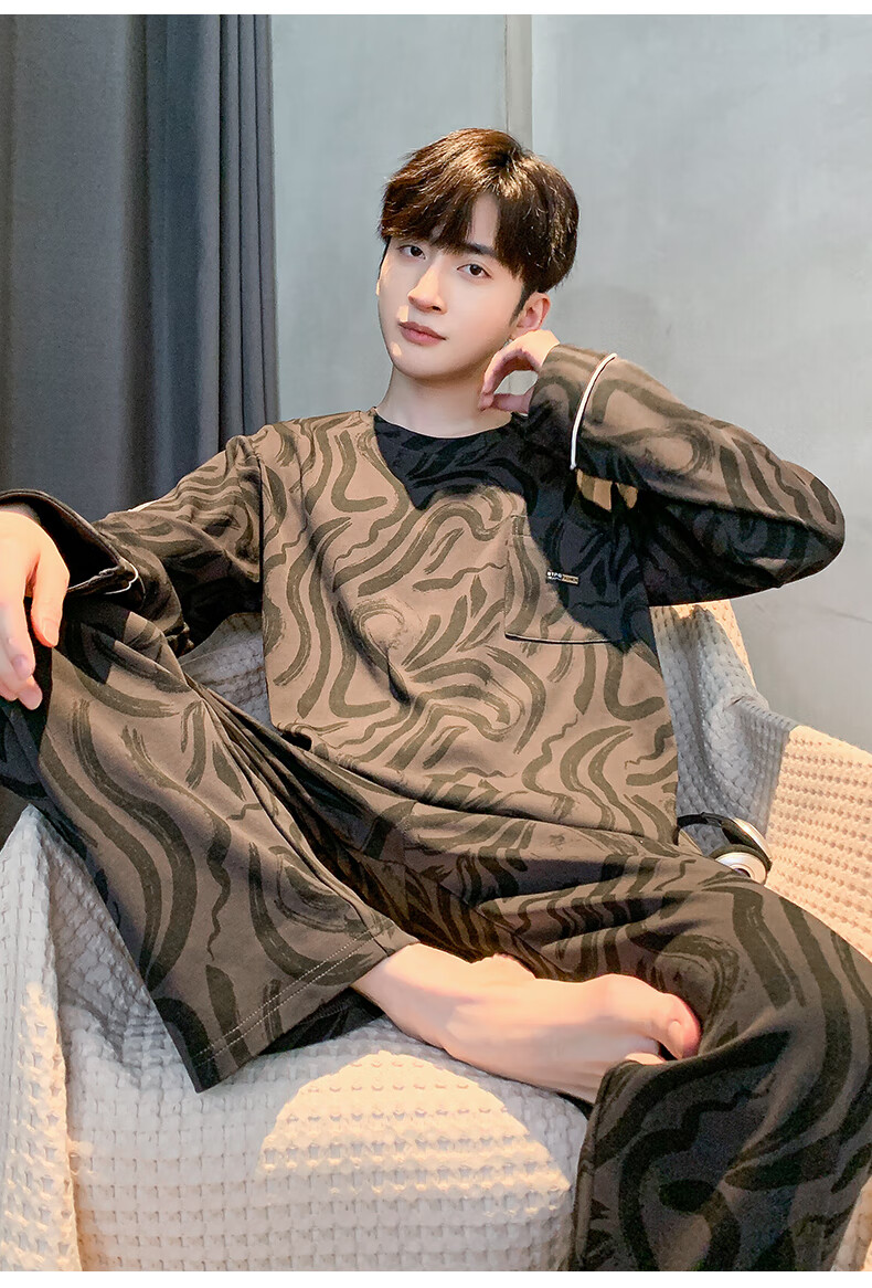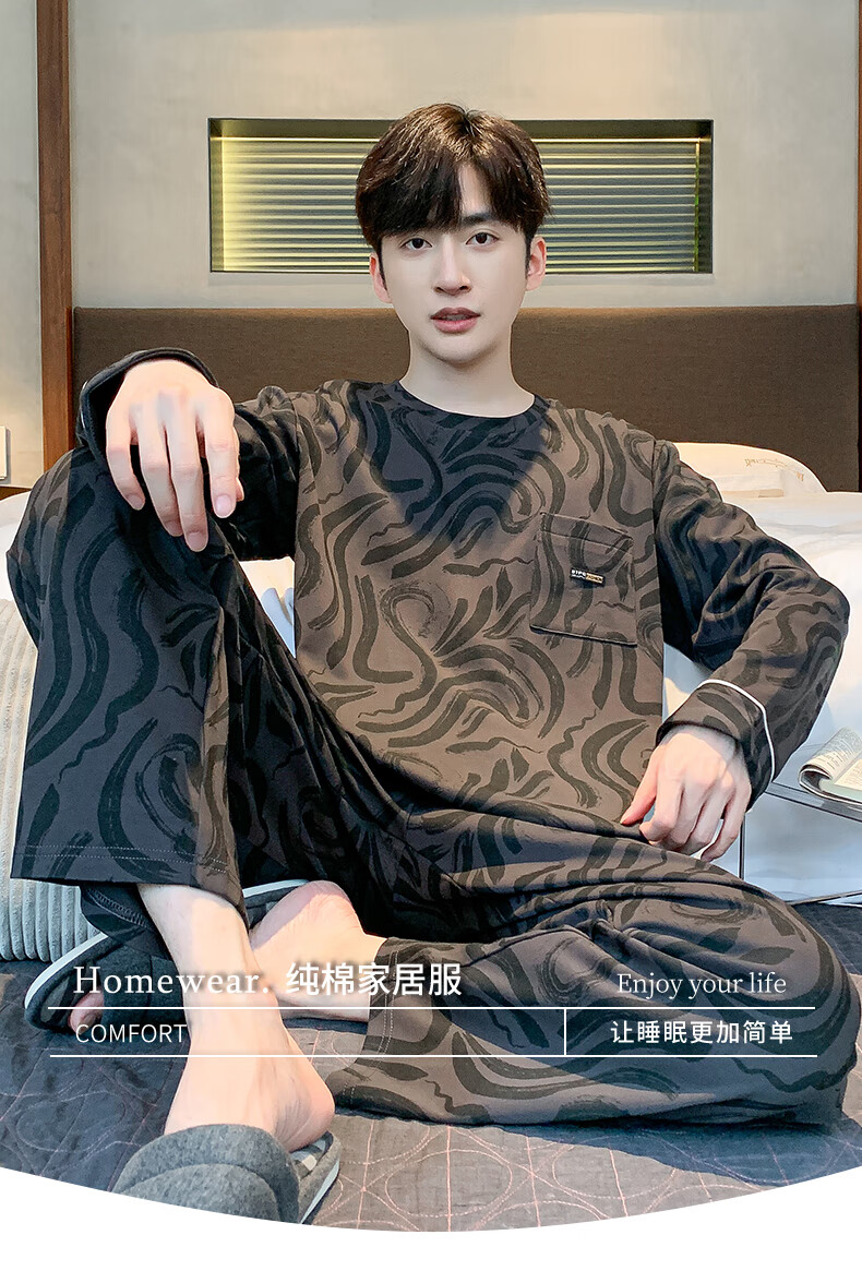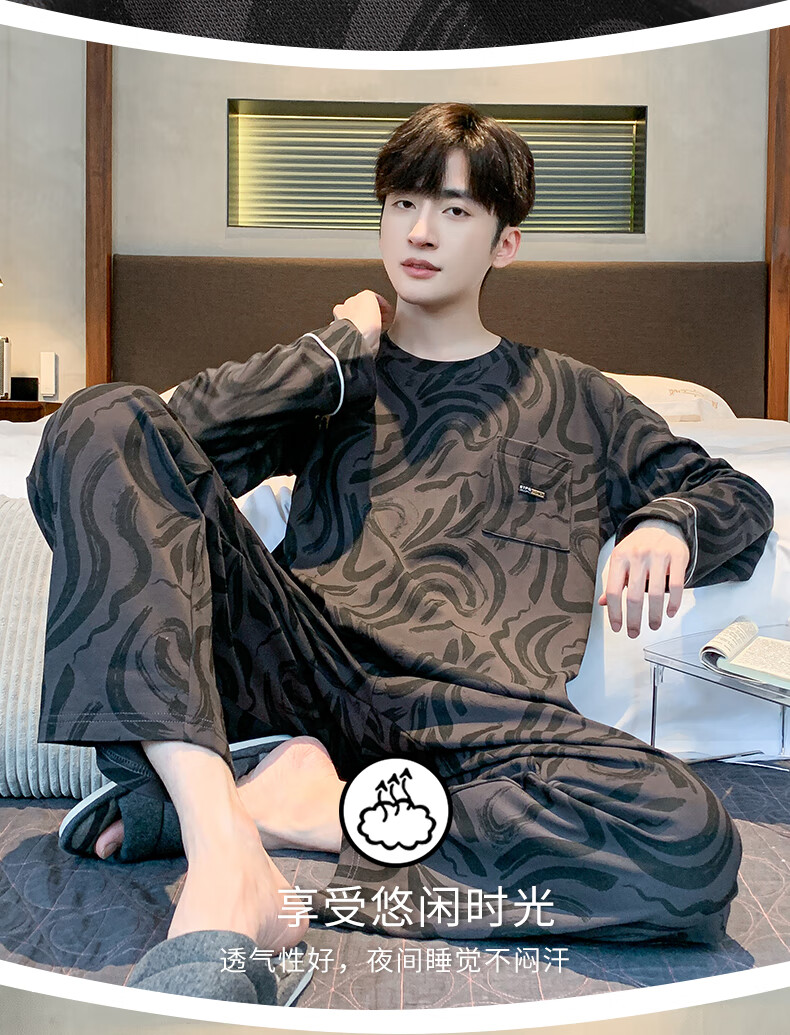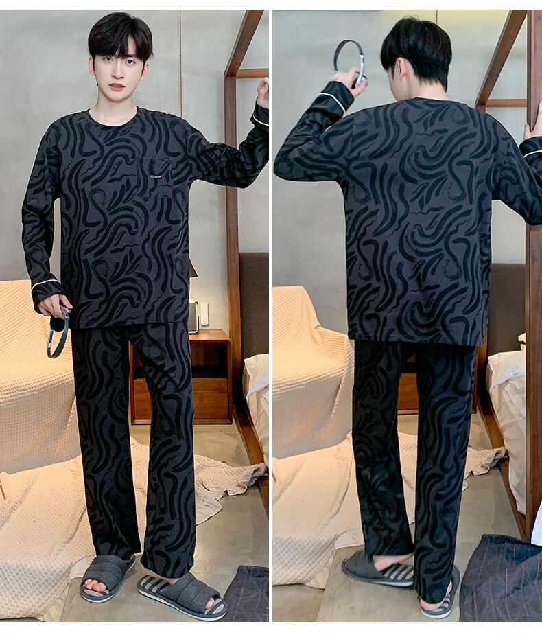 三枪睡衣男春秋季纯棉长袖全棉时尚圆领家居服套装男士秋季宽松可外穿 9913 L 男(建议120-140斤)