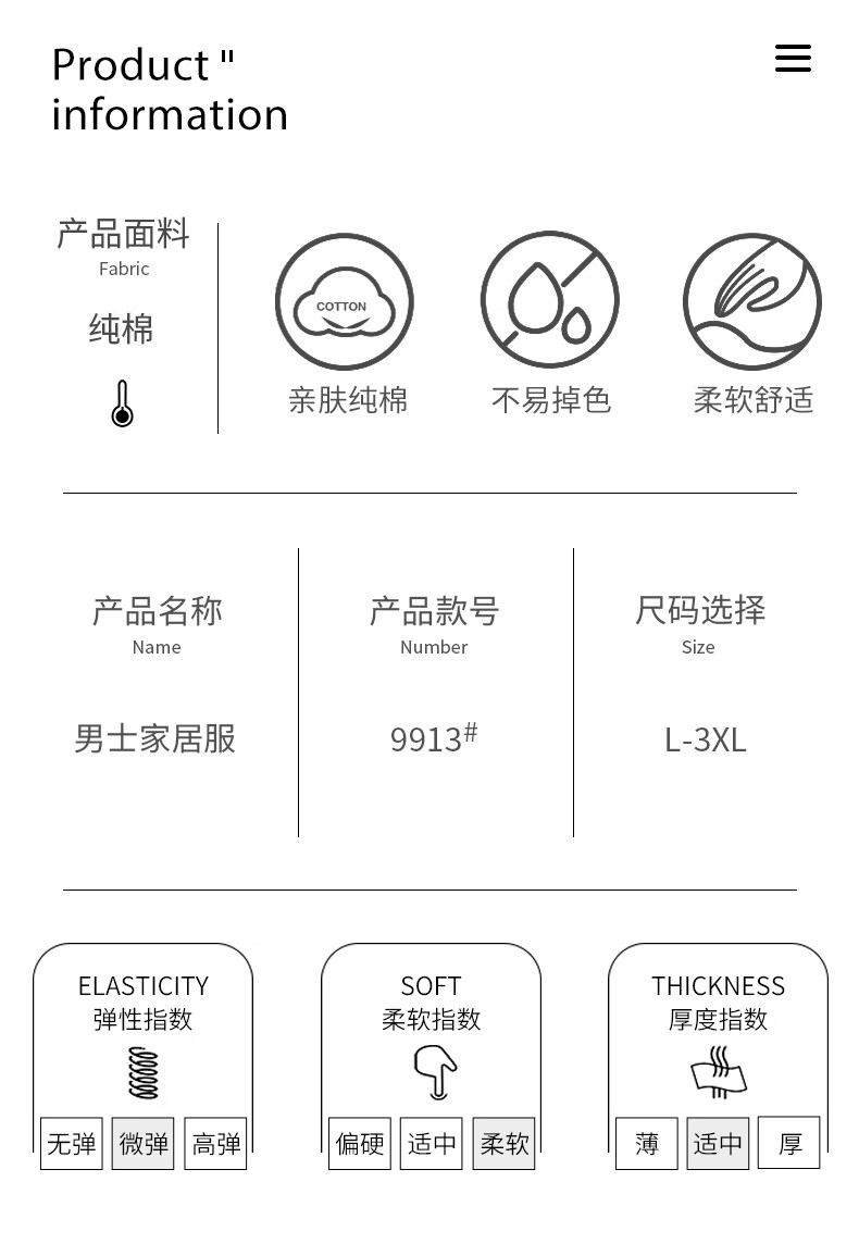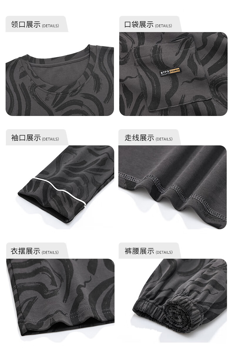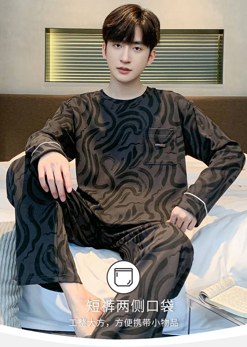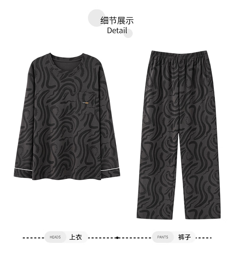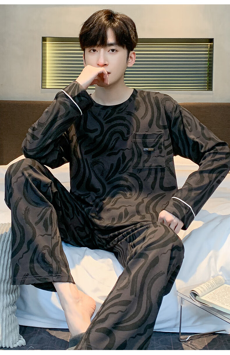 三枪睡衣男春秋季纯棉长袖全棉时尚圆领家居服套装男士秋季宽松可外穿 9913 L 男(建议120-140斤)