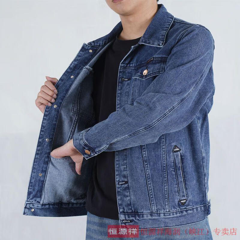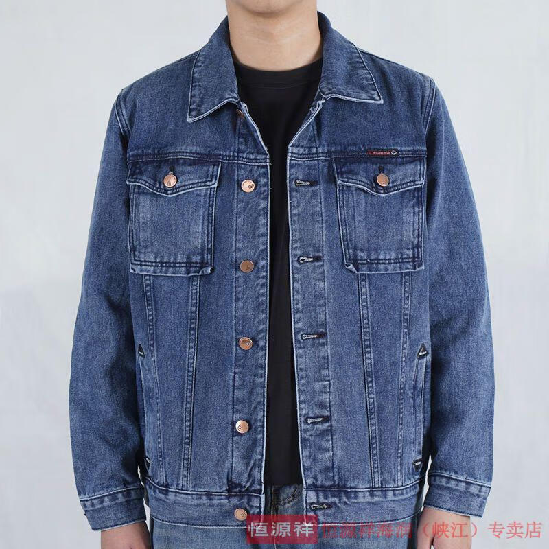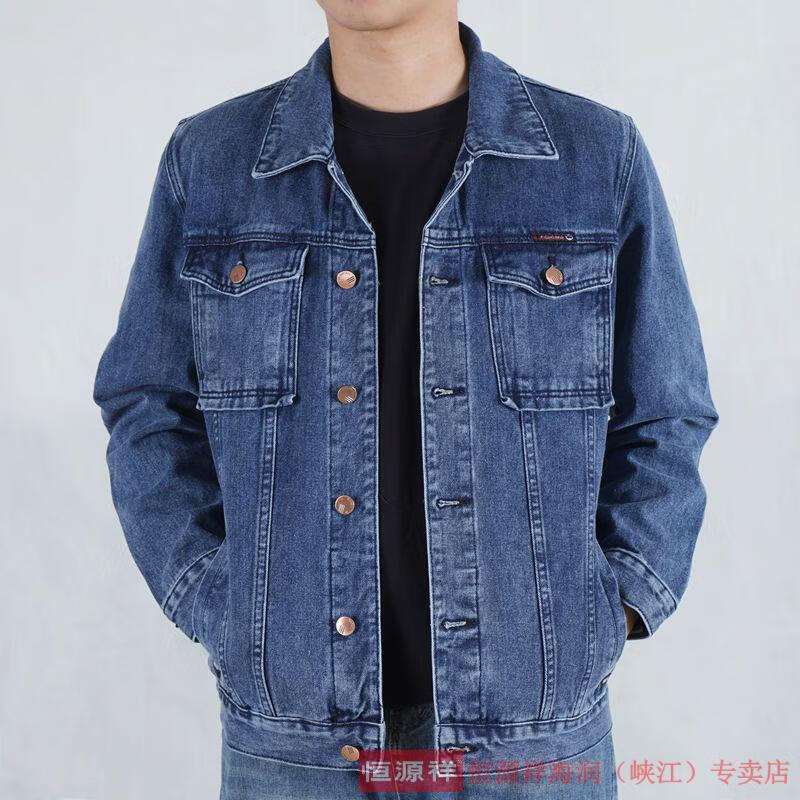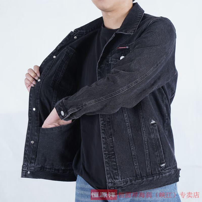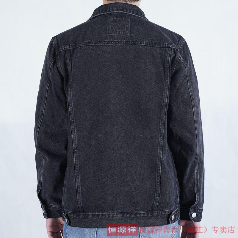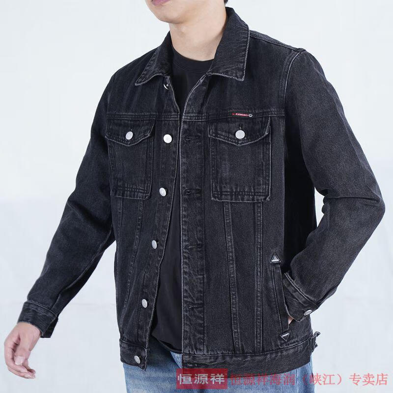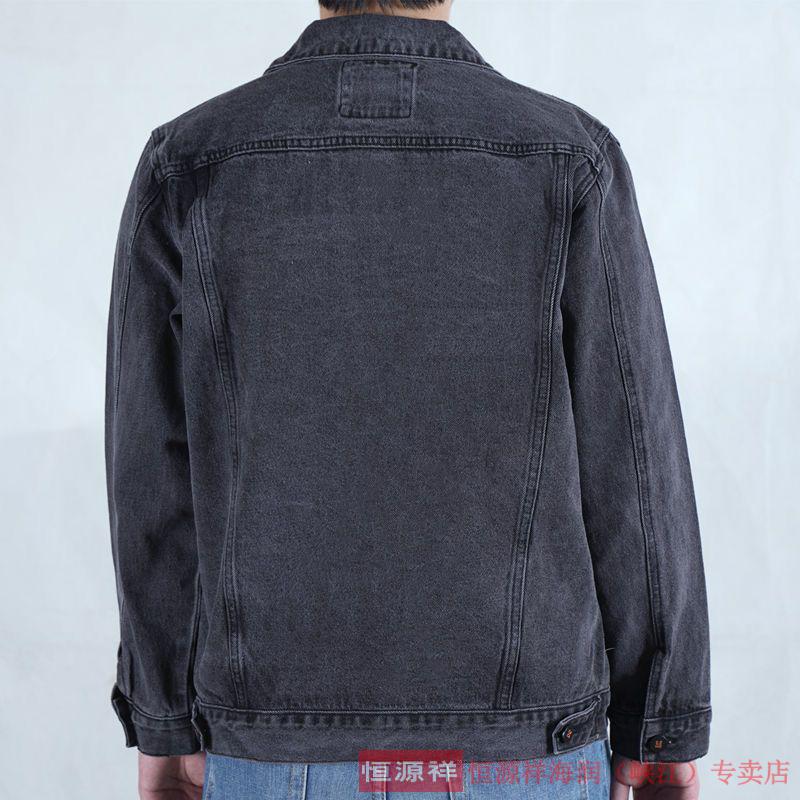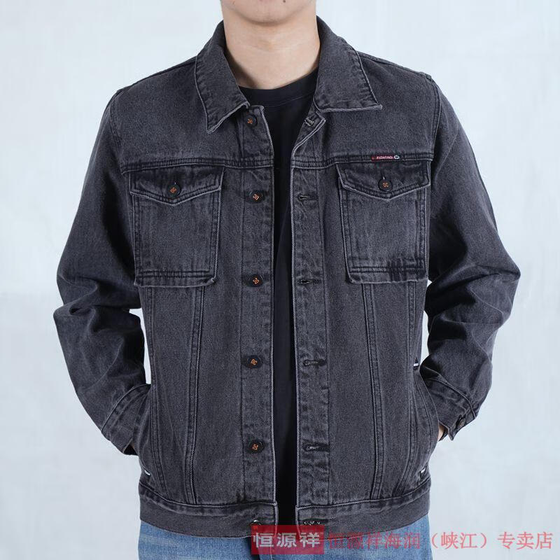 恒源祥烟灰色牛仔外套男纯棉水洗复古男士工装夹克秋冬新款翻领耐磨上衣 T847灰色 XL