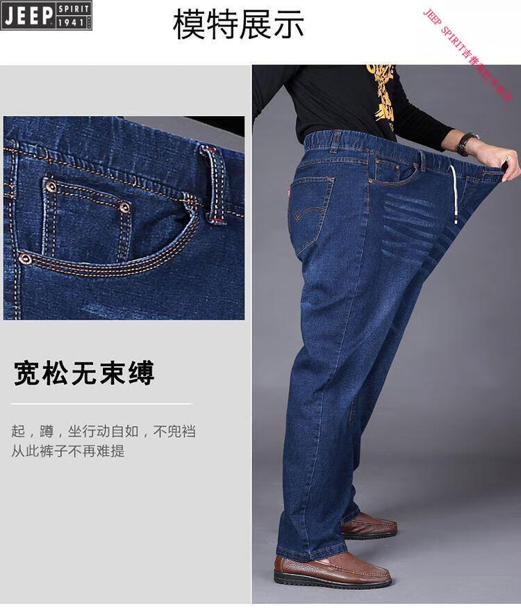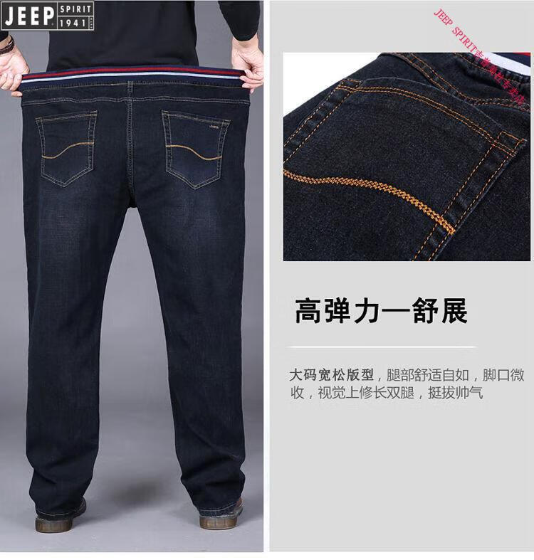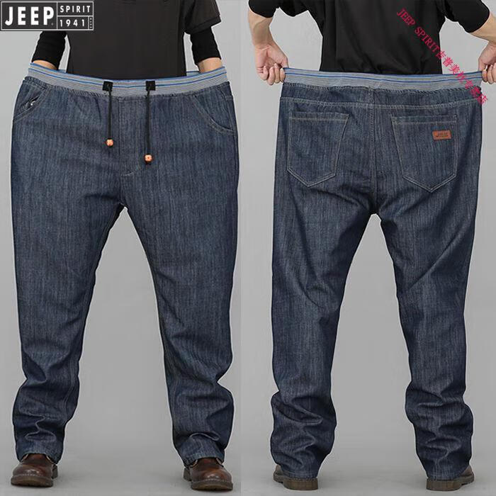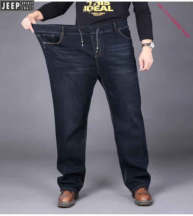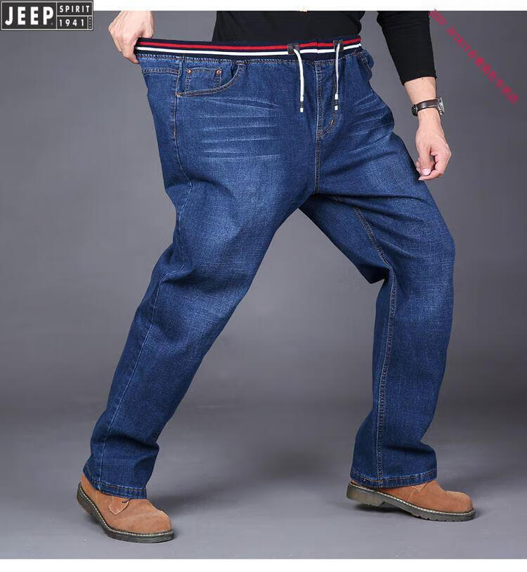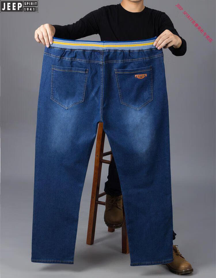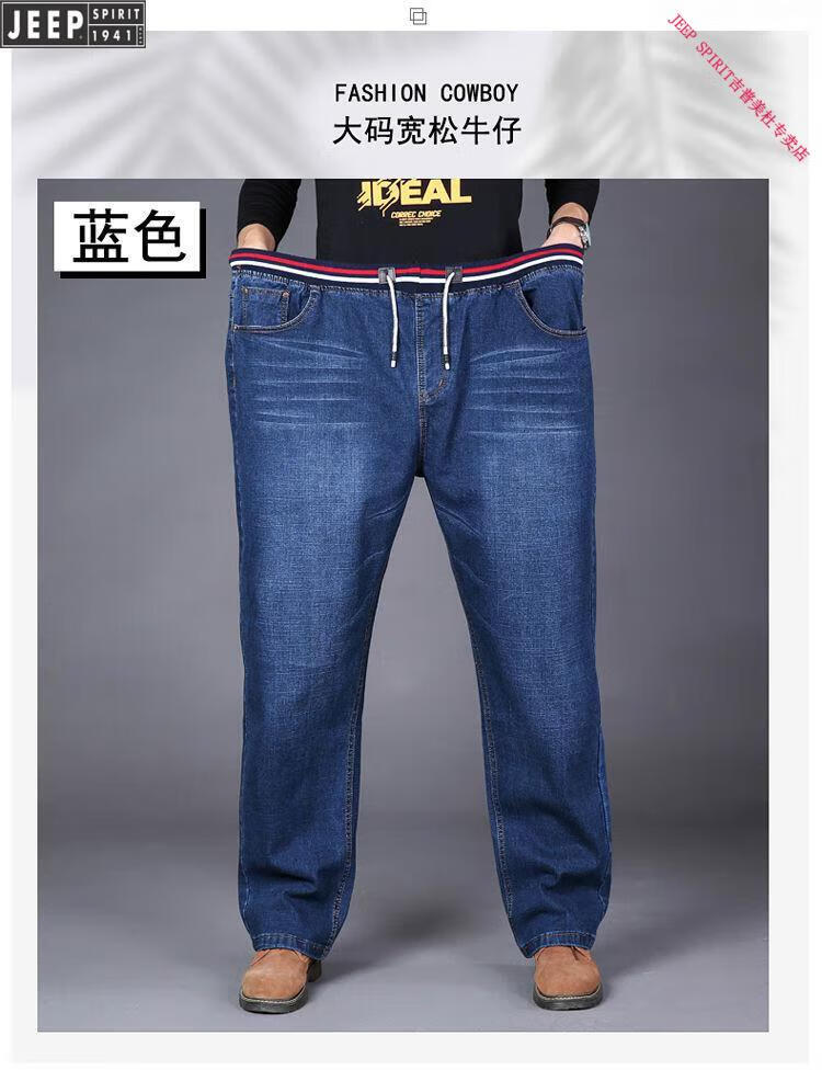JEEP松紧腰加肥加大码牛仔裤男士宽松直筒高腰弹力胖子阔腿裤子男 1098款蓝色【松紧腰】 44码【腰围3尺4】建议240斤左右