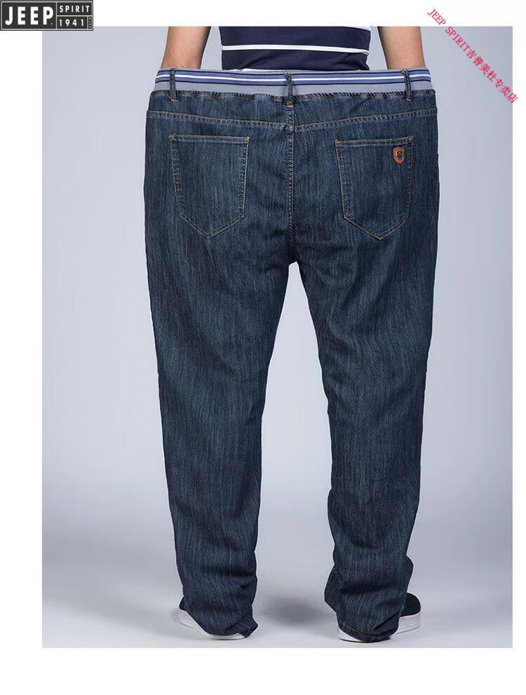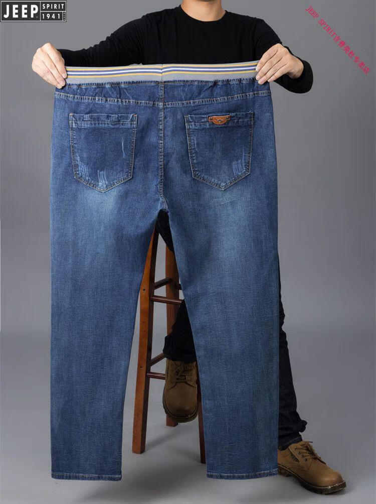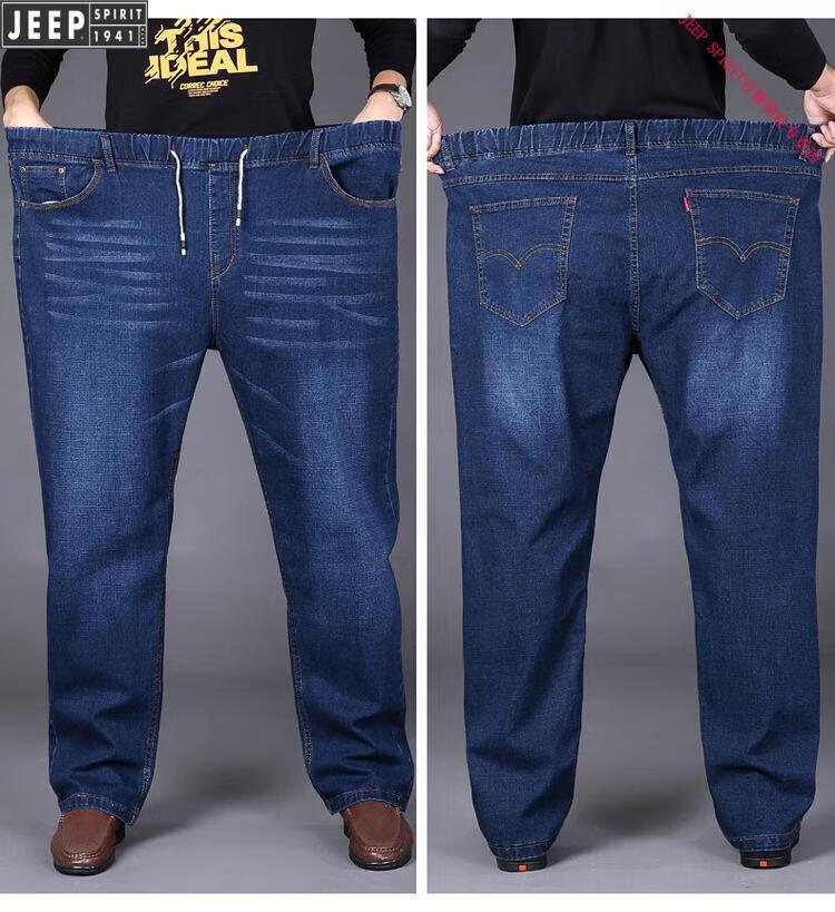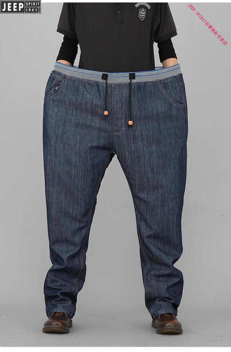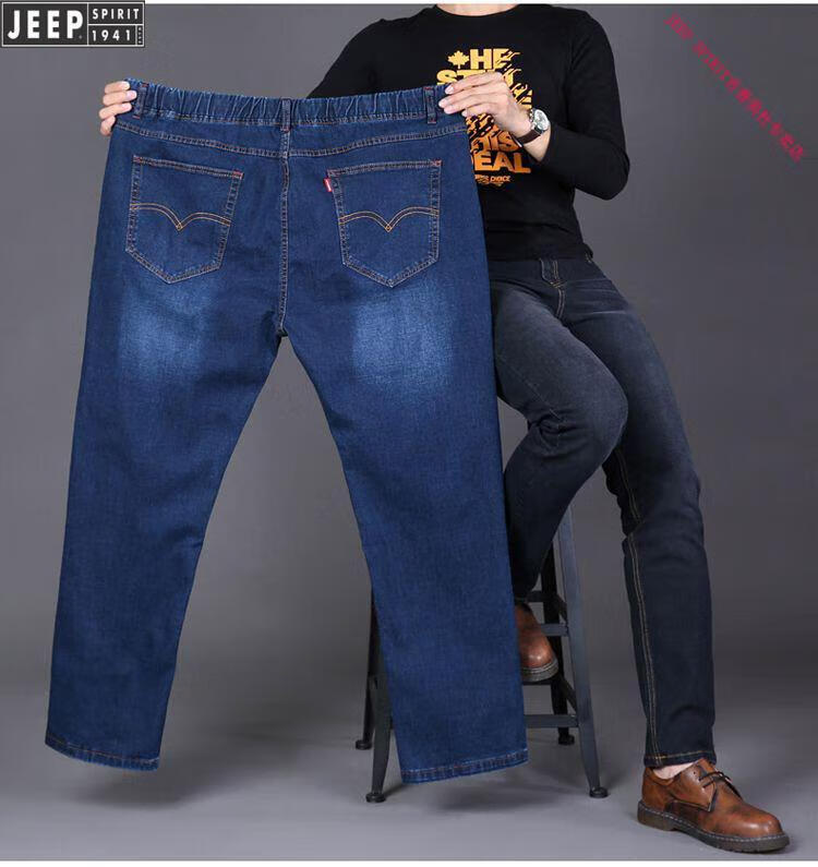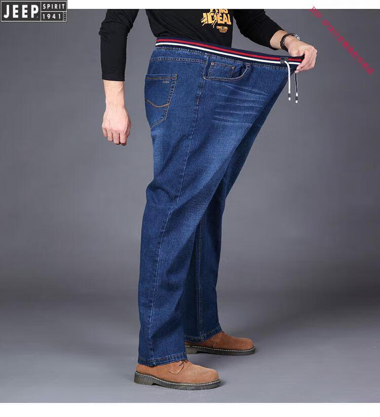 JEEP松紧腰加肥加大码牛仔裤男士宽松直筒高腰弹力胖子阔腿裤子男 1098款蓝色【松紧腰】 44码【腰围3尺4】建议240斤左右