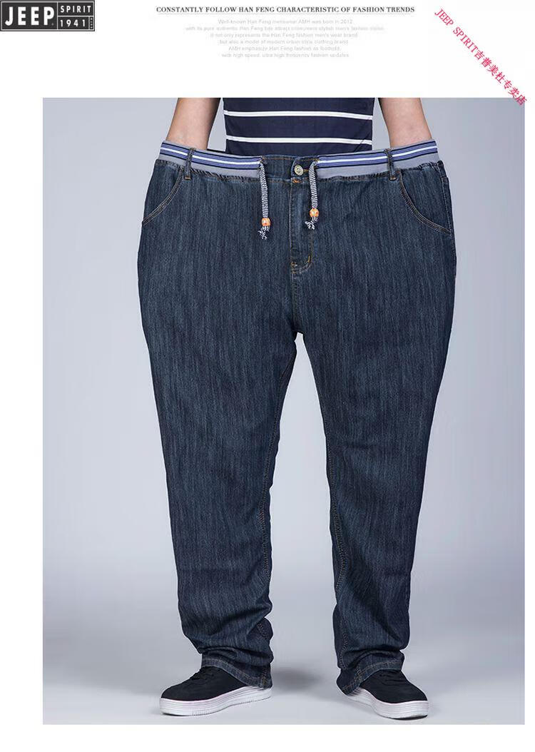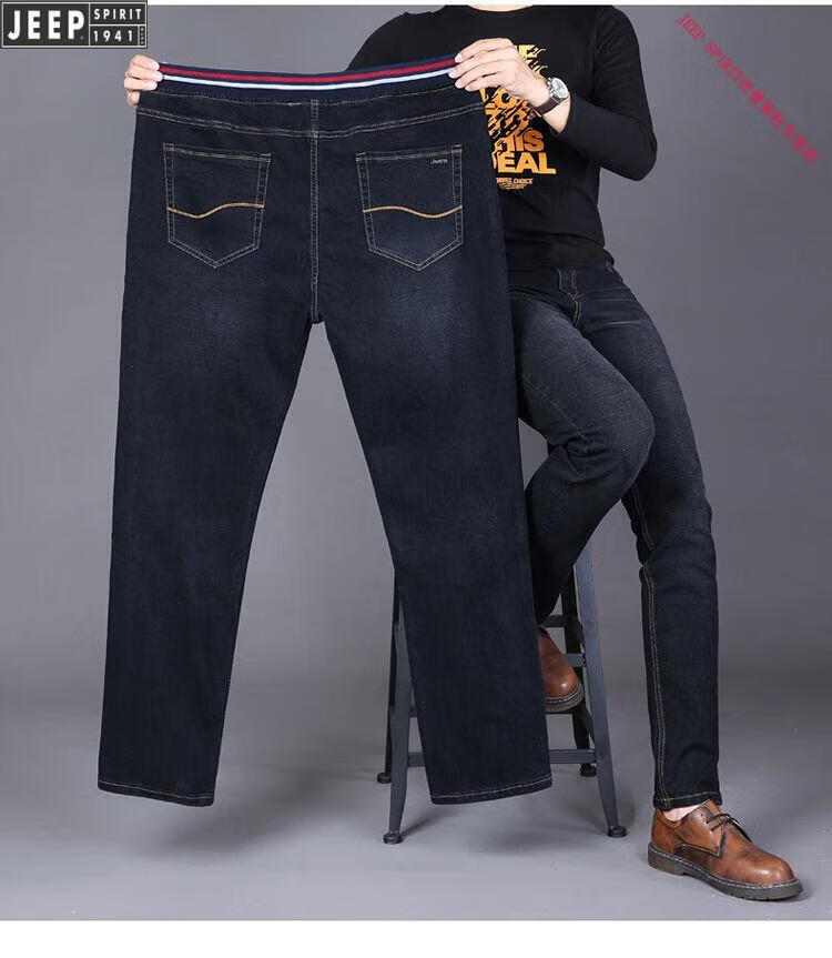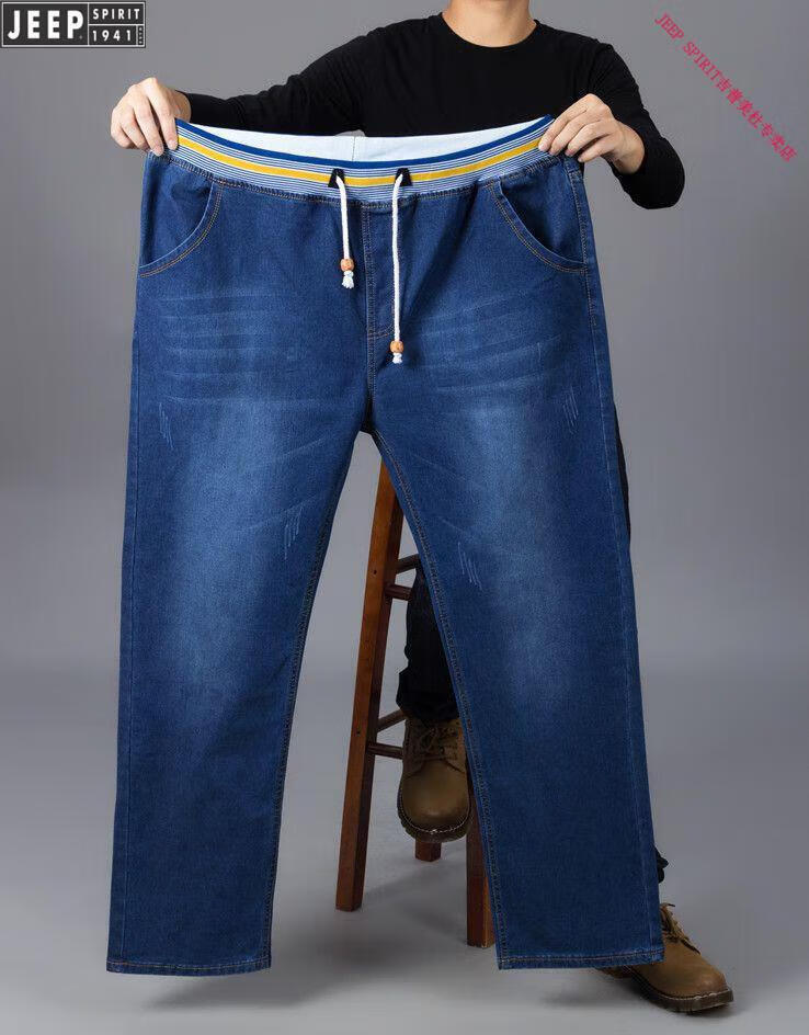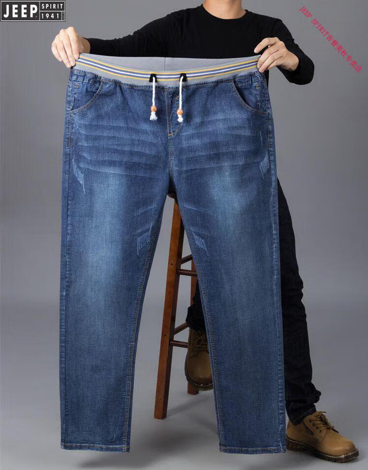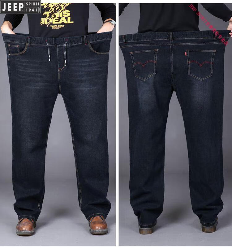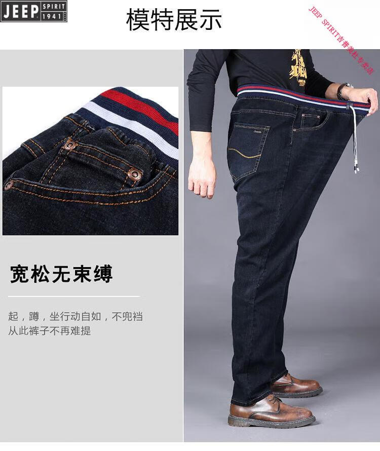 JEEP松紧腰加肥加大码牛仔裤男士宽松直筒高腰弹力胖子阔腿裤子男 1098款蓝色【松紧腰】 44码【腰围3尺4】建议240斤左右